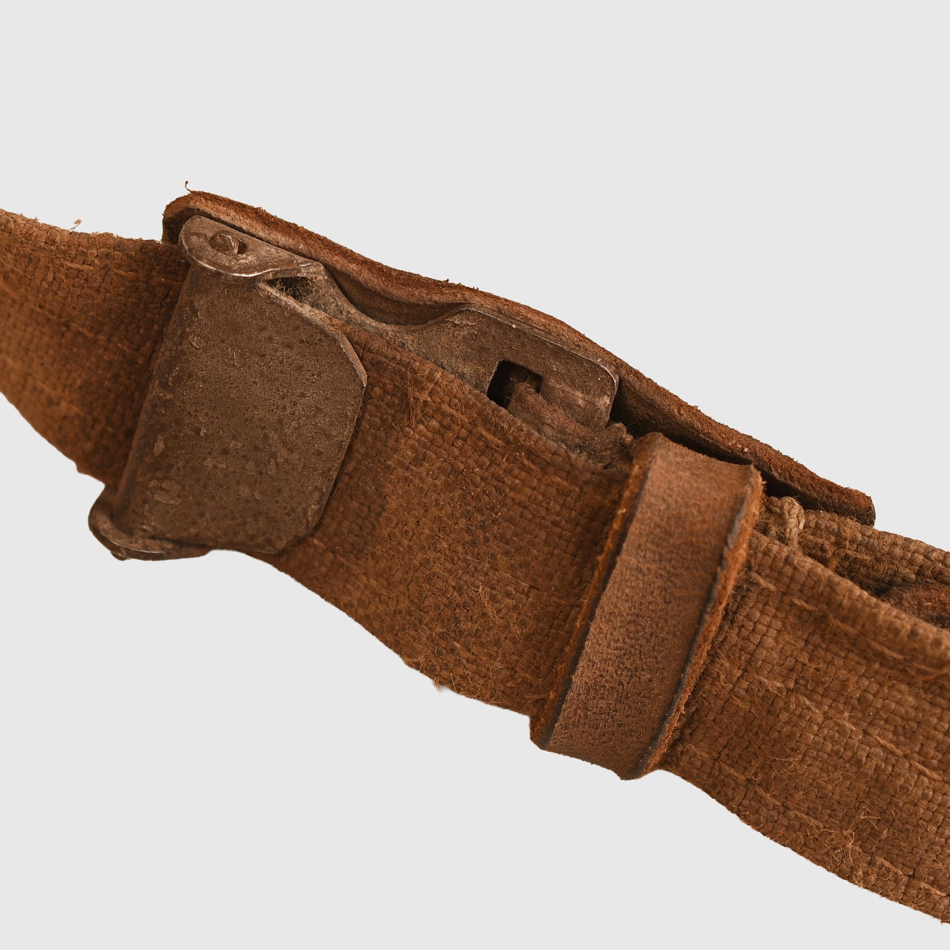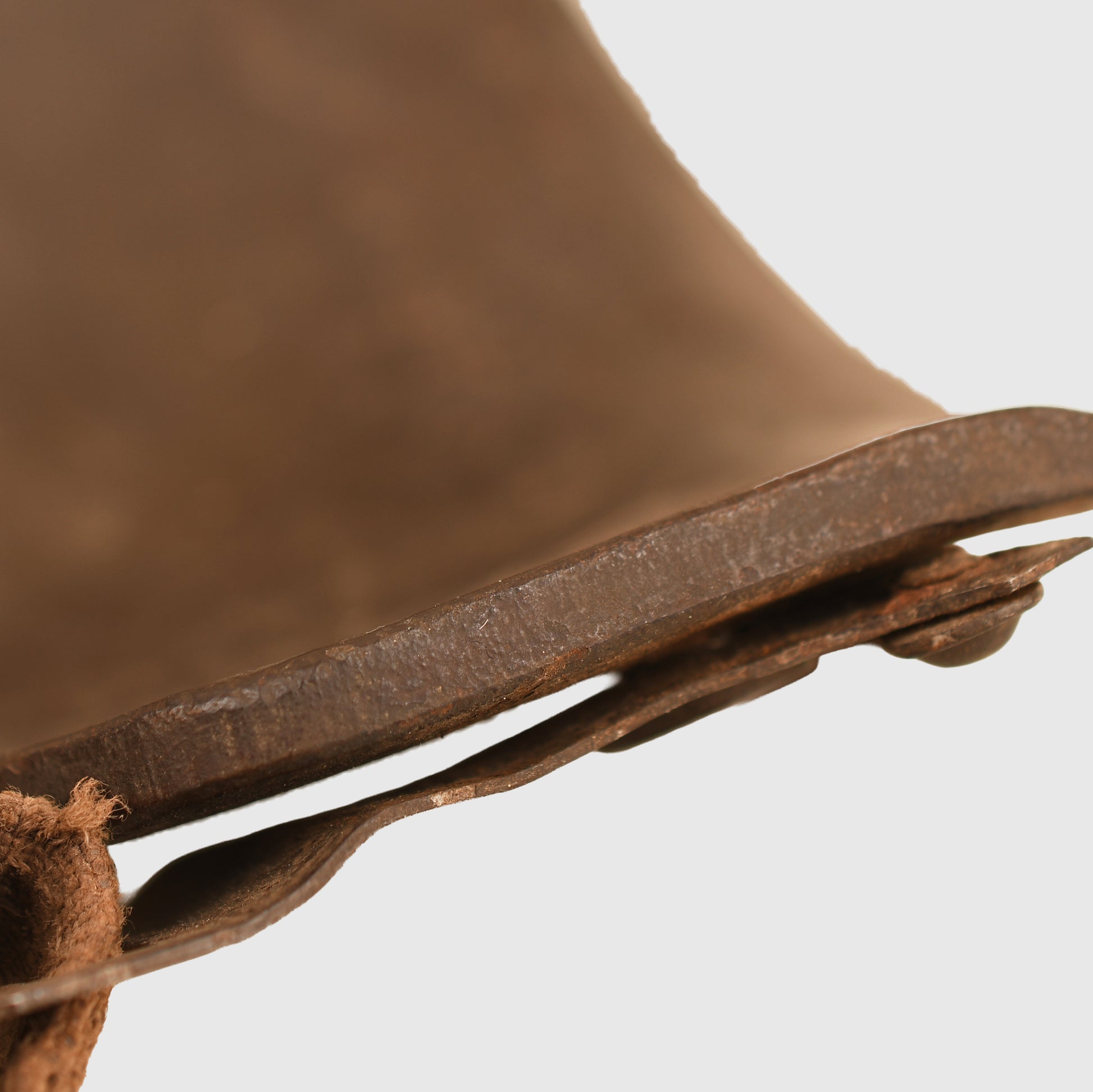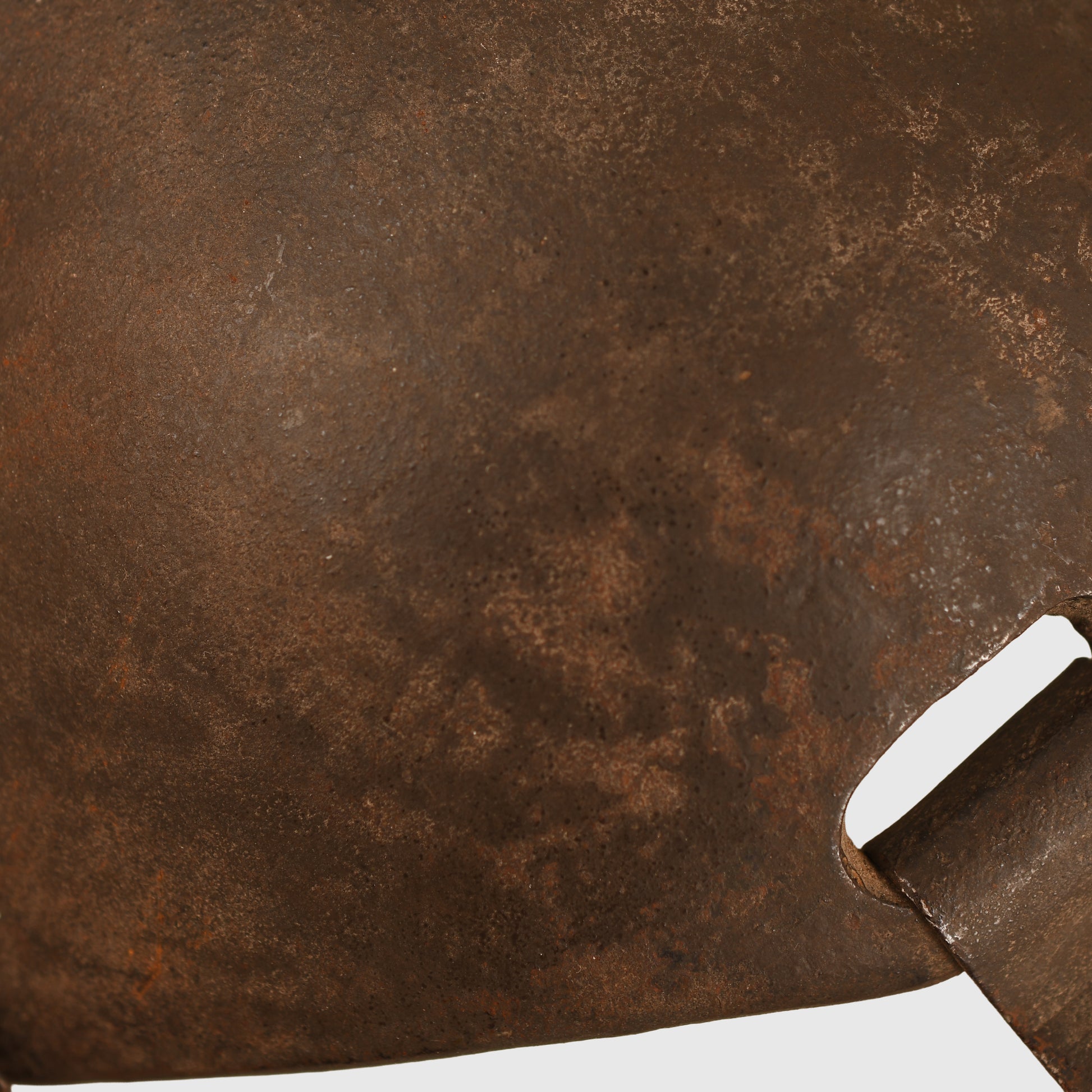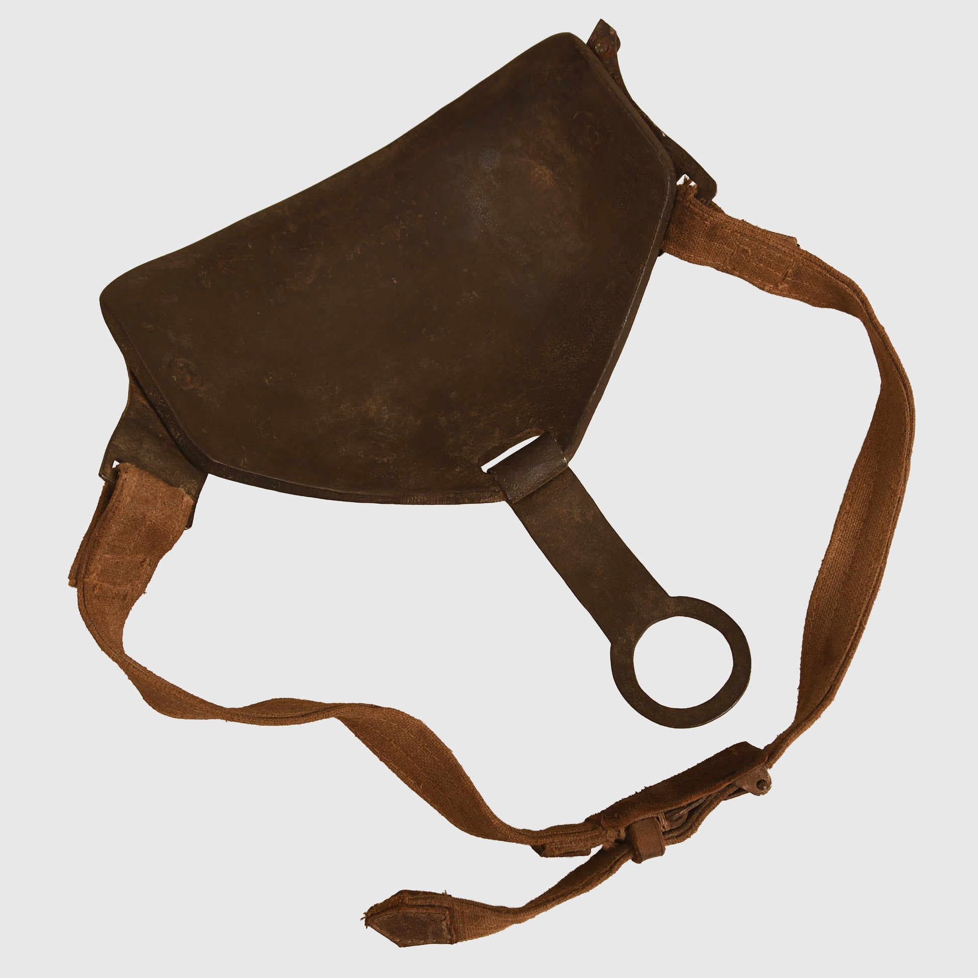 An extremely rare example of an Austrian armoured front plate, produced by the Berndorfer company in response to the introduction of the front plate for the German M.16 helmet. This piece retains a good degree of the original Austrian brown paint, with areas of rust bleed and surface corrosion adding to its authentic aged character. Complete with all original Austrian-style strapping and fitting clips for attachment to a Berndorfer helmet. A highly desirable and scarce accessory from the First World War.