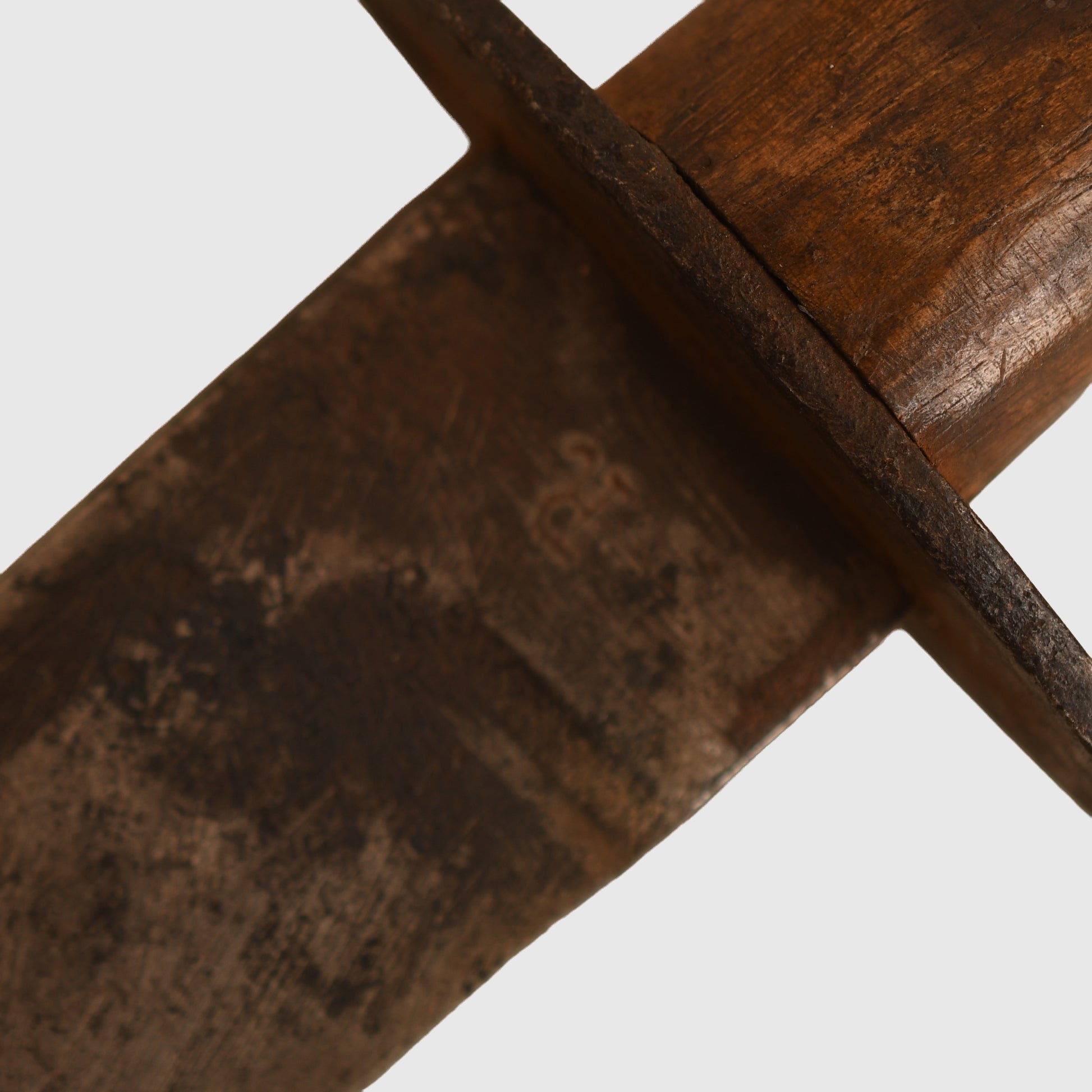 A well-preserved World War I Austrian-Hungarian display piece showing light period staining consistent with age and service use. The wooden grip bears five notches and eight engraved stars — the meaning of which remains unknown but adds an intriguing personal touch. The original scabbard shows only minor surface rust, with both reverse hanging loops intact and in place.