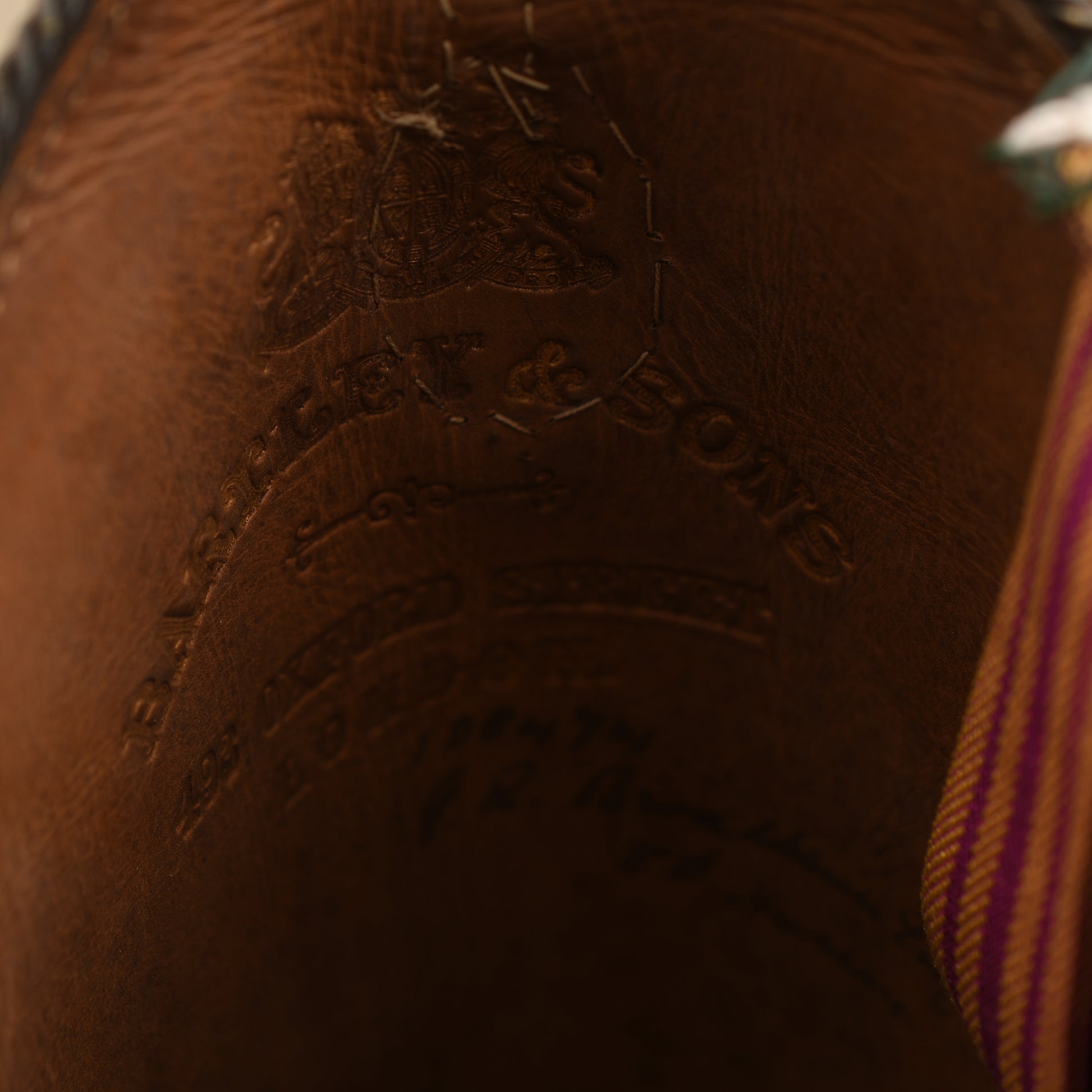 The decorative gilt lace around the top of each boot has matured to a silvery hue, and both boots retain their original oval Hussar bosses at the front. This set is complete with a pair of white metal spurs. Internally, the boots are clearly marked by the prestigious maker Bartley & Sons, 493 Oxford Street, London. Adding significant historical interest, there is a hand-applied inscription below the maker's stamp identifying the original owner as Broadhurst Esquire, 8th Hussars.