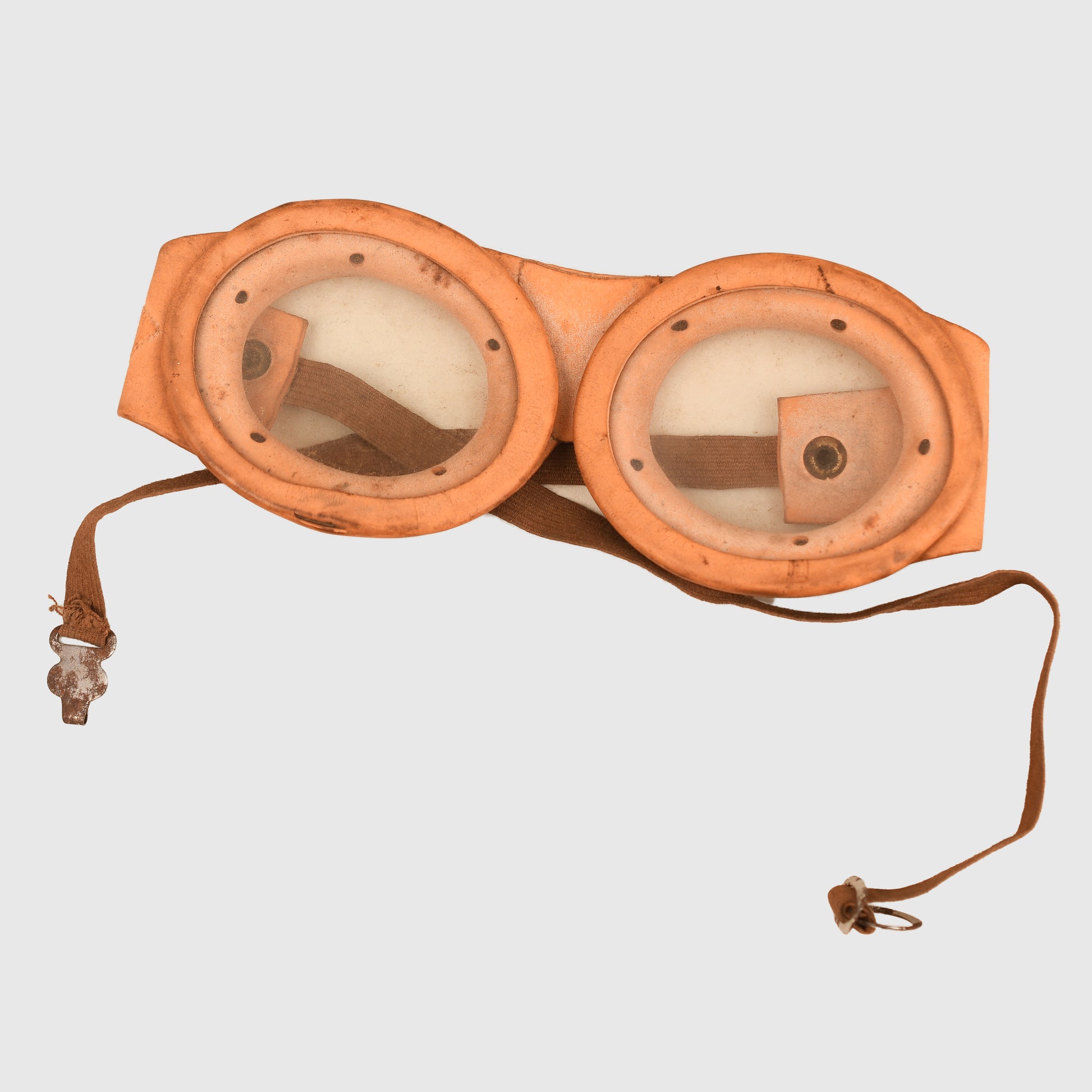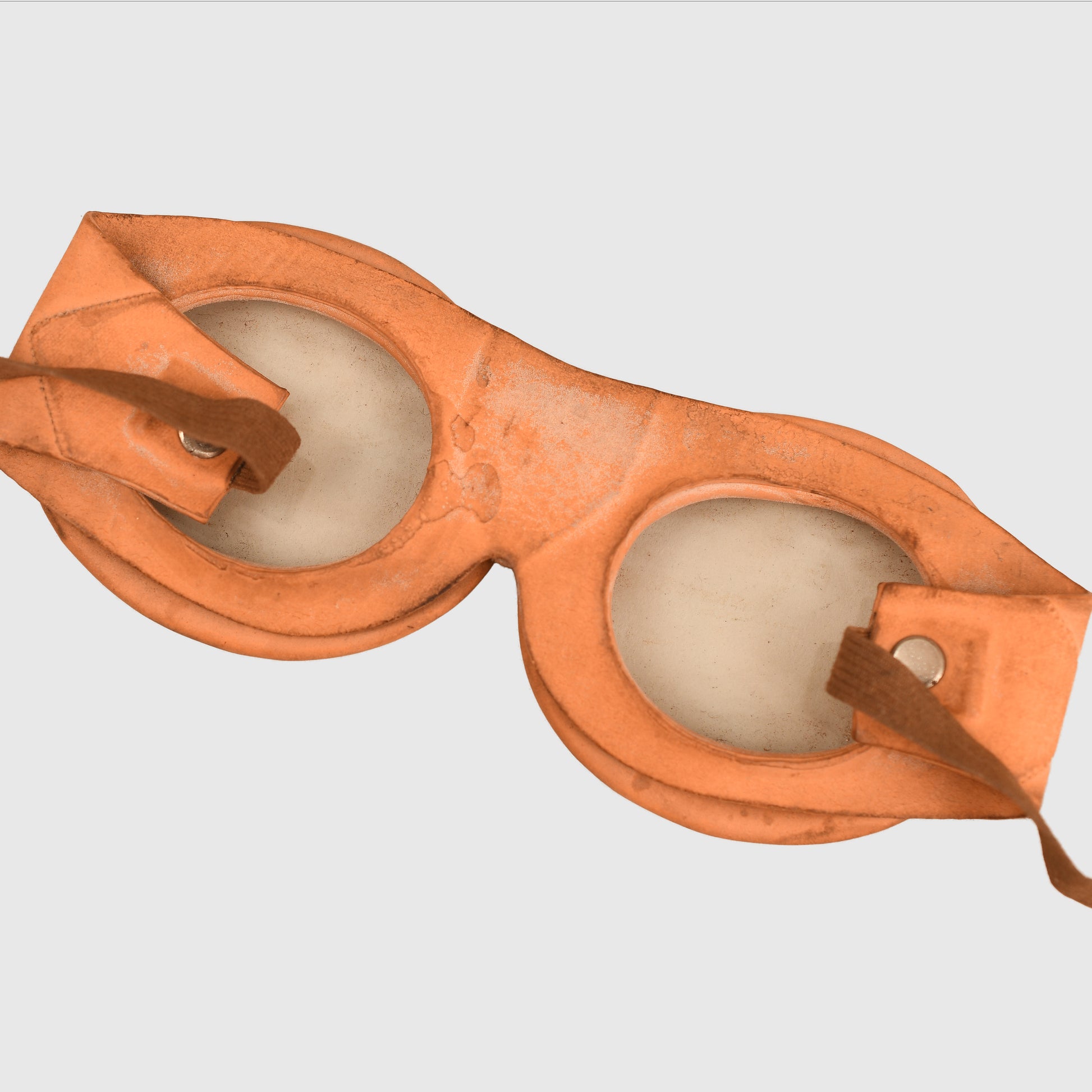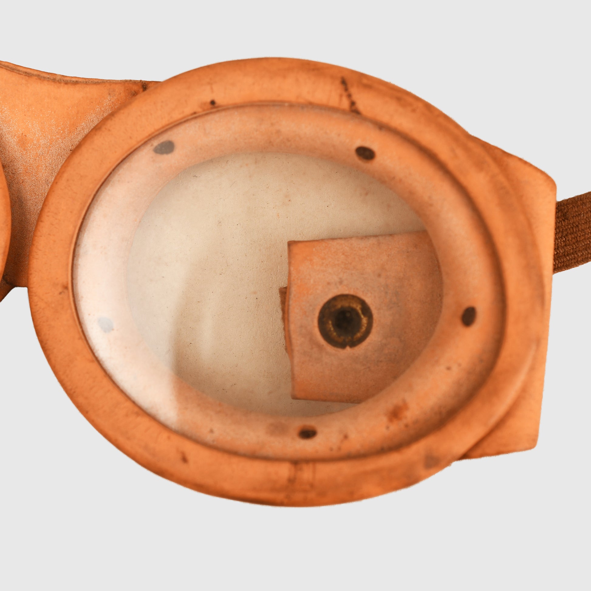 An extremely rare pair of all-rubber framed goggles, commercially purchased by the British government following the first gas attacks and prior to the widespread issue of gas masks with mouth and nose protection. The rubber frame remains supple and intact, showing no signs of solidifying or cracking, a condition seldom seen with goggles of this type.