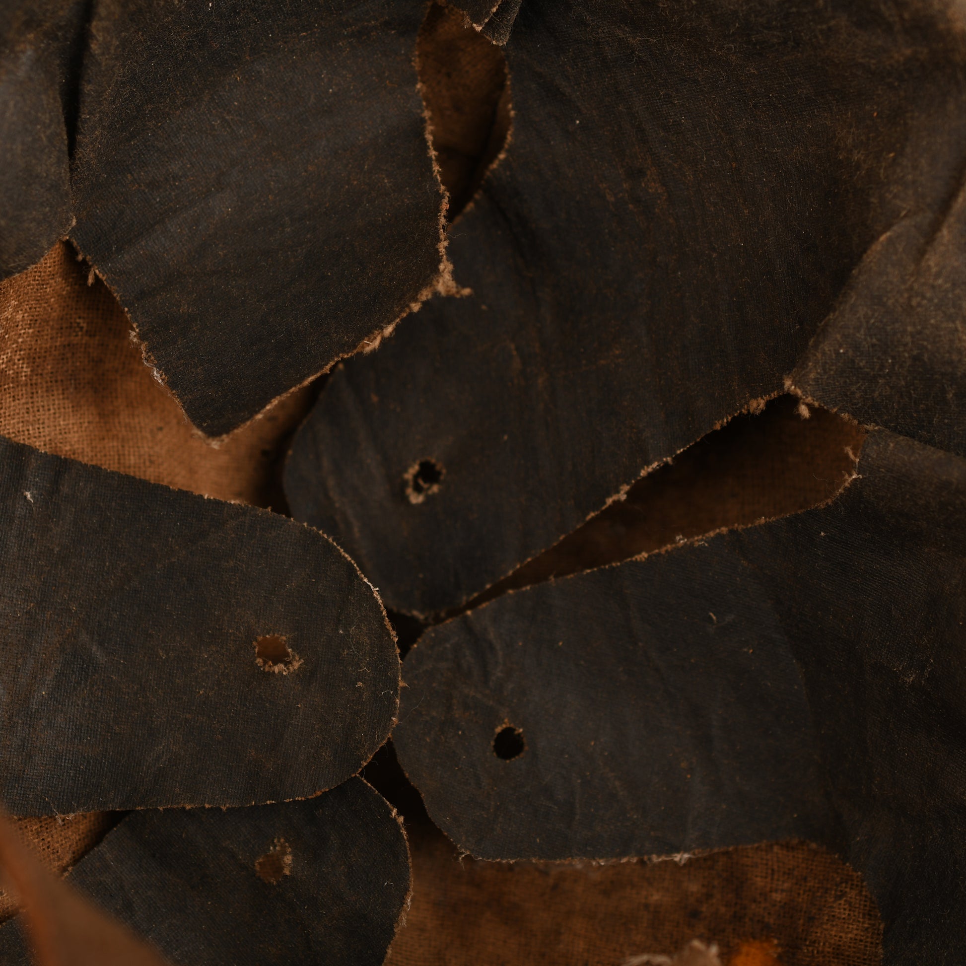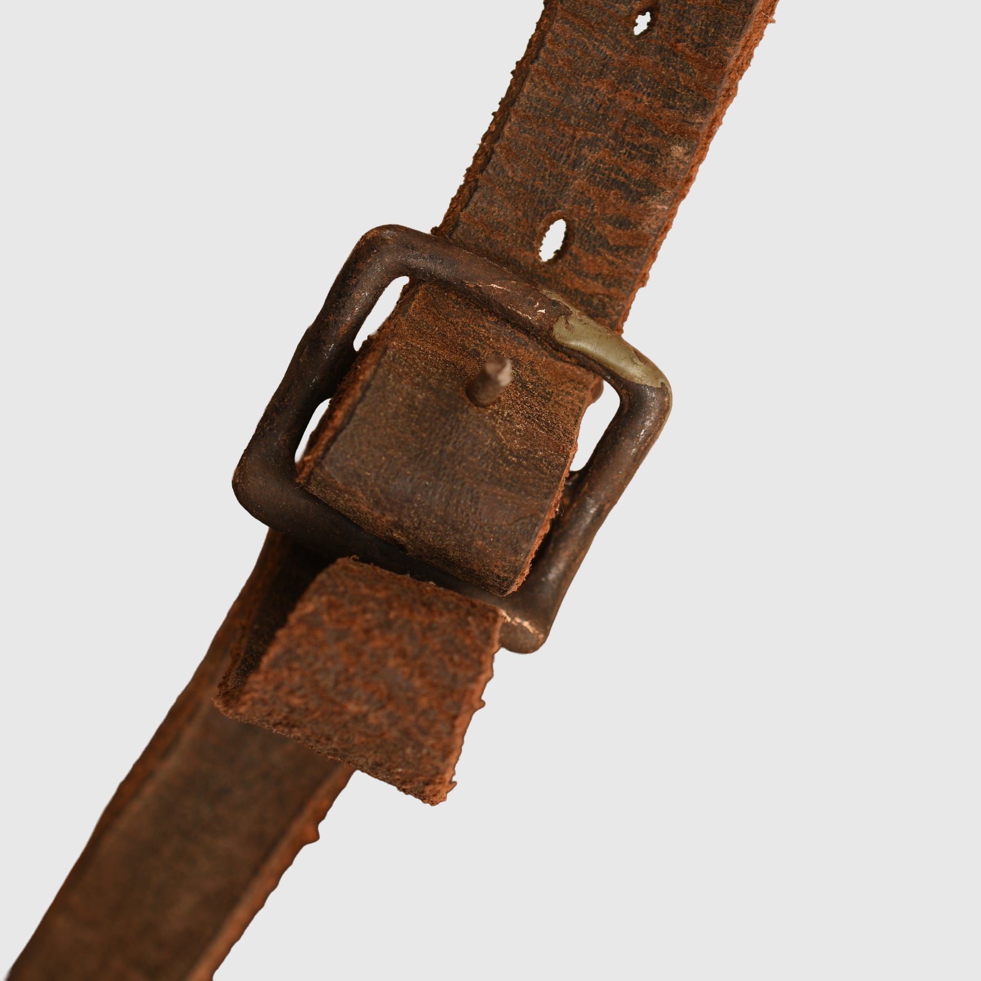 A rare first pattern rimless Brodie helmet, non-magnetic, with the original two-tone paint noticeably faded. The interior shows some surface rust seeping through the cover. On one side, a lozenge-shaped area indicates where a unit insignia was once applied, though the stitching has deteriorated and is now missing. The interior sacking cup retains much of its original colour, despite some fading. Fitted with a six-tongued first pattern oilskin liner with its original felt inserts, and complete with the original chinstrap, which should be handled with care. An uncommon and desirable example.