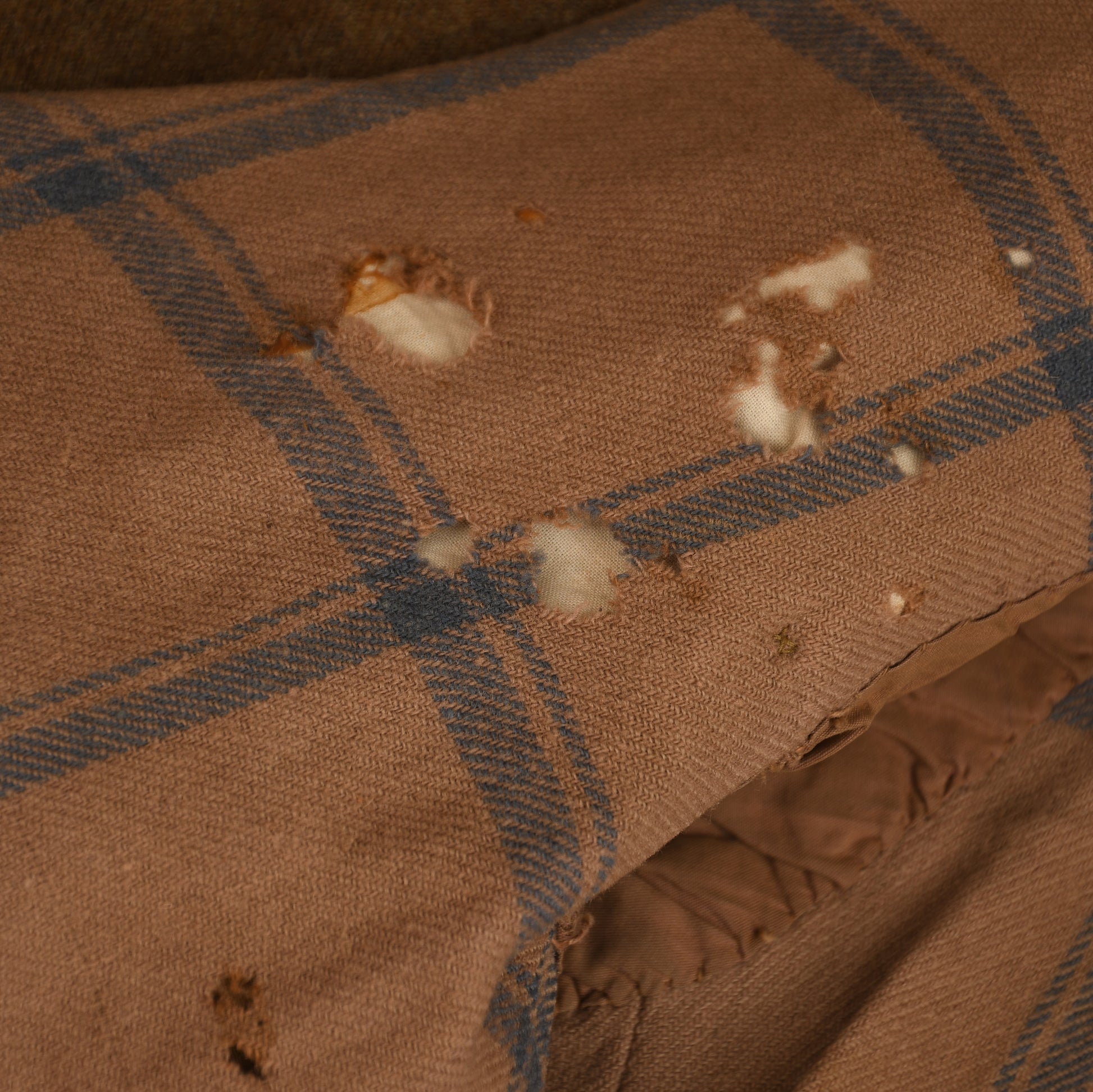 This is a piece that was modified for actual flying use by having a thick, chequered blanket lining inserted to the interior over the thin issue lining. Further evidence of this being an actual flyer's tunic is the presence of windproof cuffs. The tunic is fitted with all its original buttons, and all correct hooks are in place to finally close the plastron front. The only noted moth damage is to the added blanket lining on the interior.
