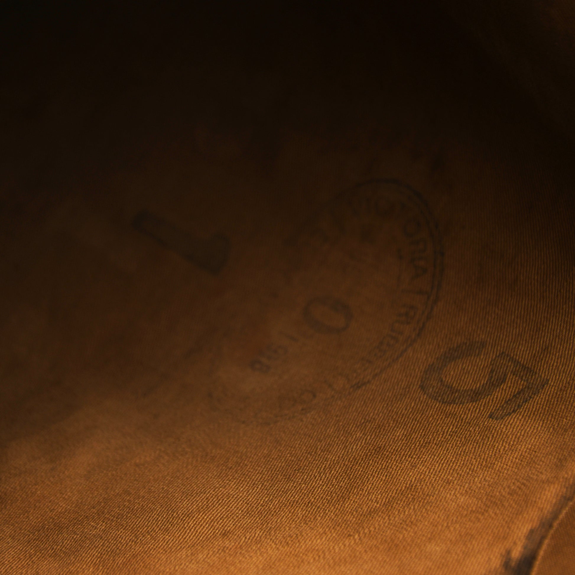 An extremely scarce piece of British WWI equipment — a matched pair of canvas trench waders, issued to soldiers and officers alike as the war progressed and the harsh, waterlogged conditions of trench life became evident. Constructed from thin rubberised canvas, each wader is clearly maker marked and dated 1918, complete with its original broad arrow-marked paper label. Both examples are a matching pair, each marked size 5 with identical manufacturer’s details. An exceptional and highly desirable item for completing a British trench mannequin display.