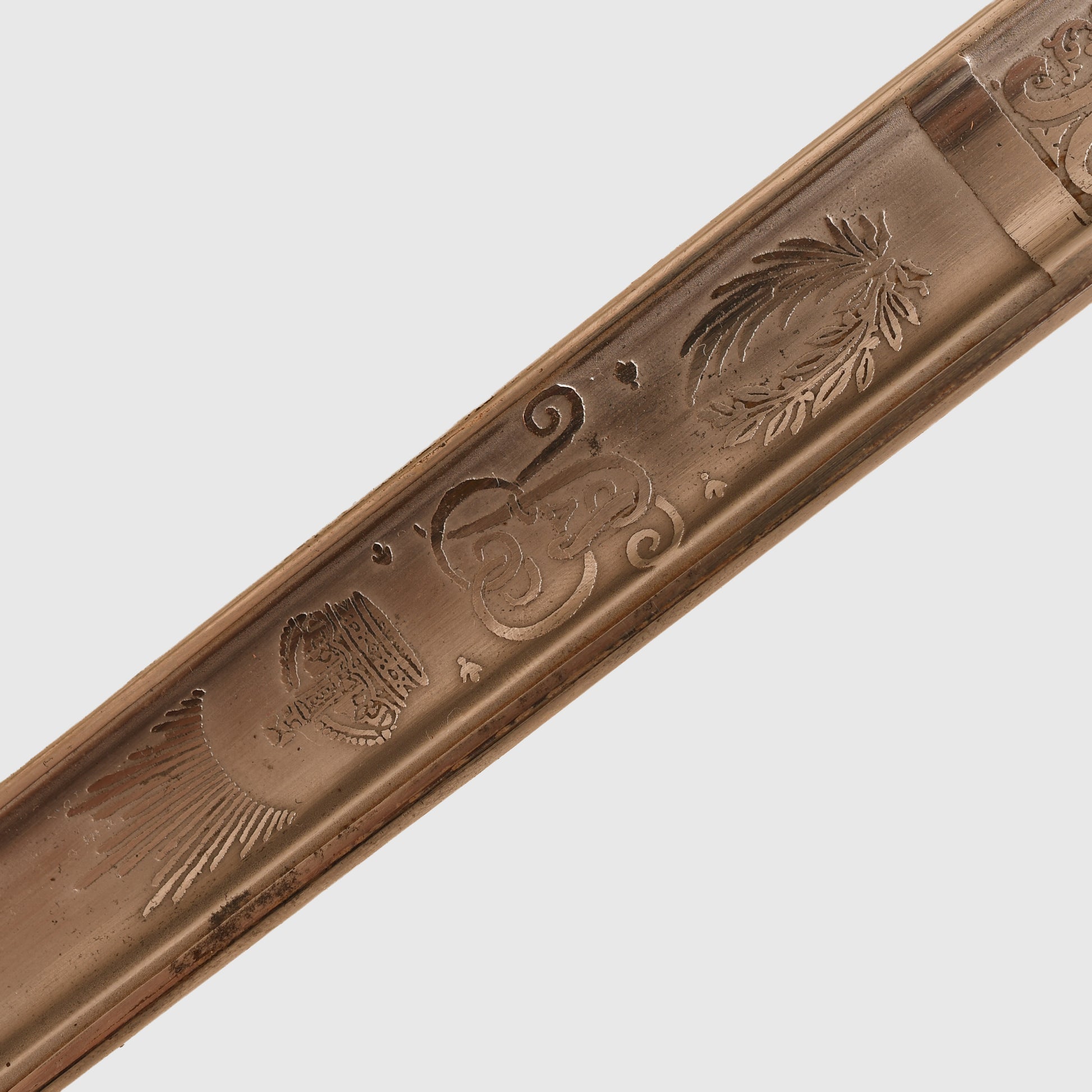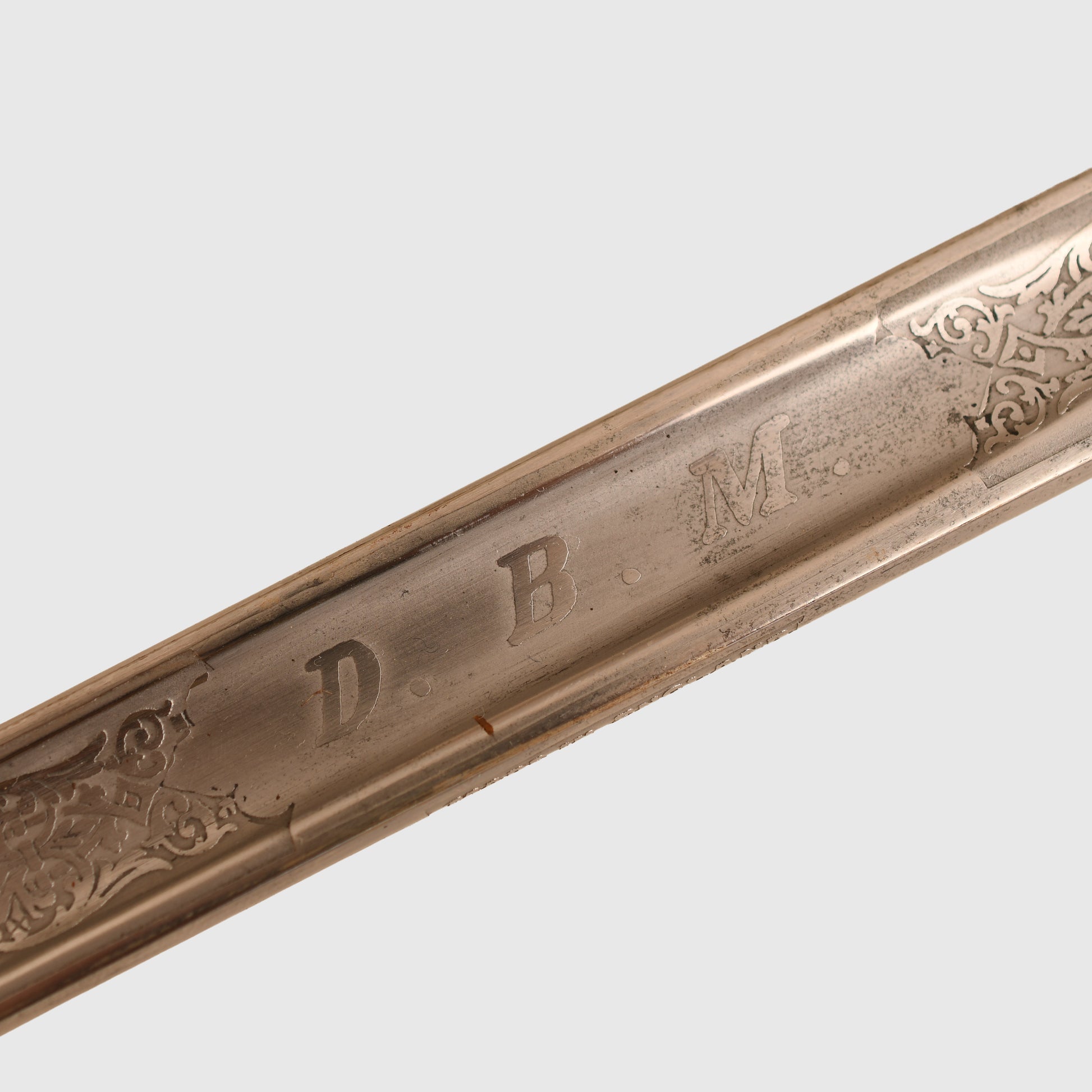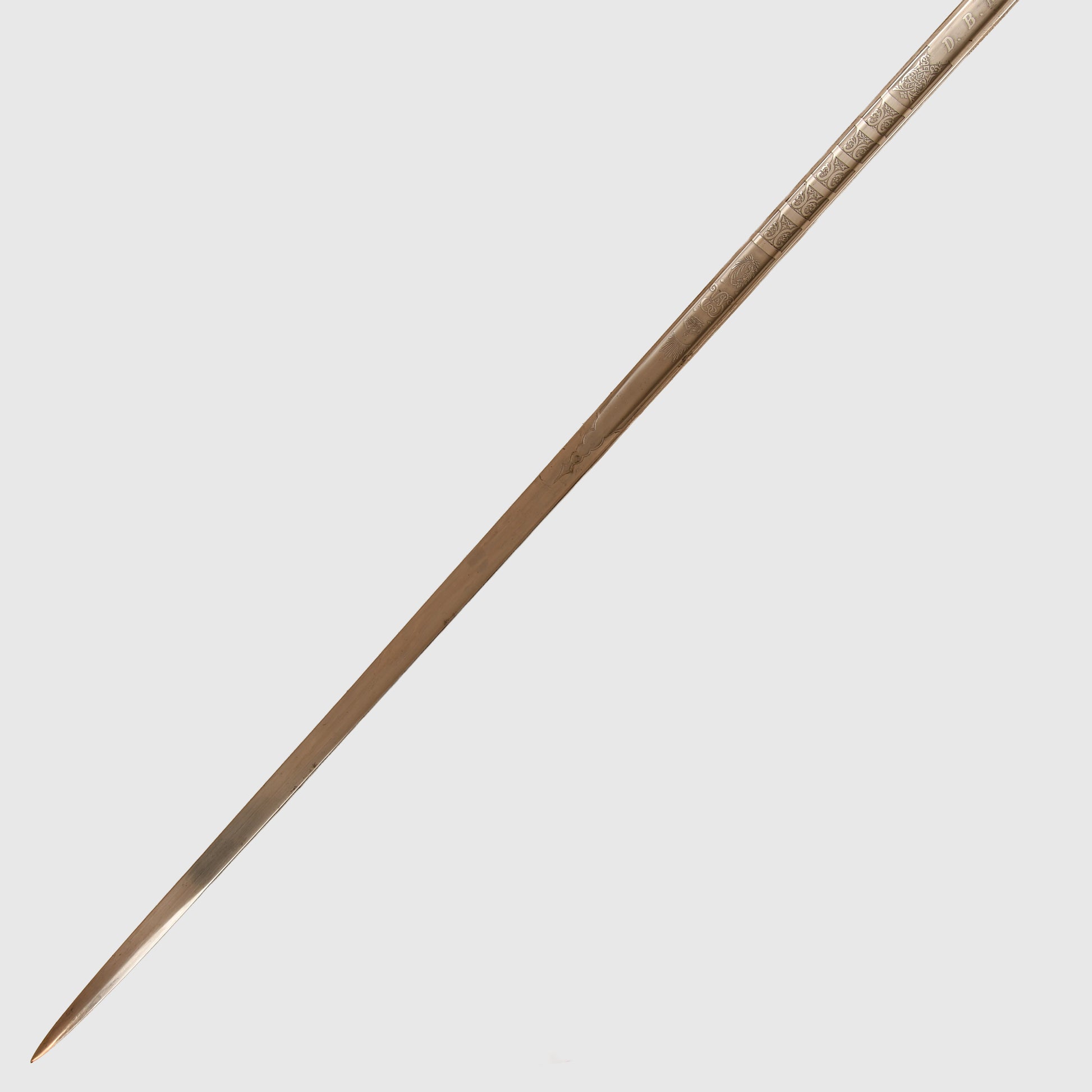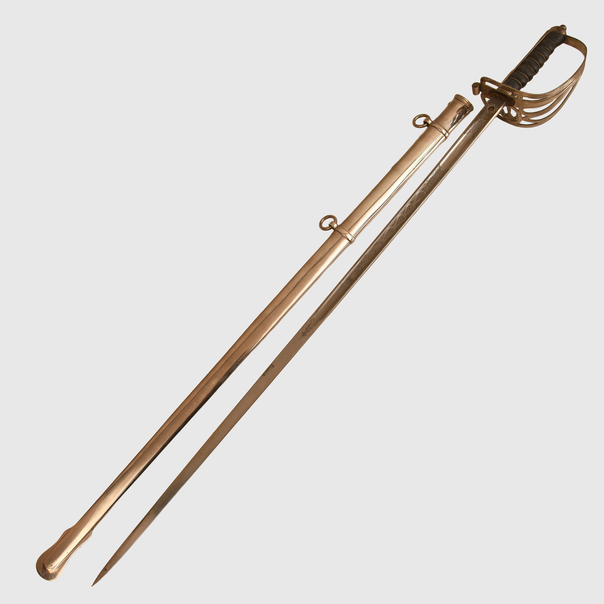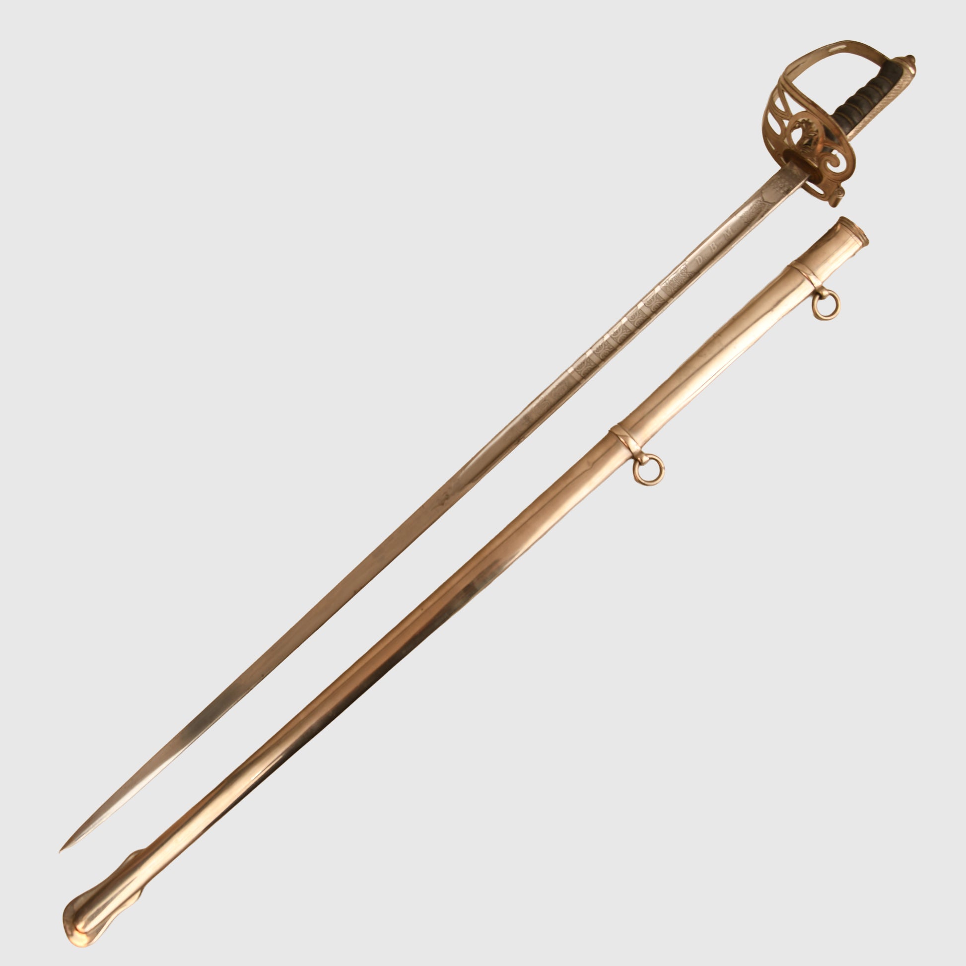 A superb example of the 1854 pattern display piece belonging to 2nd Lieutenant David Bernard Morgan of the Welsh Guards. The surface remains in excellent condition, featuring the insignia of the Welsh Guards surmounted by the George V crown, numbered 13798 and retailed by Cater & Company, Pall Mall, London. The initials D.B.M. are finely engraved, confirming its personal attribution.