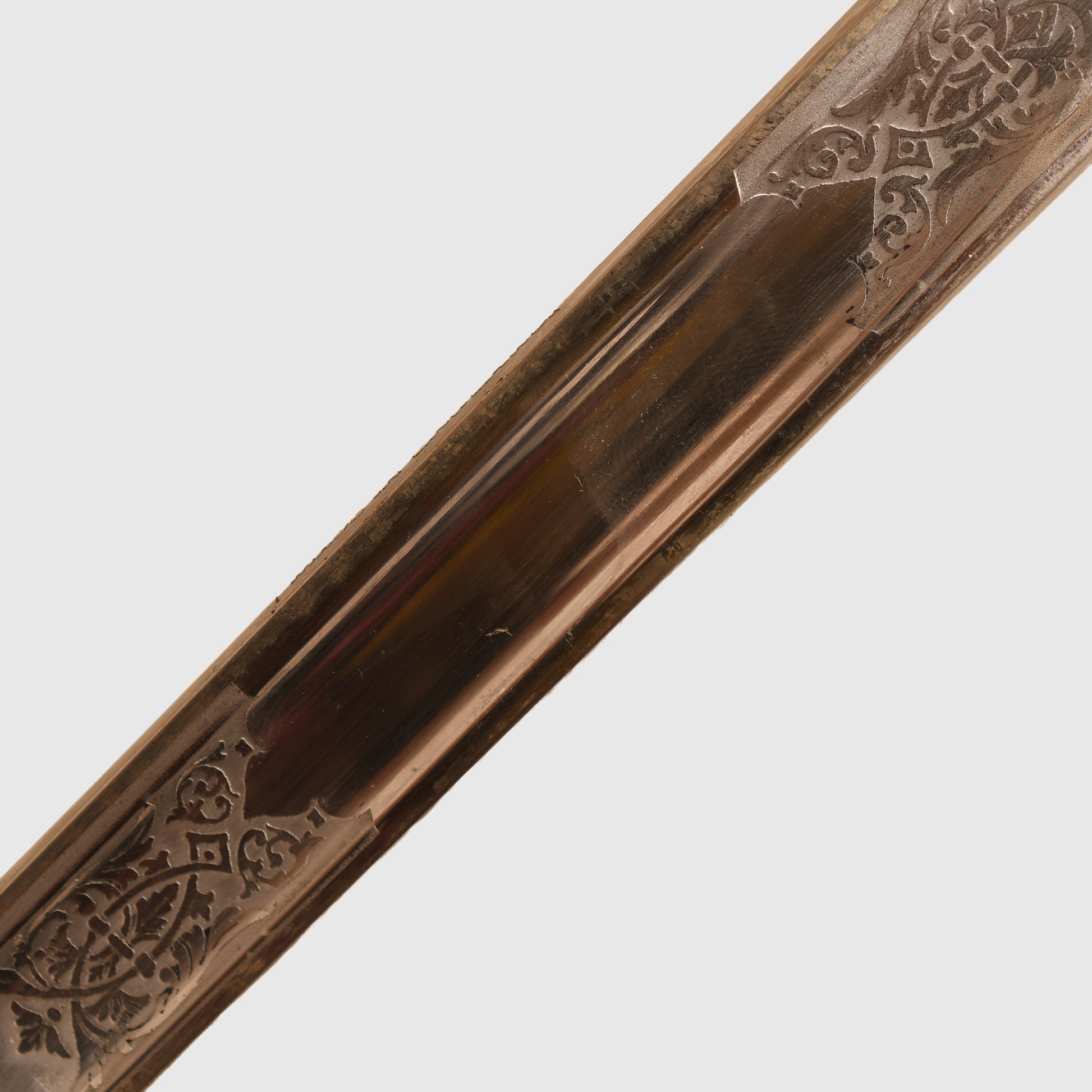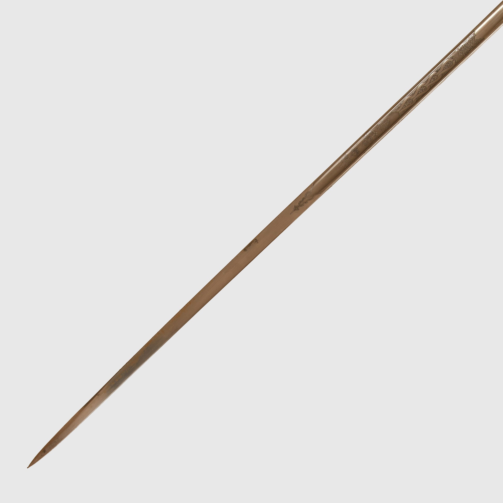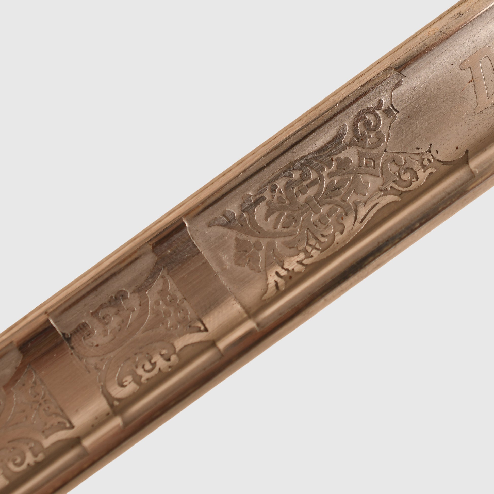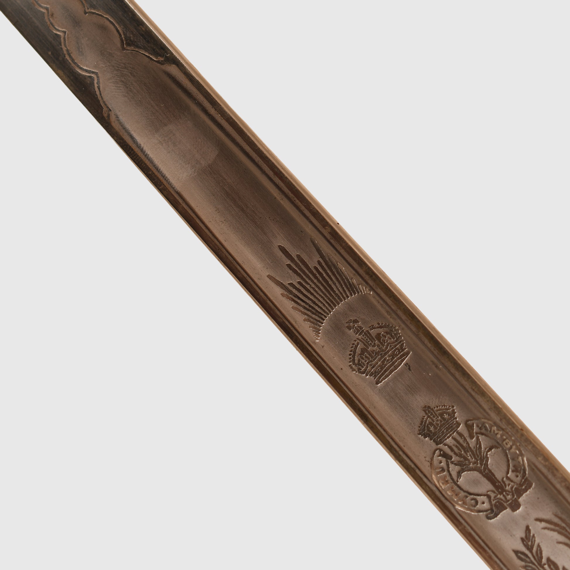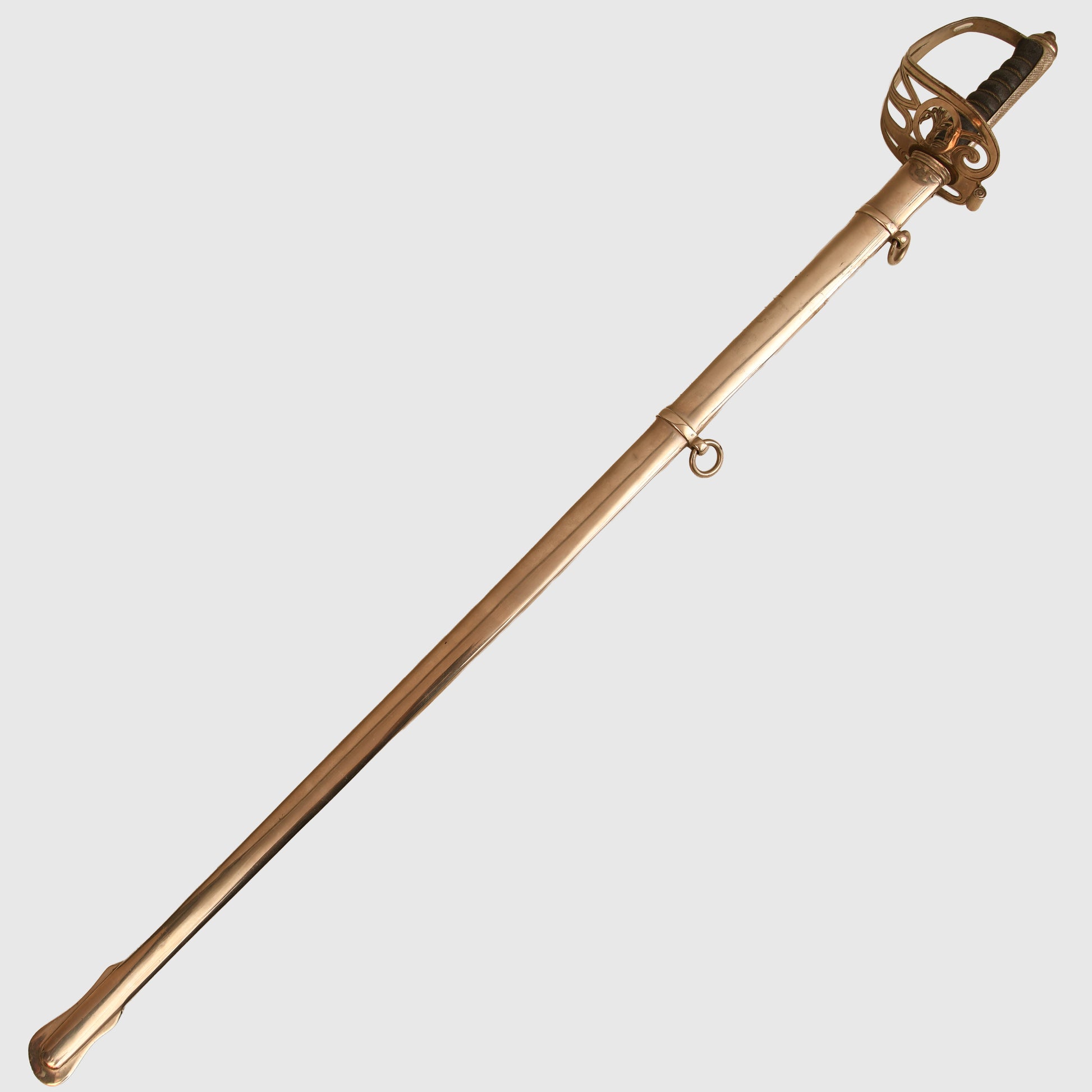 A superb example of the 1854 pattern display piece belonging to 2nd Lieutenant David Bernard Morgan of the Welsh Guards. The surface remains in excellent condition, featuring the insignia of the Welsh Guards surmounted by the George V crown, numbered 13798 and retailed by Cater & Company, Pall Mall, London. The initials D.B.M. are finely engraved, confirming its personal attribution.