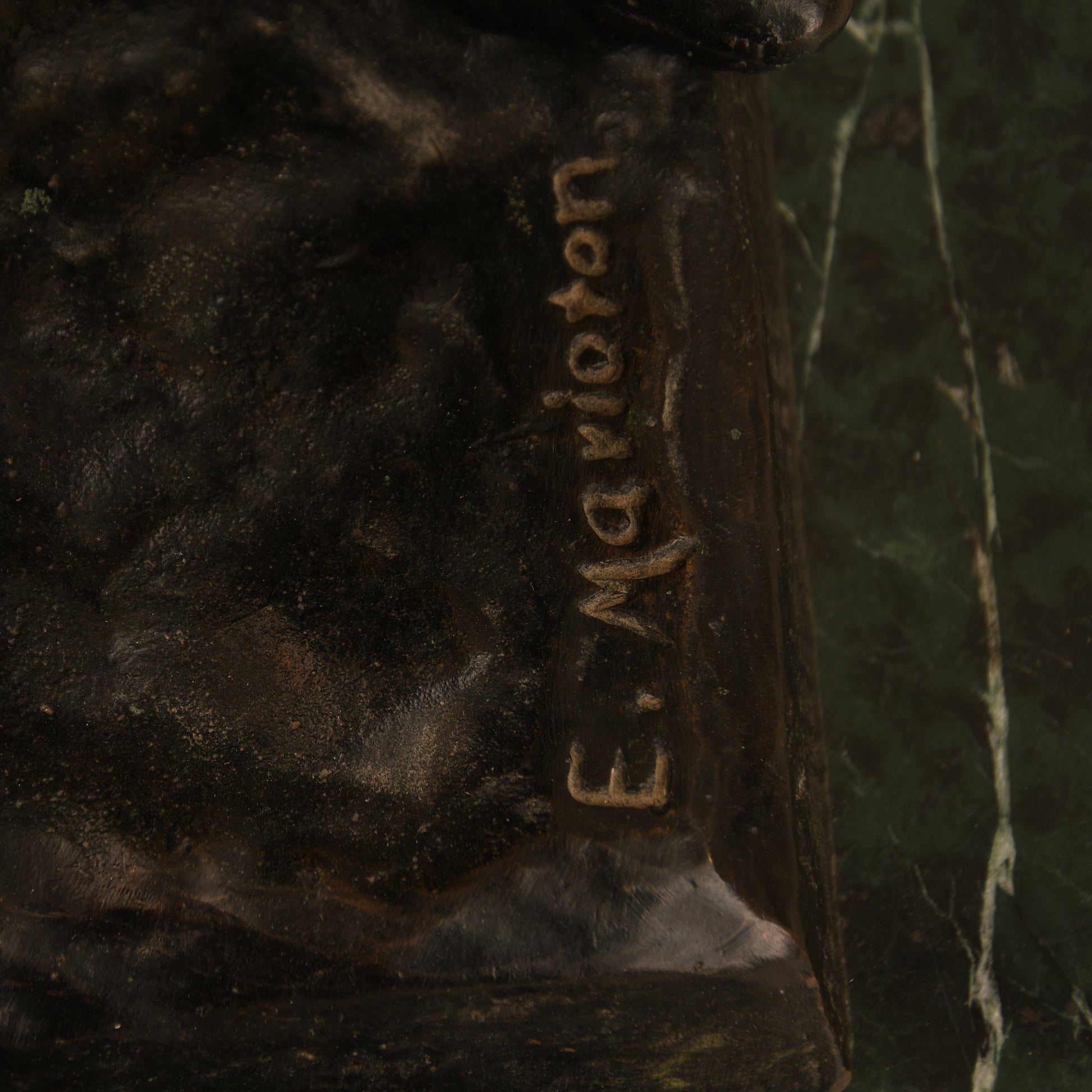 A striking and highly impressive bronze figure on marble, measuring 81cm in total height from the base to the tip of the bayonet, with the bronze figure itself standing 59cm tall. Signed to the base by the sculptor ‘E. Marloton’, the figure is finished in a rich patinated green and depicts a French infantryman of the 1870 period in full combat order.