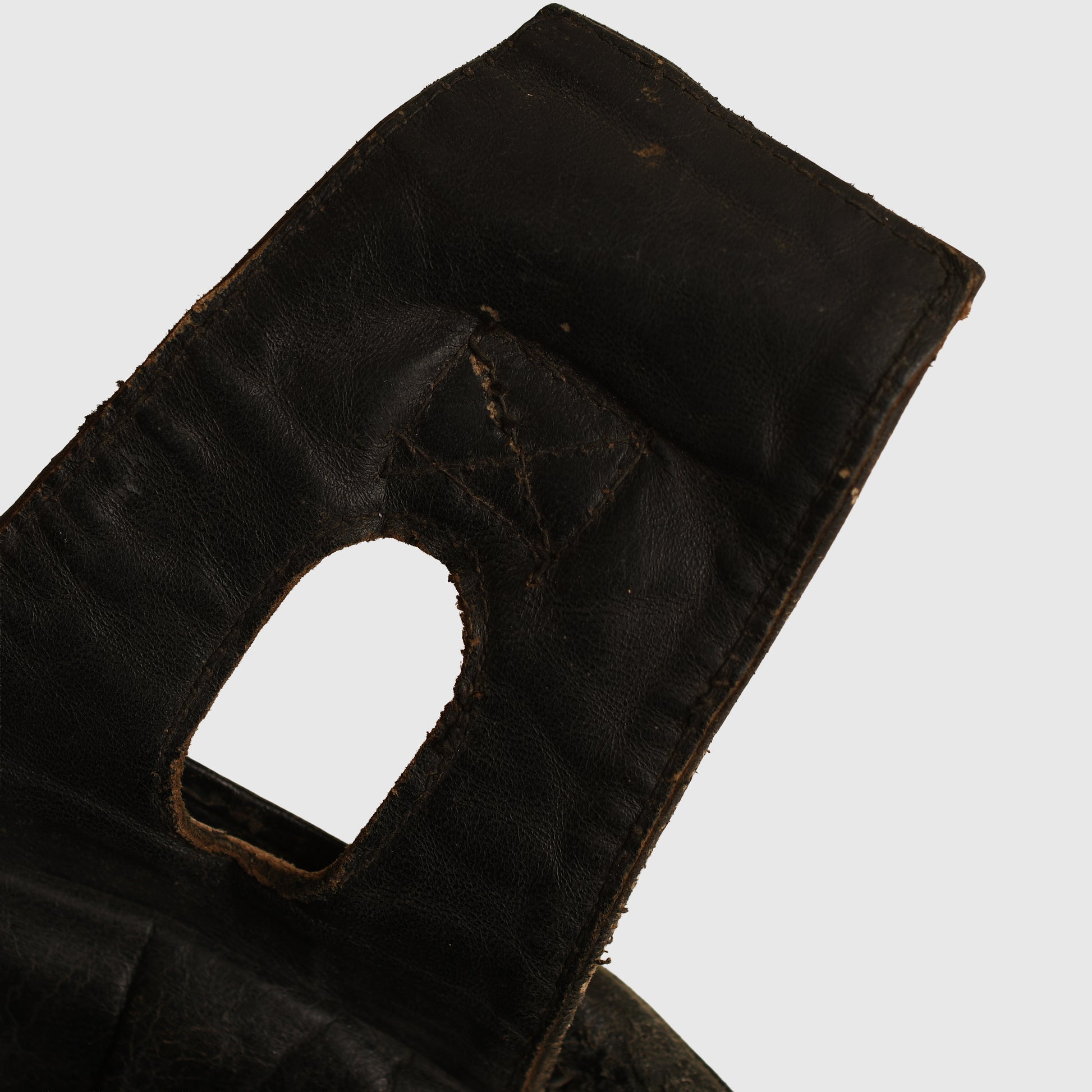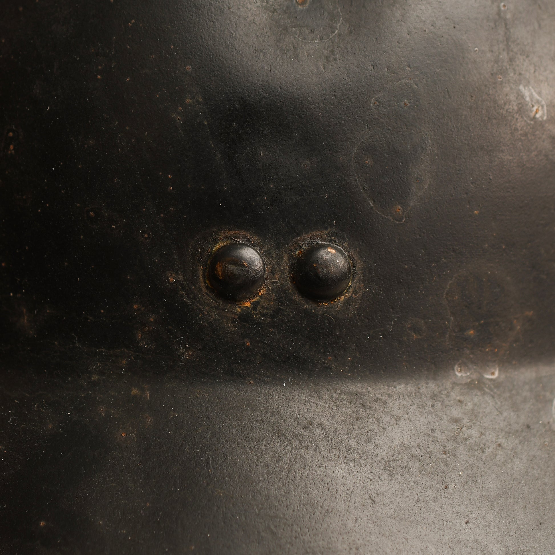 An exceptionally rare French helmet dating from the mid-1940s, issued following the establishment of the Vichy Government. This helmet was specifically used by the bodyguard unit of Marshal Pétain and is based on the 1935 Motorised Corps design. The shell is painted deep black on the exterior with a contrasting dark blue interior. It is complete with its original, fully authenticated Marshall Pétain bodyguard helmet plate. While reproductions exist, this example is confirmed entirely genuine.