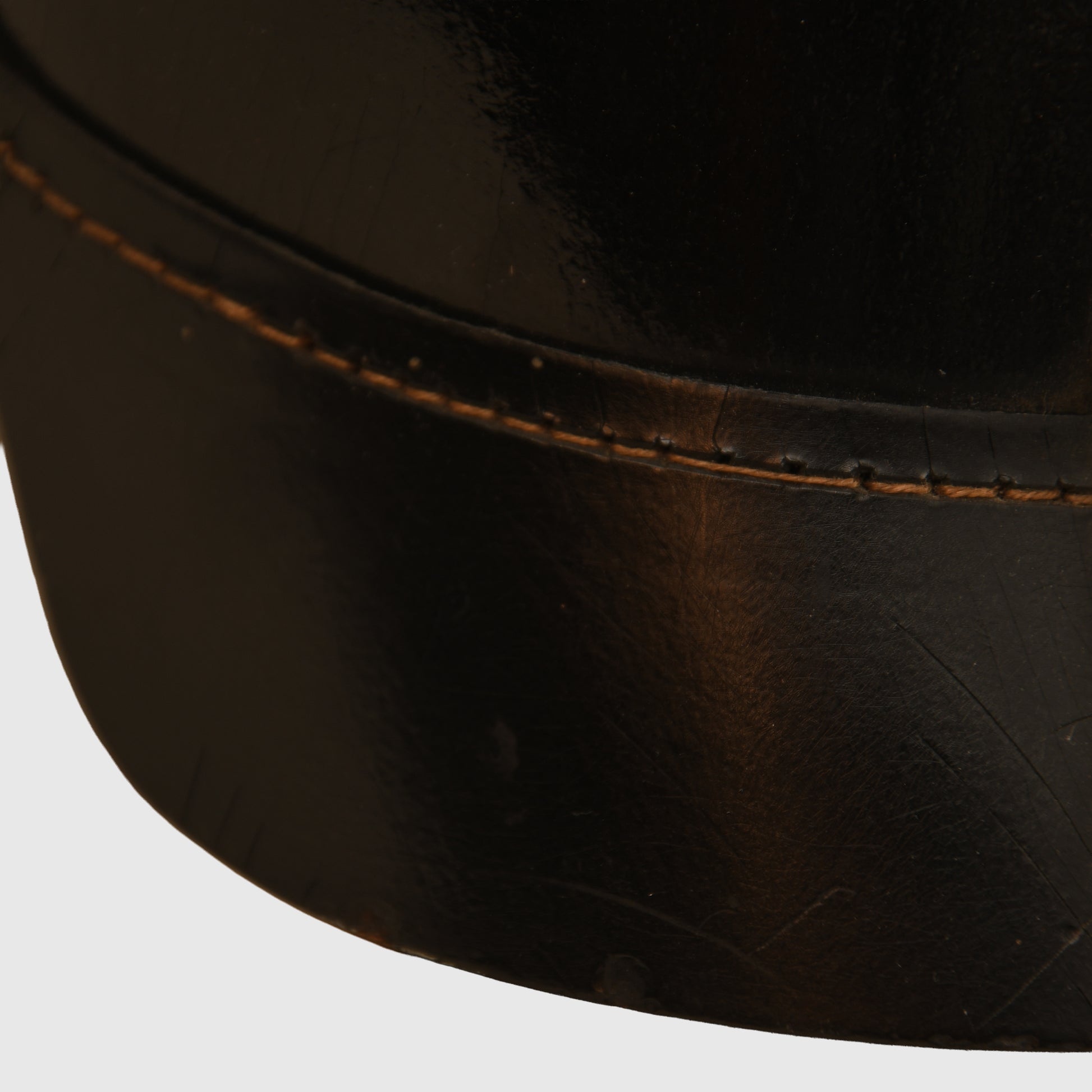 A rare and exceptional example of a Baden enlisted man’s pickelhaube in virtually unused condition. Likely one of the thousands sold by the U.S. Government as War Bonds after WWI, this large size example is stamped ‘57’ and remains near mint. The exterior skull shows excellent preservation with all stitching intact and free from rot. The front peak trim is straight and unmarked, and all fittings—including the back strap, removable spike with circular base, and Baden front plate—display a uniform chemical grey patination. Both the national and Baden cockades are in superb, original condition, appearing almost modern in their crispness, and the strap is likewise pristine.