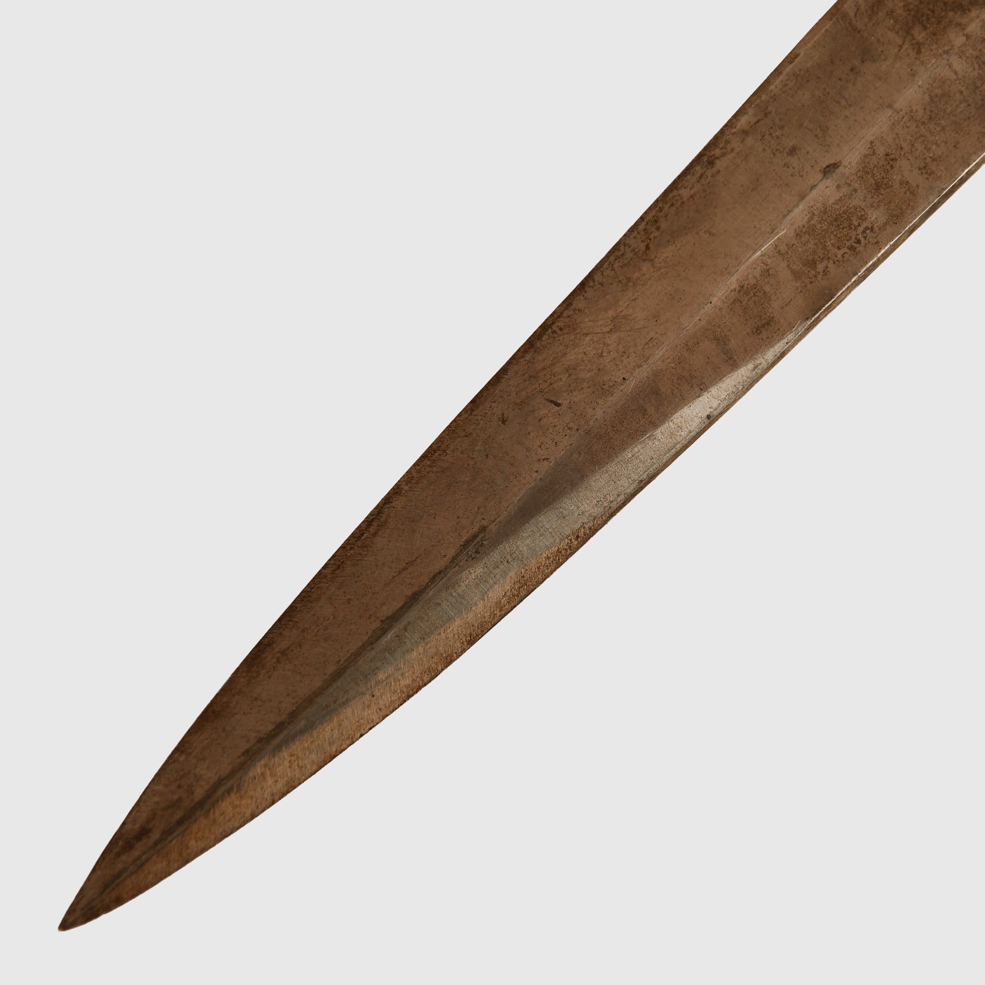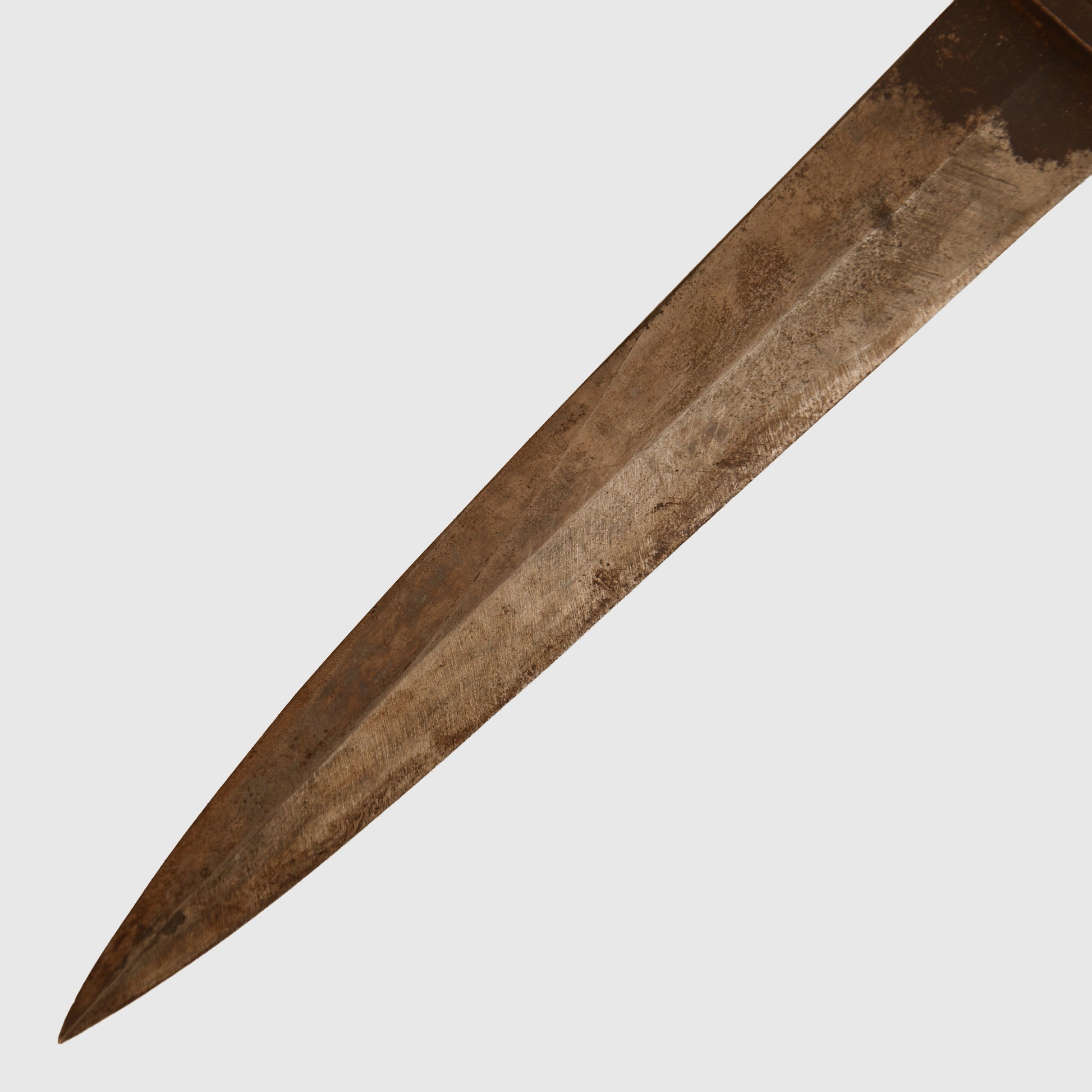 A well-preserved World War I example in very good condition. The steel fittings remain sound with only light ageing near the cross guard and faint signs of past use. The ribbed wooden grips are undamaged, displaying excellent colour and finish. Housed in its original scabbard, which retains faint traces of its wartime black paint. The piece is fitted with a rare and desirable paper cloth belt loop, complete with its original leather retaining strap and fully functional male/female closure stud. A scarce and appealing period example.