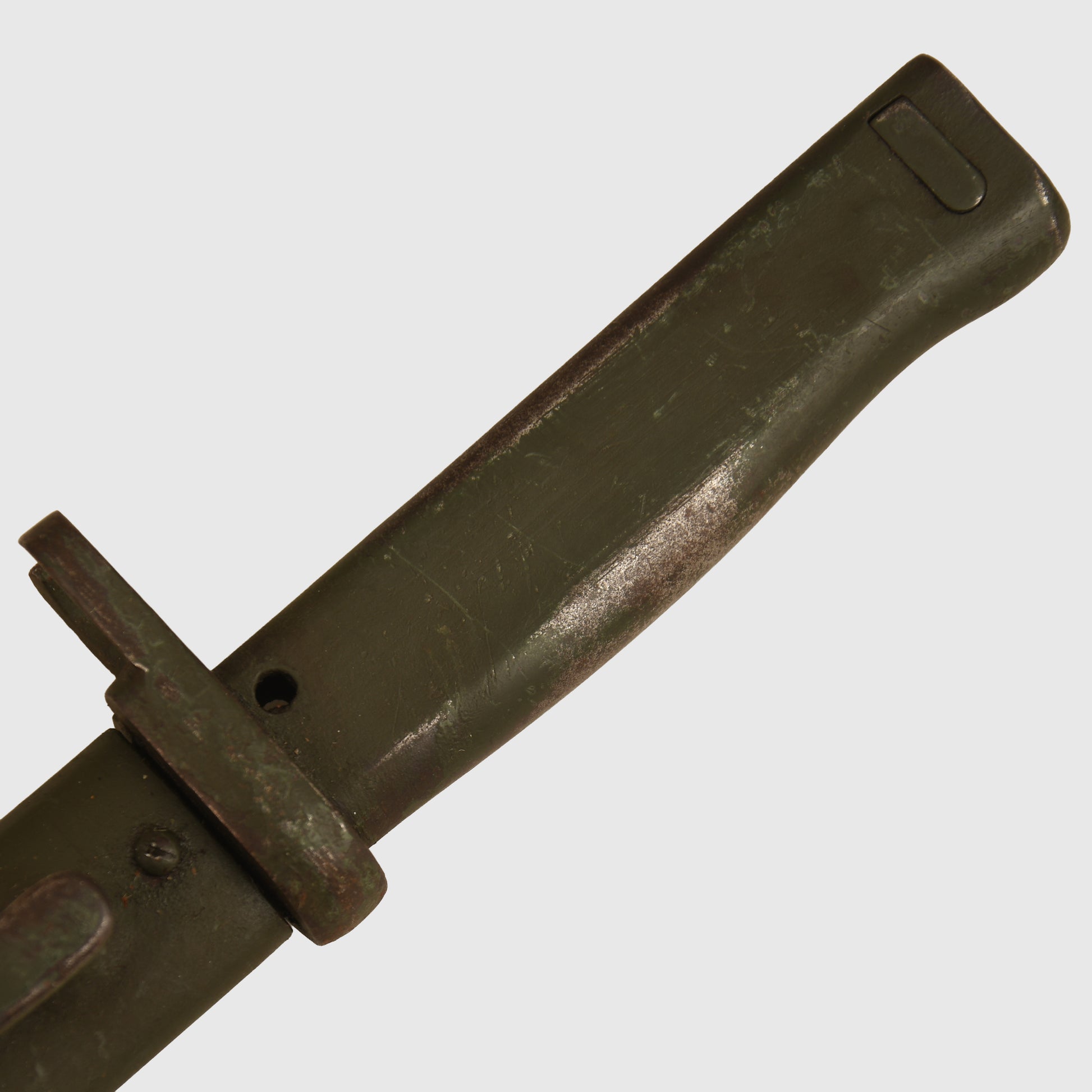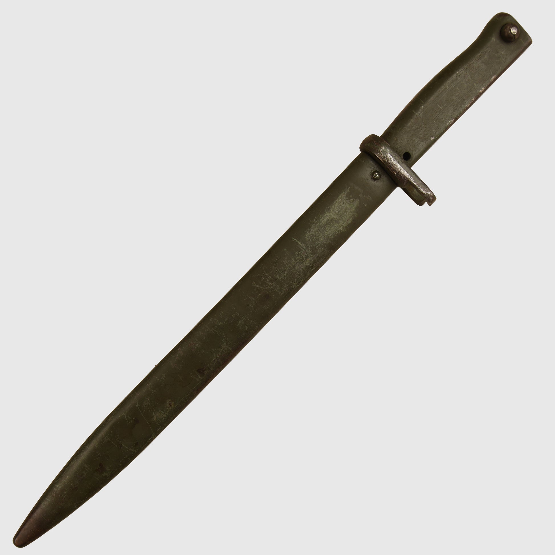 Very nice condition ersatz bayonet with much original paint finish remaining, having faint visible Imperial German acceptance stamps on the rear flat section of the blade. The rifle retaining system is working correctly.