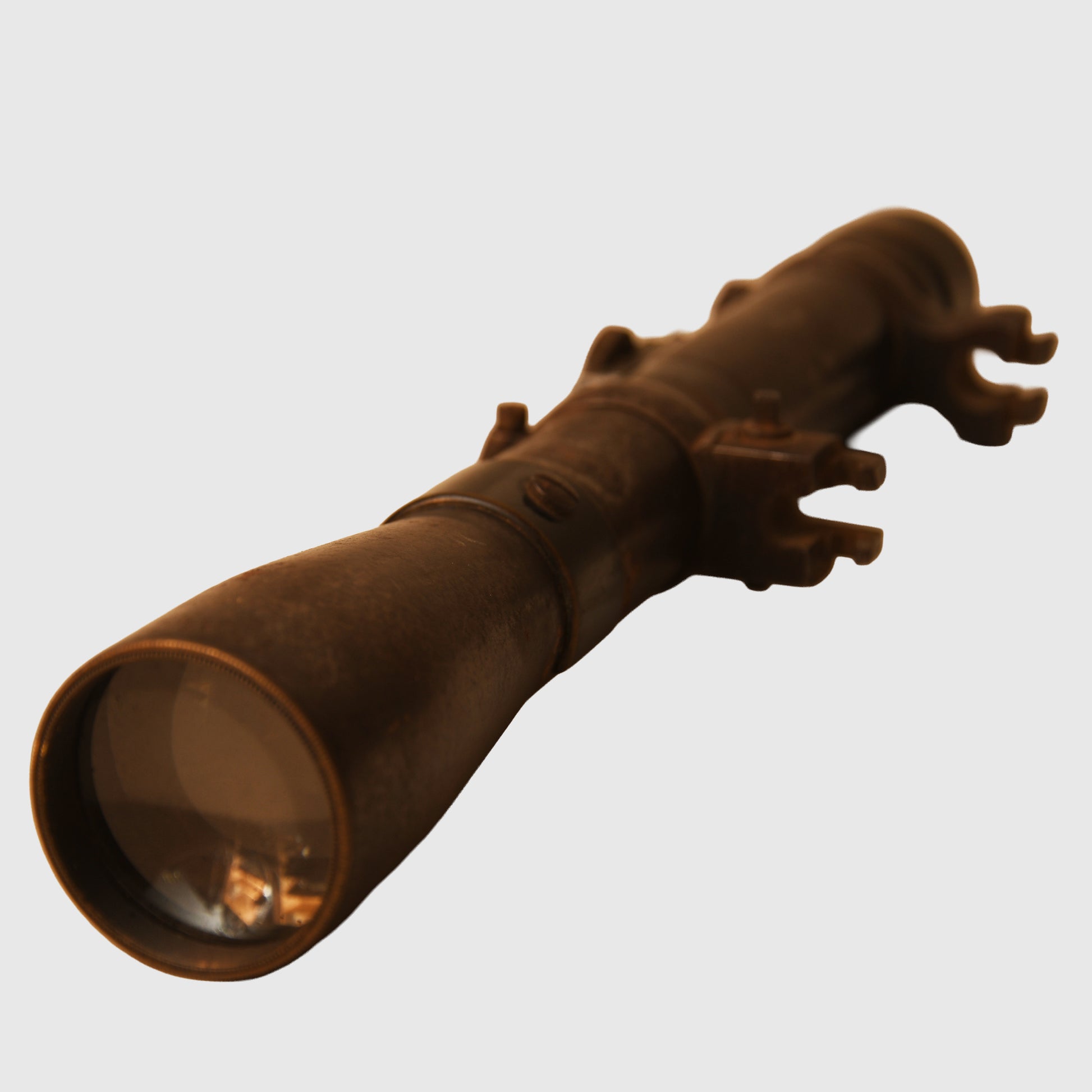 A scarce and highly desirable World War I sniper sight for the Gewehr 98, manufactured by Emil Busch of Rathenow. The sight is crisply marked ‘VISAR 4½ DRGM’, with the rifle number ‘6284’ stamped below the adjustment wheel. It retains traces of its original blued finish, with light rust spotting and areas of thinning consistent with age and period service use. The optics remain excellent, and both double claw fixing points are present, complete, and intact. Supplied with its original brown leather carrying case, unmarked, with a shortened shoulder strap.