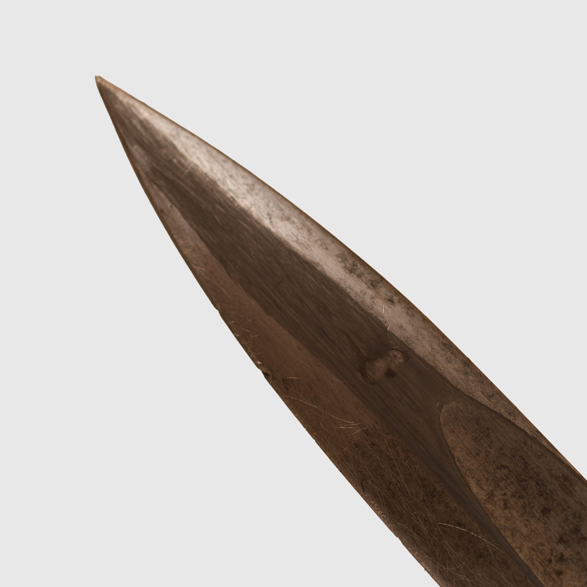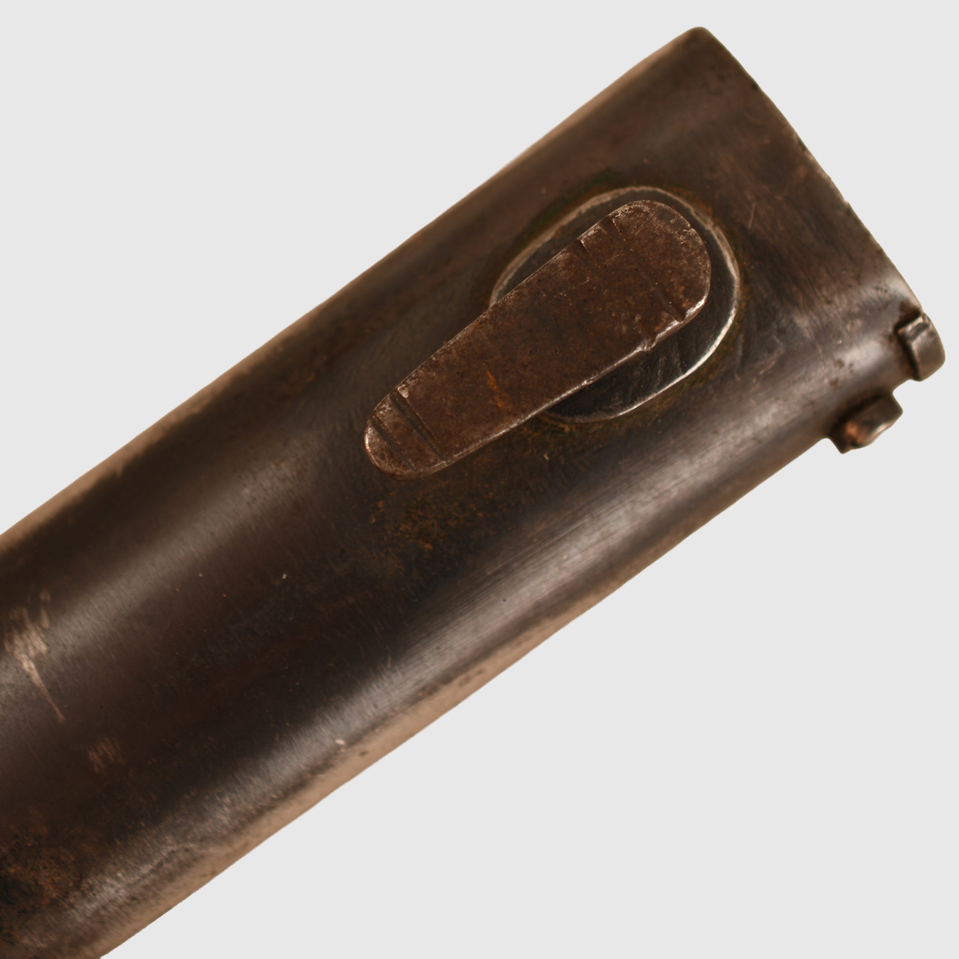 Fitted into its original scabbard, which has a minor indentation to the lower section, this is a complete and historically interesting example.