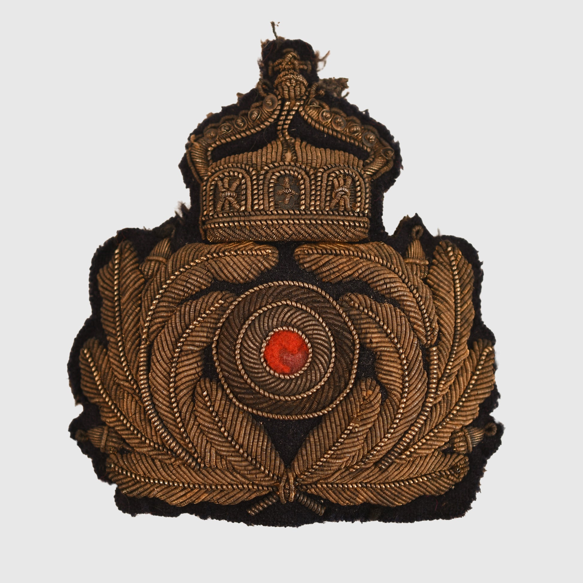 A scarce and desirable Imperial German Navy officer’s visor cap cockade, finely executed in heavy gold bullion with a detailed Imperial crown. A high-quality example of WWI naval insignia, increasingly difficult to find.