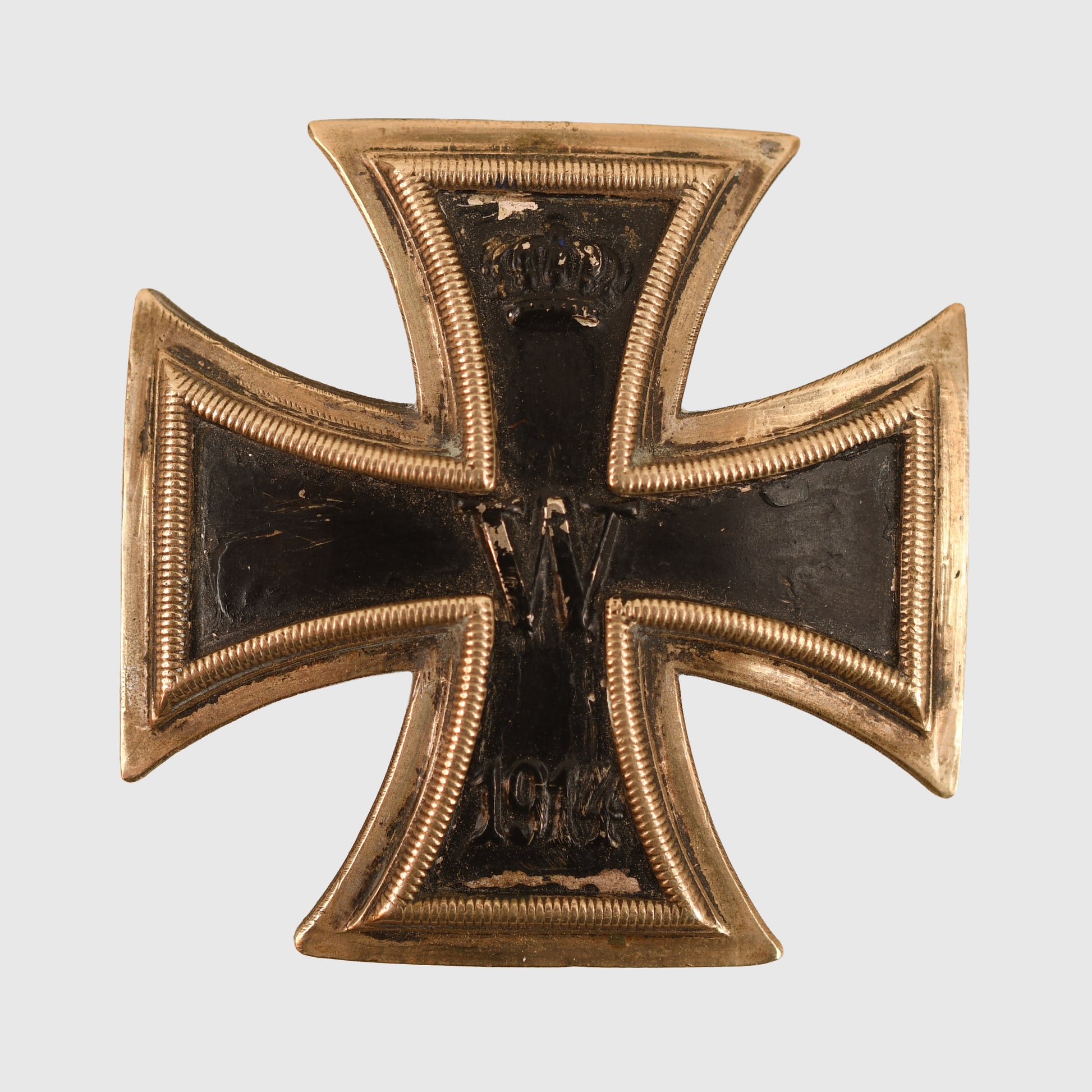 This is a characterful and service-used example of the 1914 Iron Cross 1st Class. The award features a pronounced convex (vaulted) shape, a style frequently preferred by officers and soldiers for its more aesthetic and tailored fit against the uniform tunic.