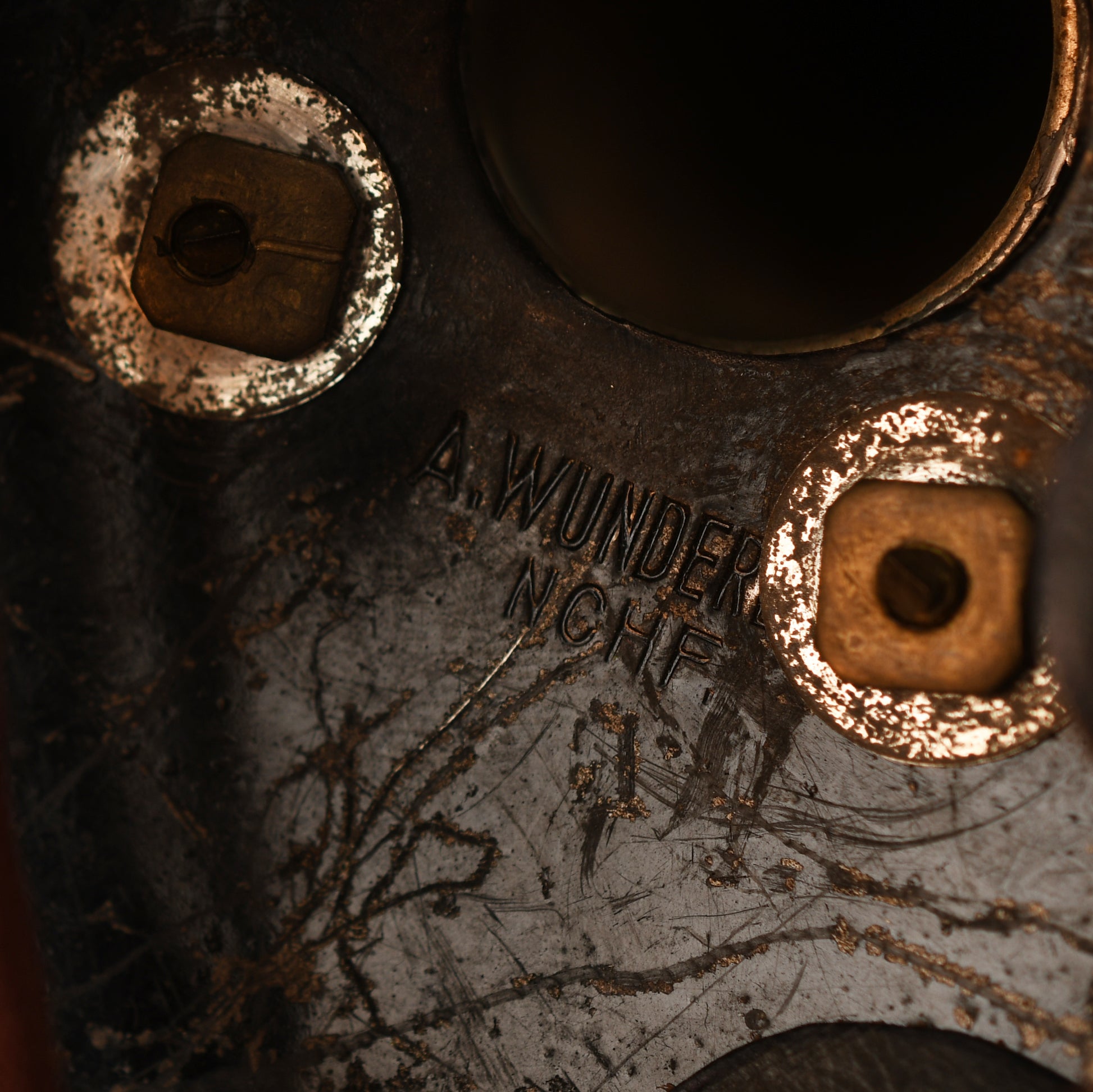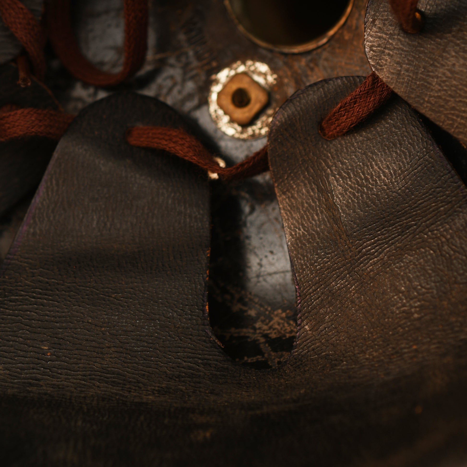 Inside, the rear inner edge trim is stamped with a size 55. The nine-tongued leather liner is present and intact, though the drawstring appears to be a period replacement made from a shoelace. The interior of the skull near the spike base is maker-marked; while a washer partially obscures the full name, the first portion A. Wunder is legible, with the manufacturing town appearing to be Neufchatel. This is a highly scannable and iconic piece of Imperial German cavalry headgear.