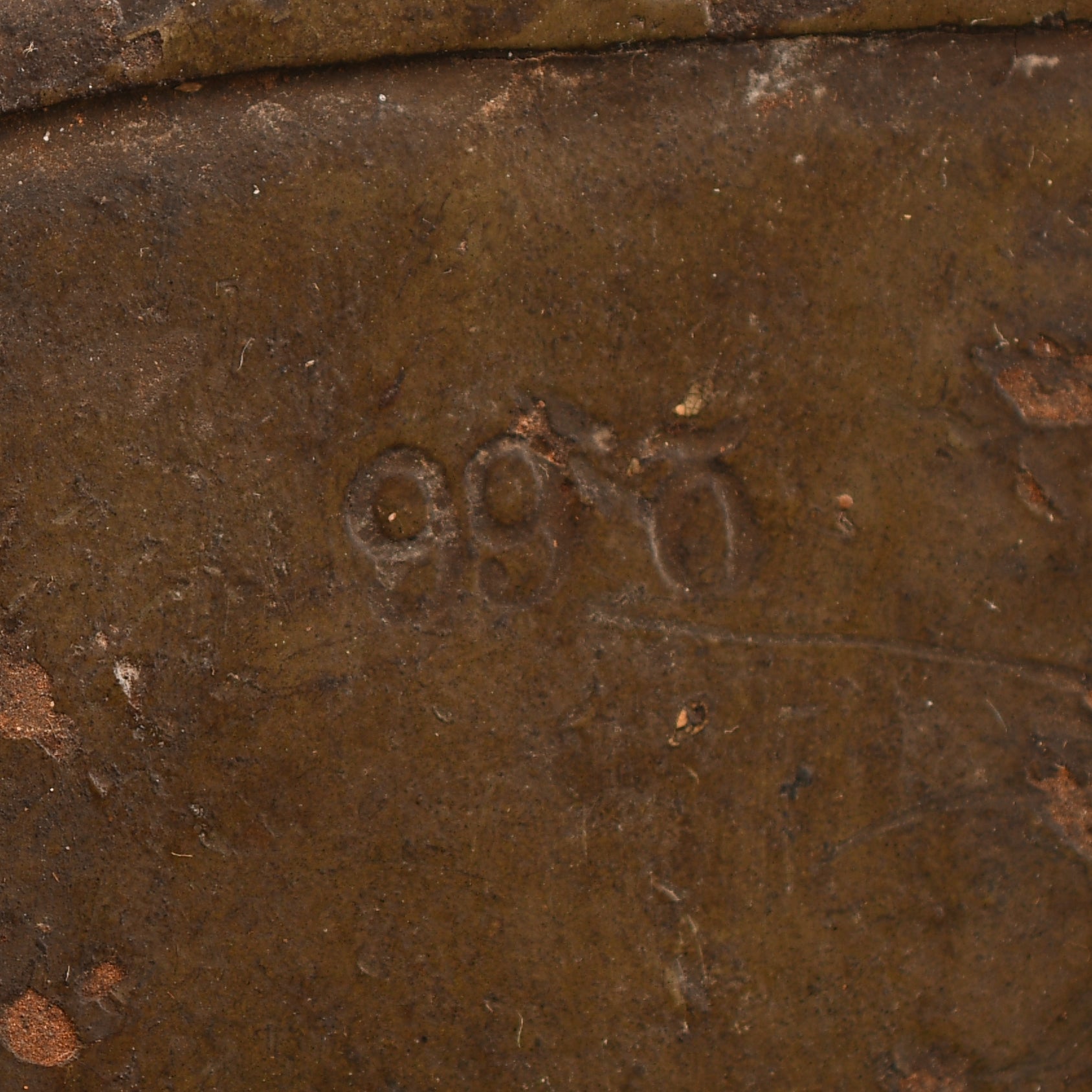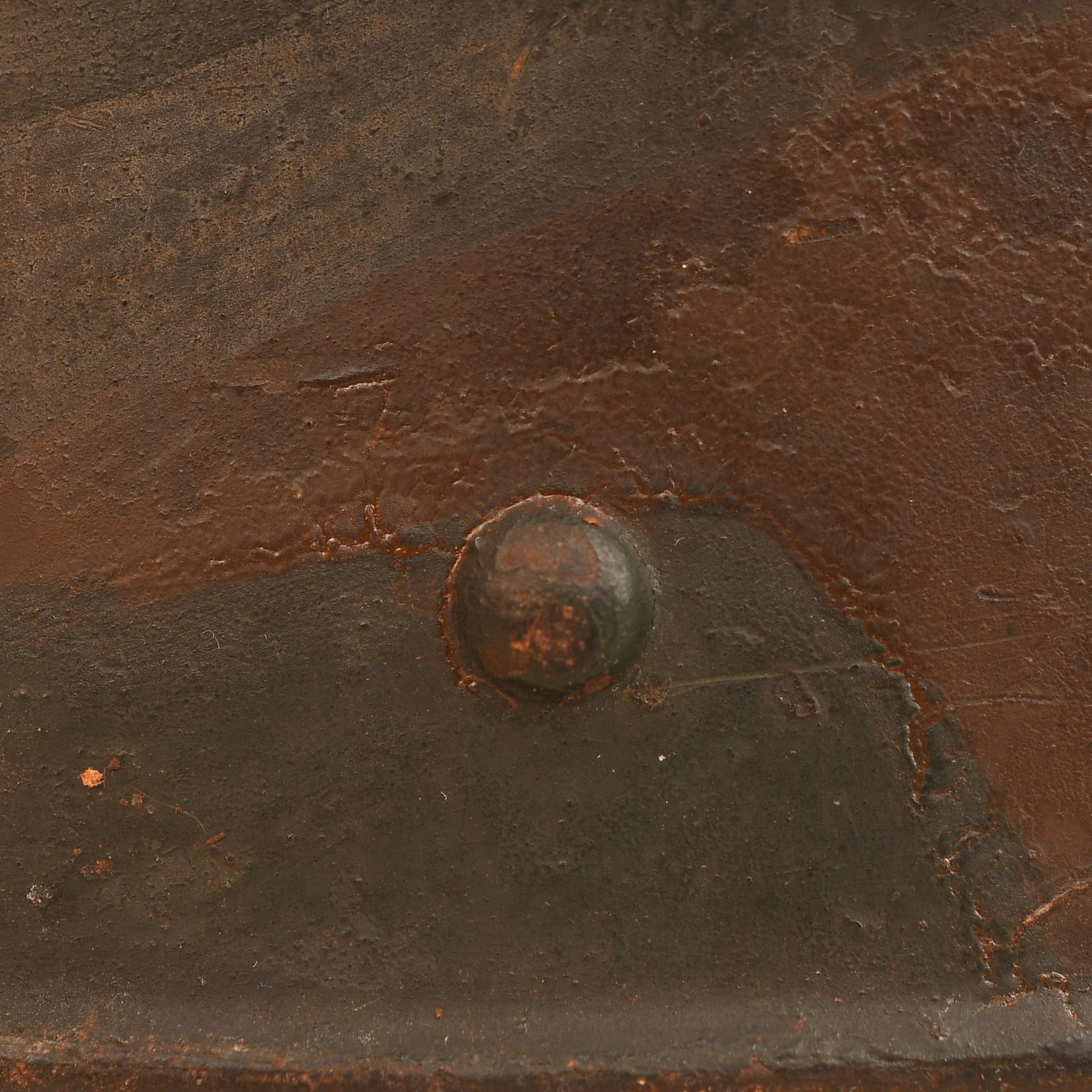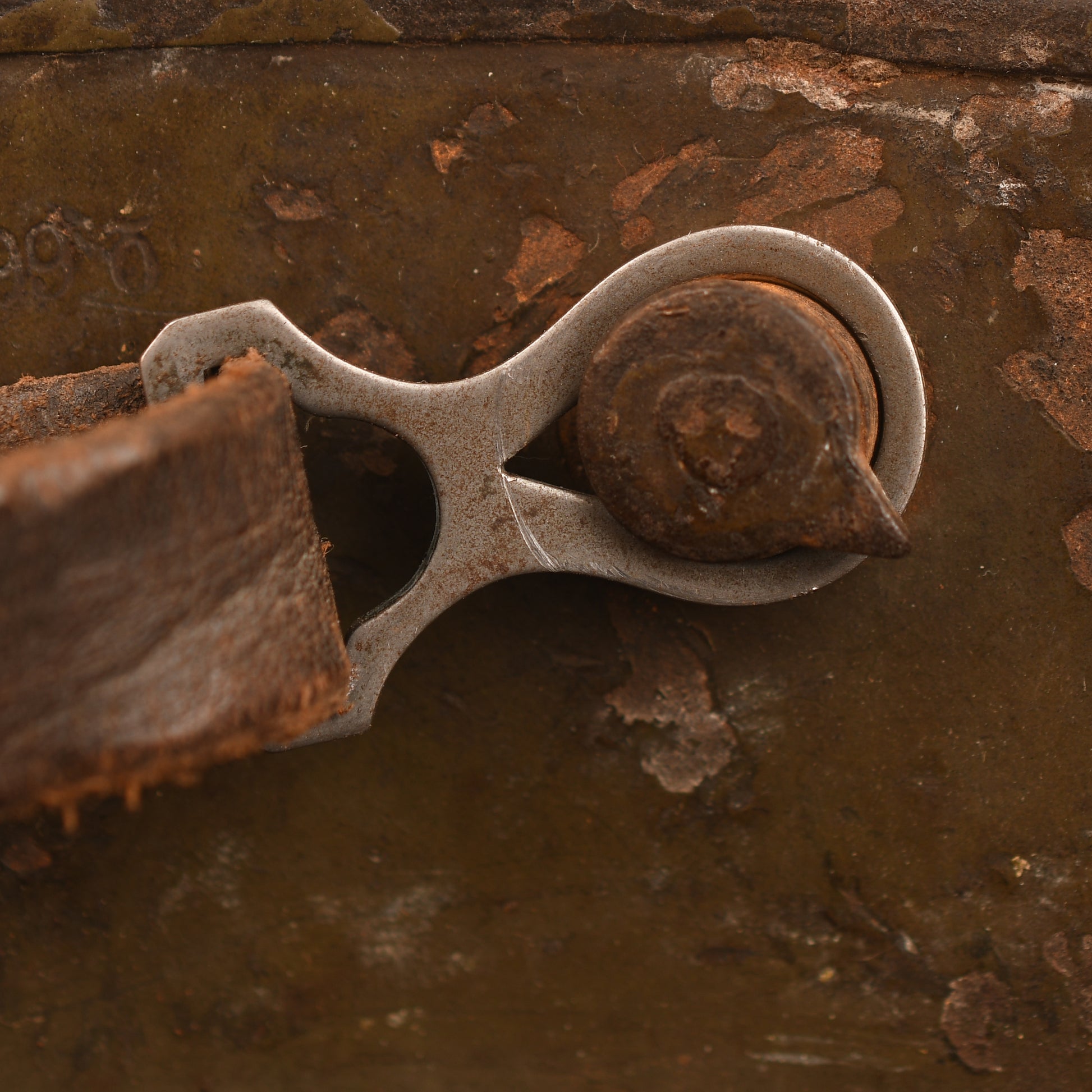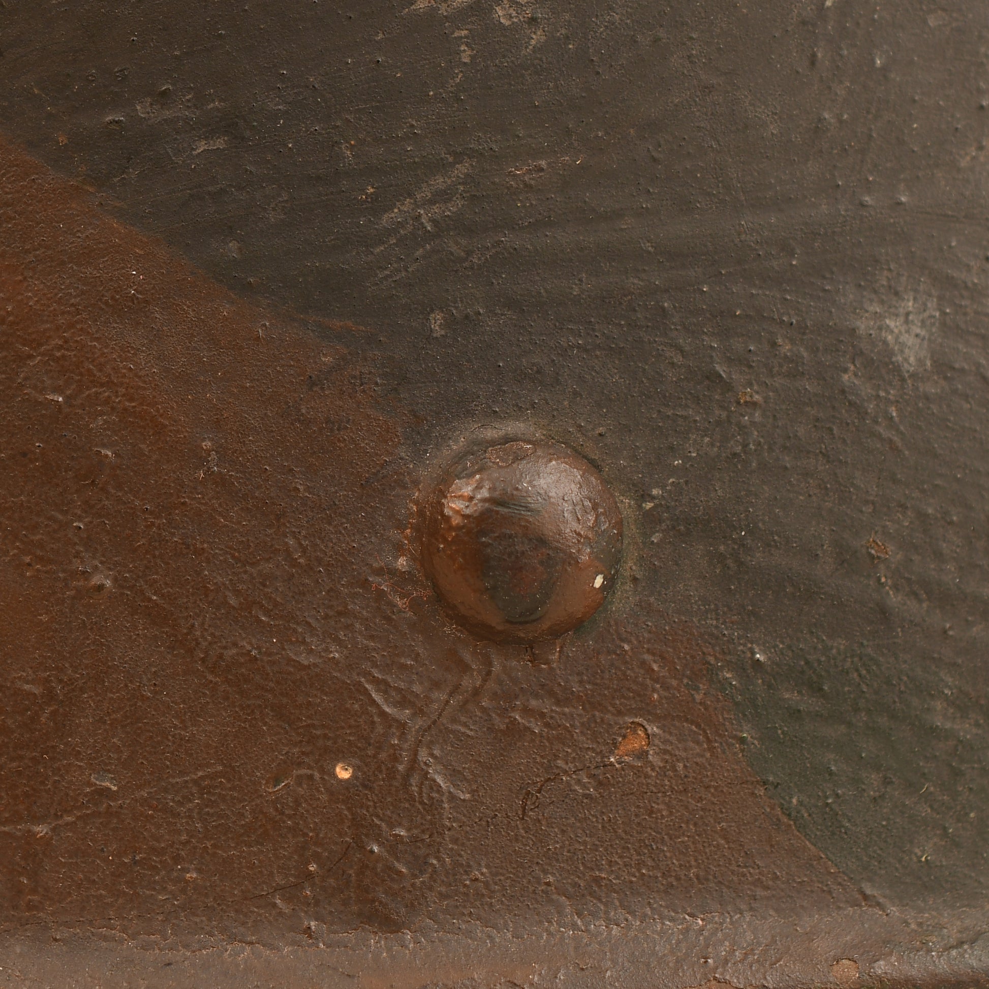 A highly unusual example of a World War I M16 trench helmet, produced by the scarce maker Quist, size 66. This helmet features an exceptionally rare and distinctive camouflage pattern — one unlike any we’ve encountered before — making it a true rarity among surviving examples.