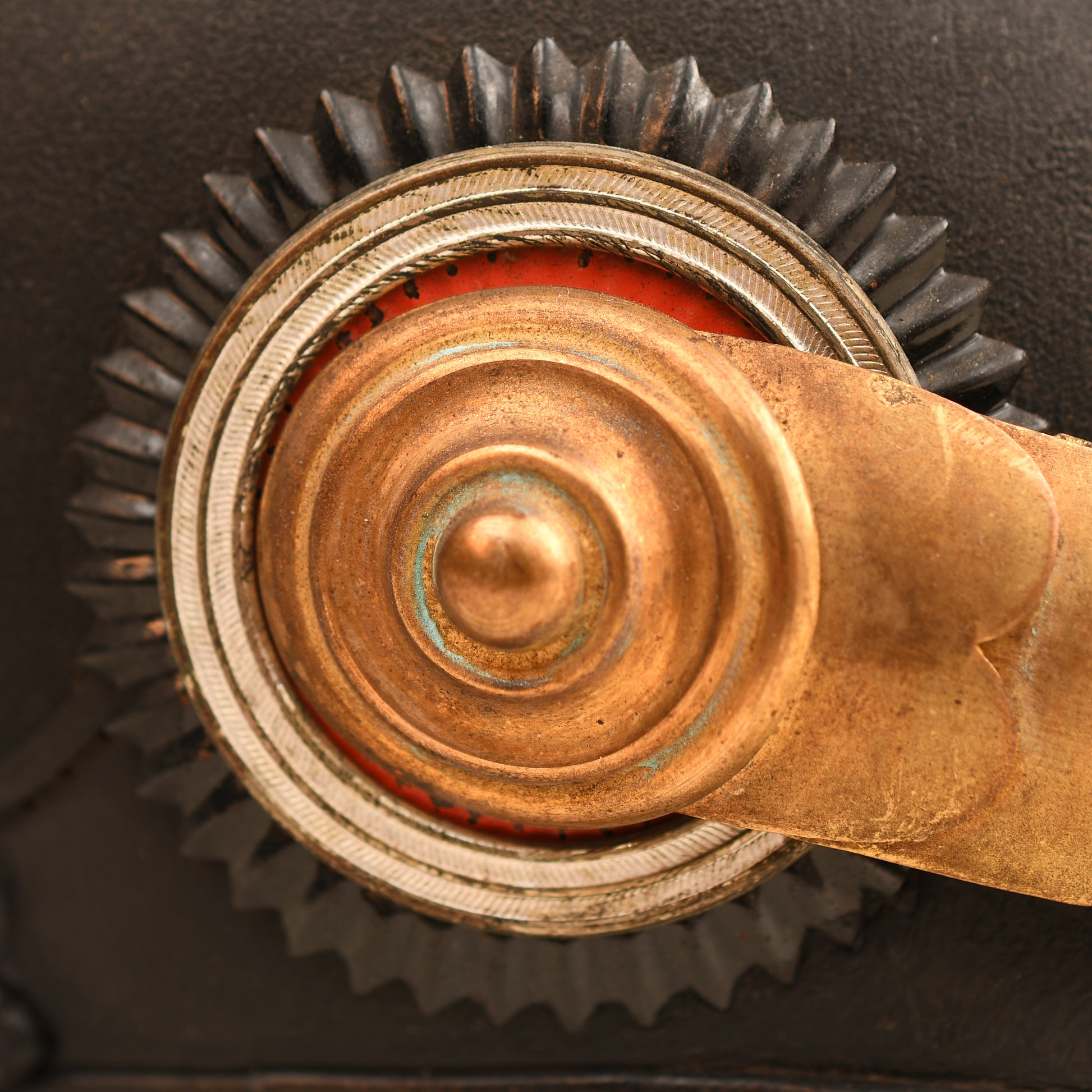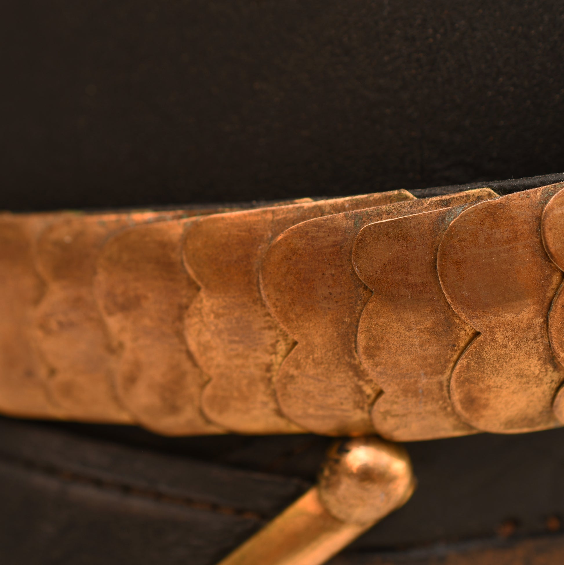 Inside, the light tan leather sweatband shows minimal wear, complemented by its original green satin inner lining. A pencil notation inside reads ’59 or 57½’, though the second digit is slightly indistinct. A fine, very impressive example of a Prussian officers pickelhaube.
