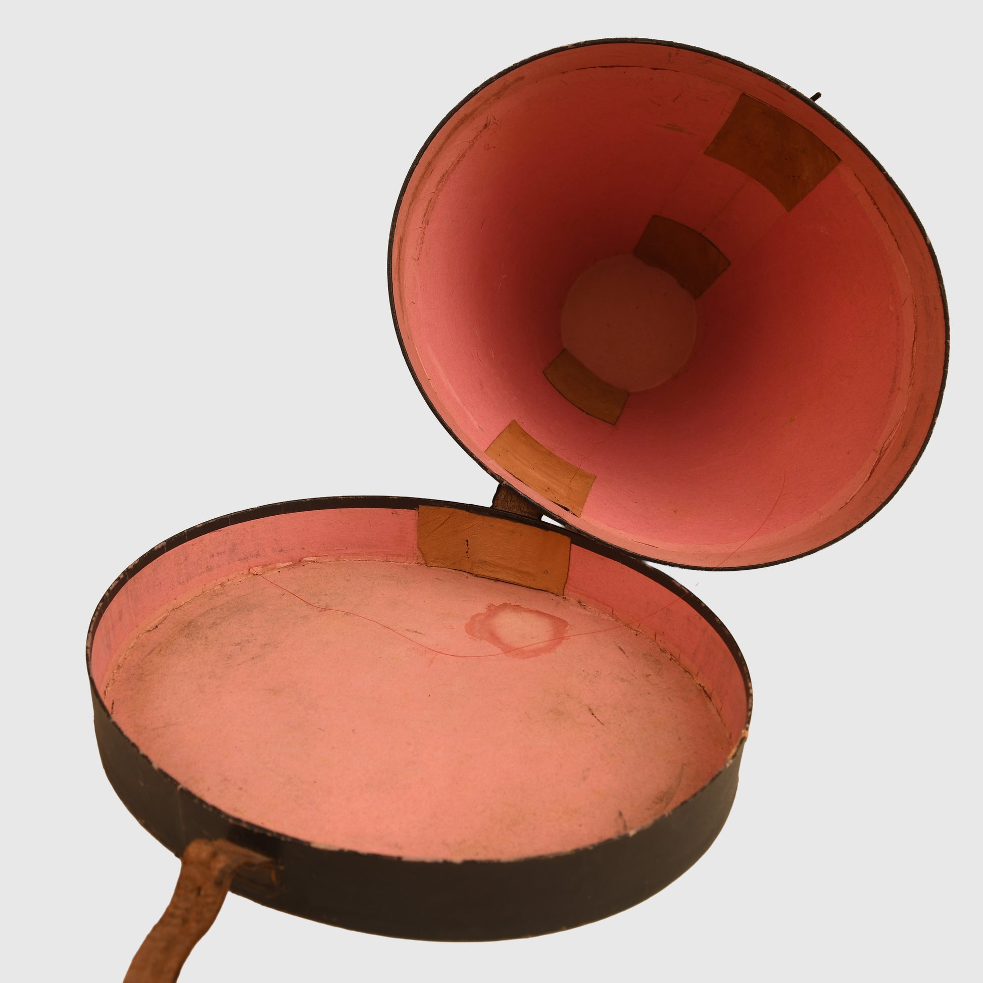 Interior features complete leather sweatband and inner liner, approximately size 56. Comes with original carrying case, fully intact.