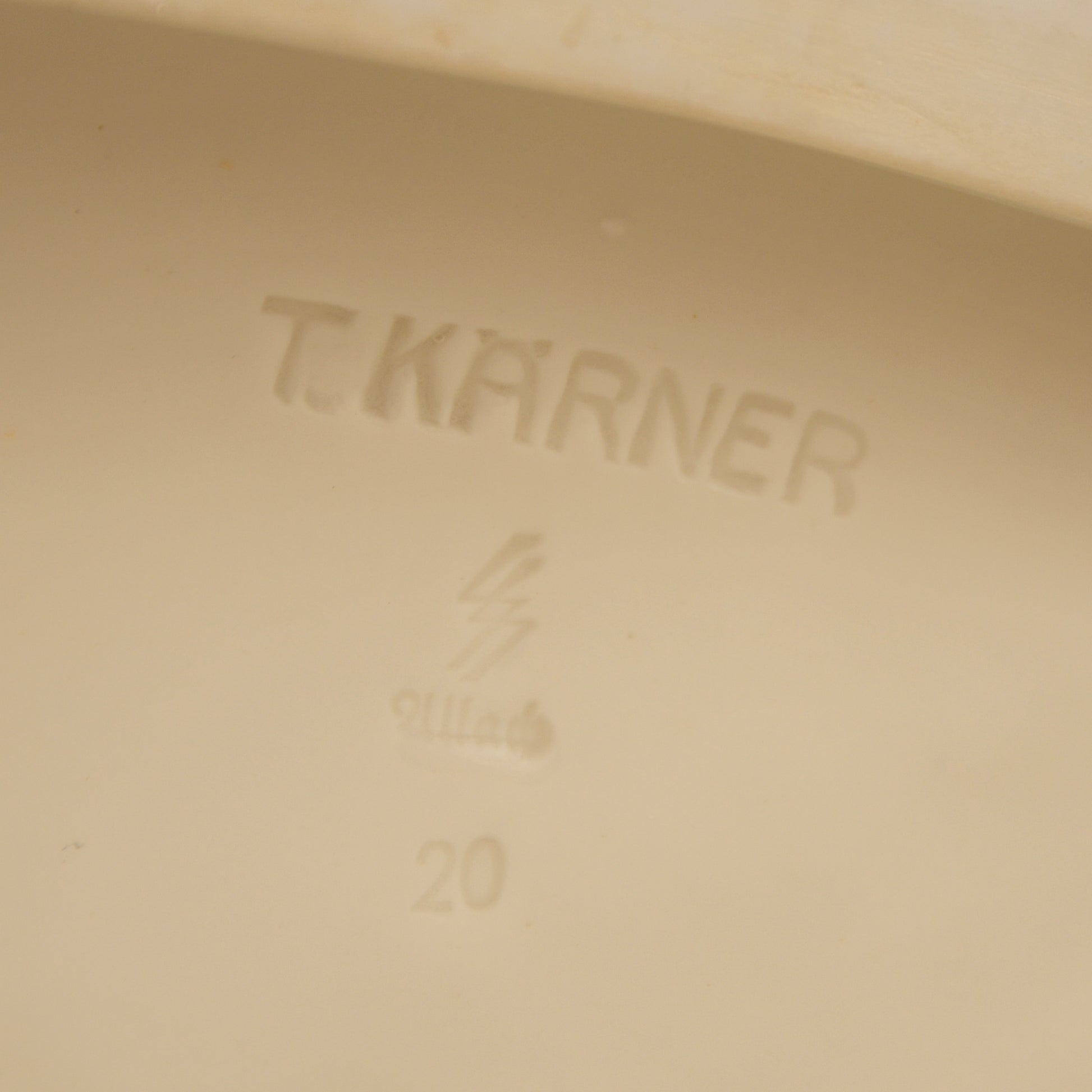 The figure stands 36.2 cm high, with a length of 40 cm measured from the mouth to the rear leg. The piece is marked “T Karner” with the SS runic press symbol and the model number “20” on the base. It is completely undamaged and unrestored, retaining full integrity.