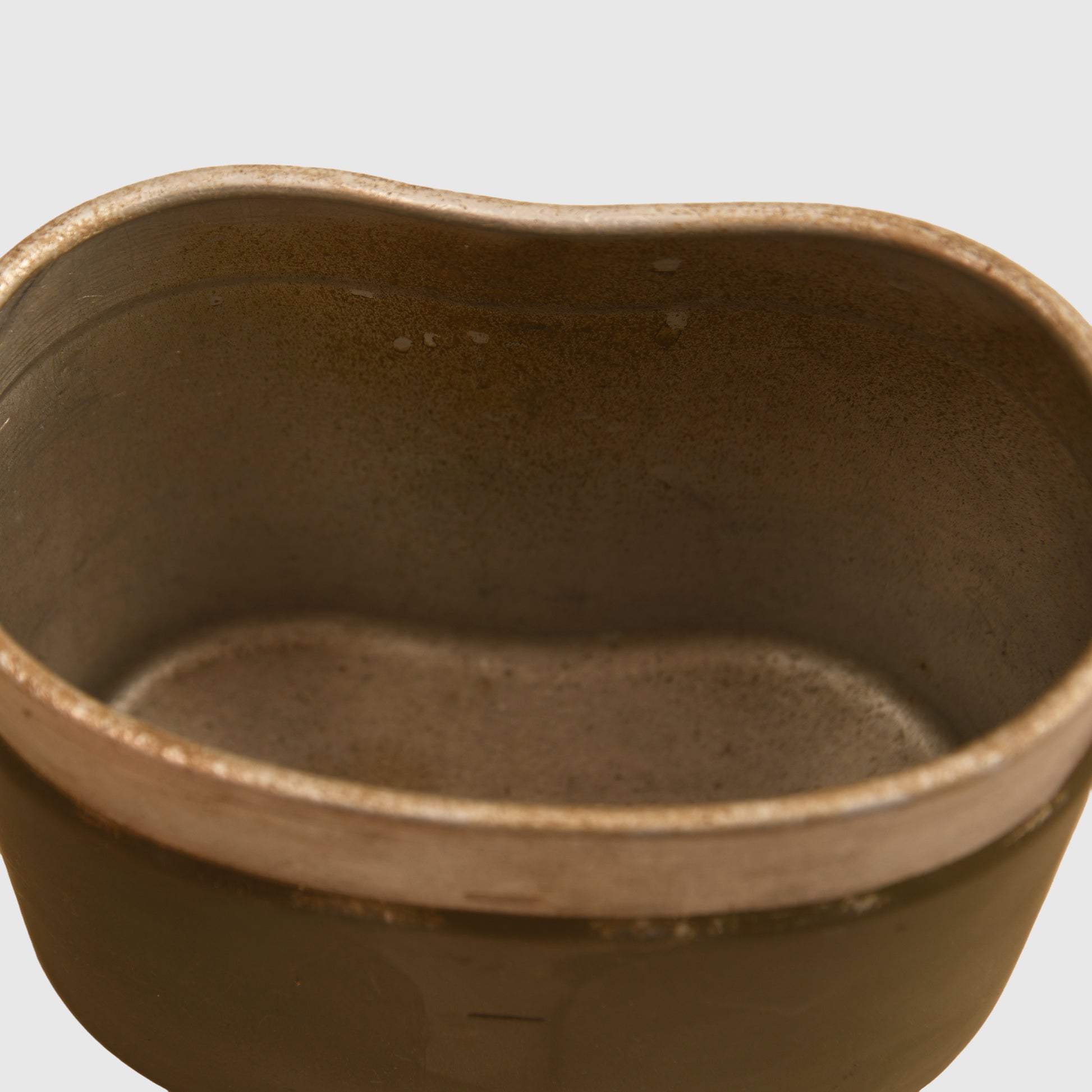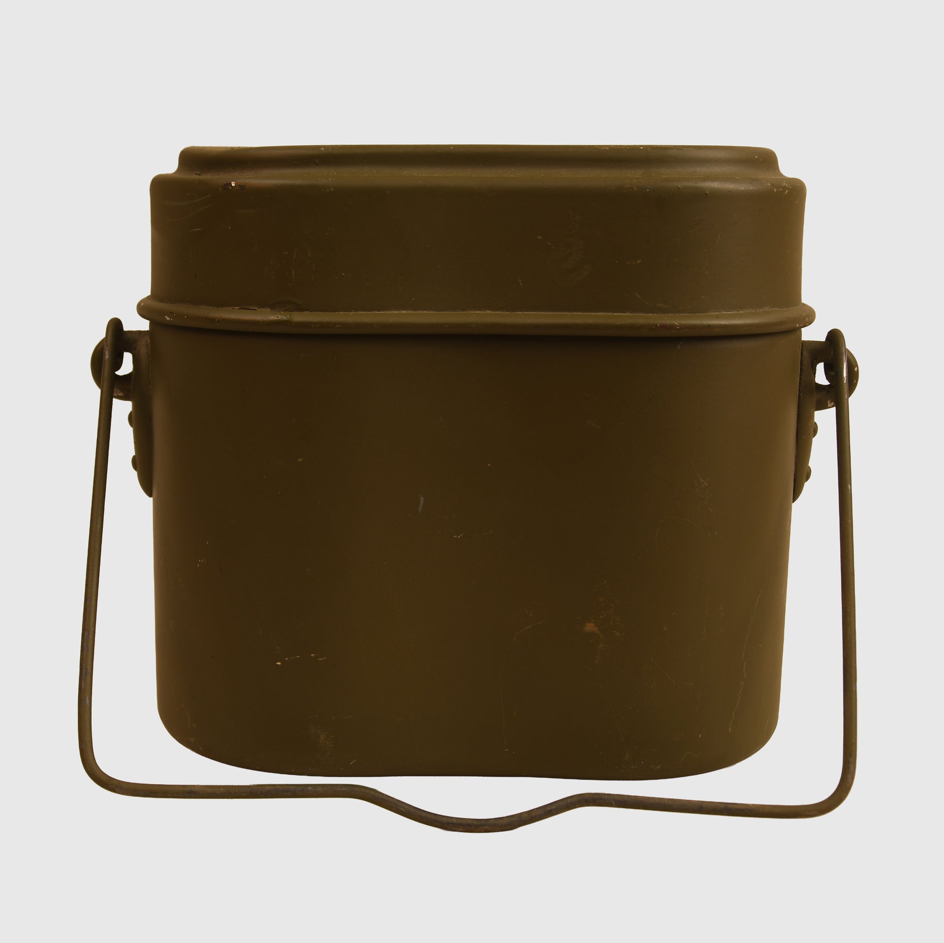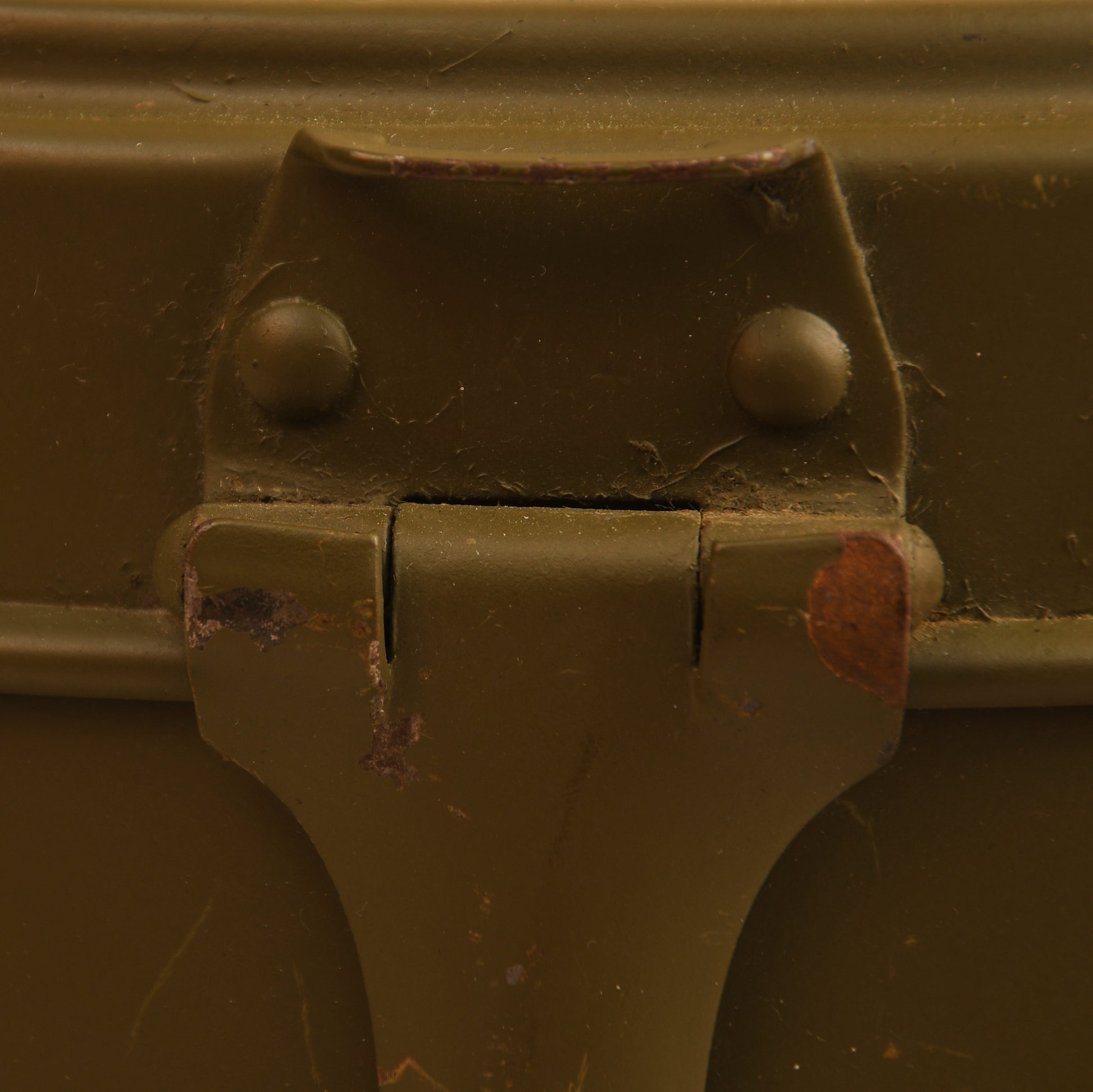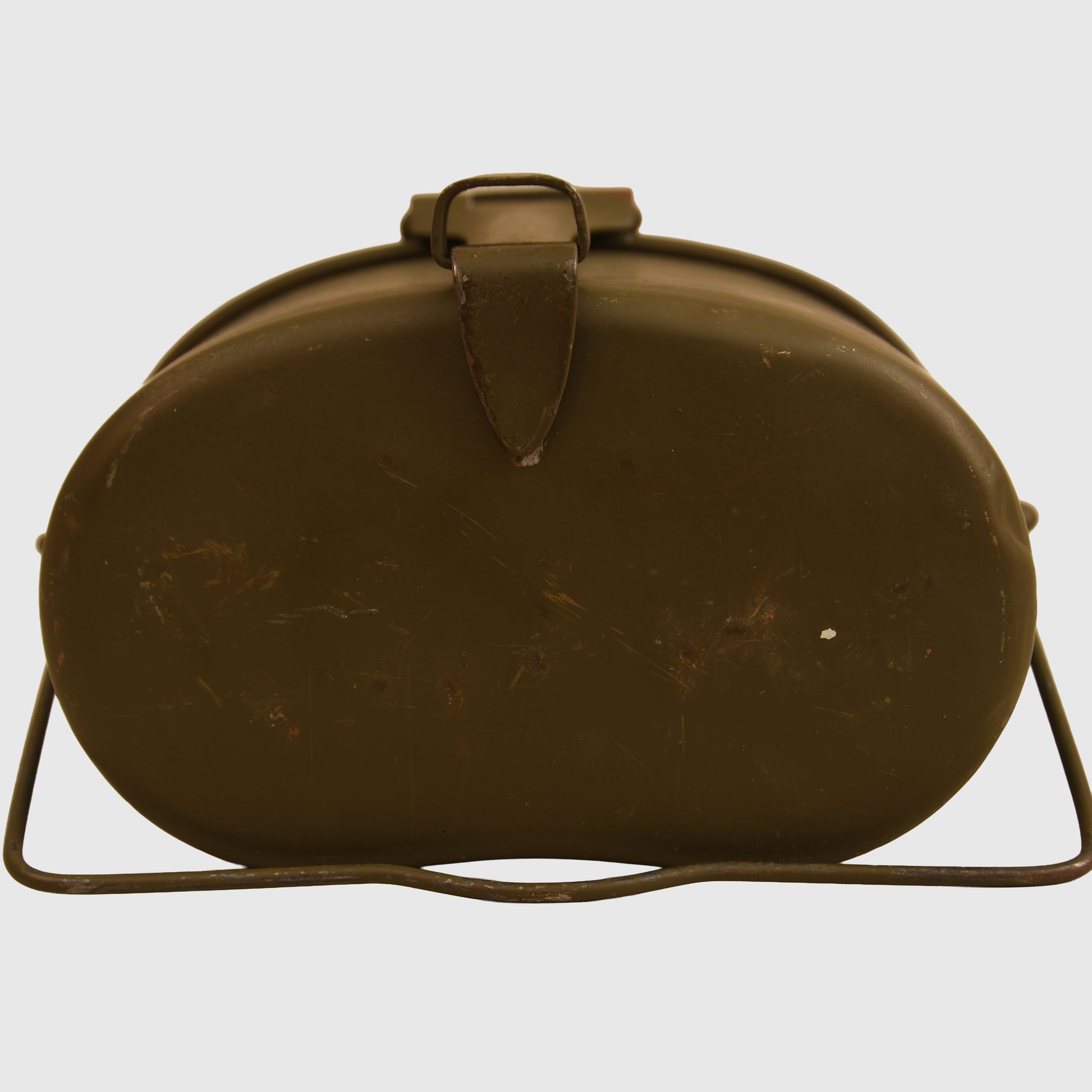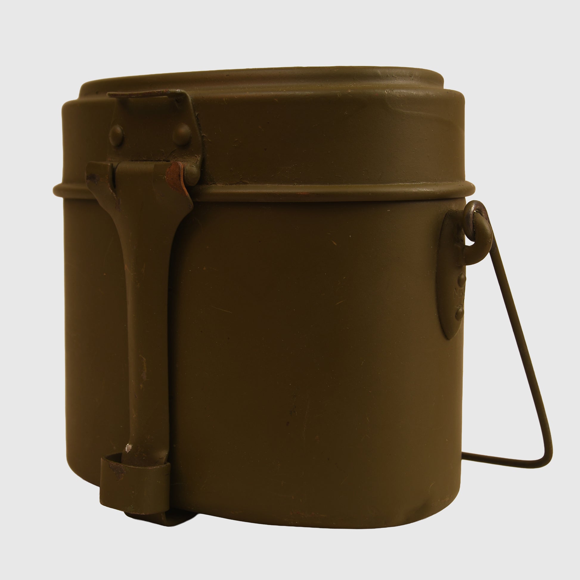 An excellent example of a German WWII Armed Forces mess tin, retaining virtually all of its original paint finish. A small area of rust bleed is visible at the top right of the closure system. Marked ‘MKL41’ and complete with its original carrying handle, this tin remains in superb, collectible condition.