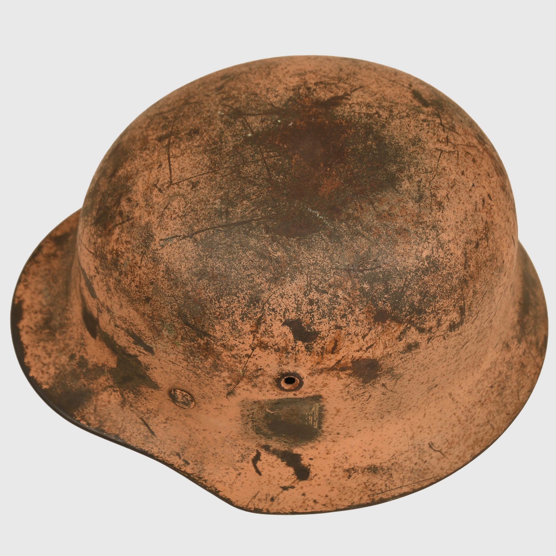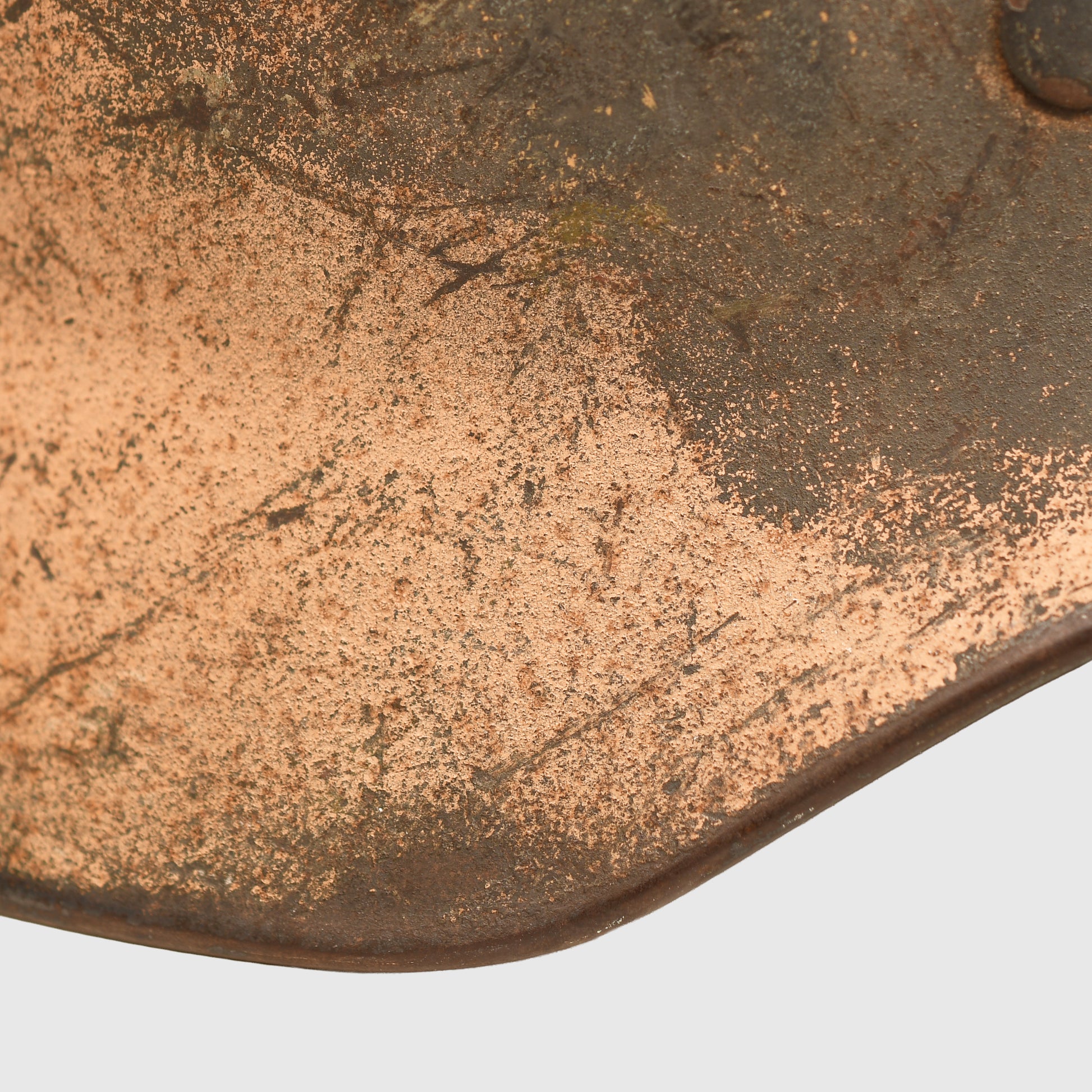 A very fine M40 combat helmet, factory marked ‘Q64’, finished in the correct tropical shade of pinkish-tan used in North Africa. Around 70% of the original paint finish remains, with the worn areas clearly visible in images. The vast majority of tropical-painted helmets found today are Luftwaffe issue, making army-issued examples such as this extremely scarce. Only faint traces of the army decal are still visible.