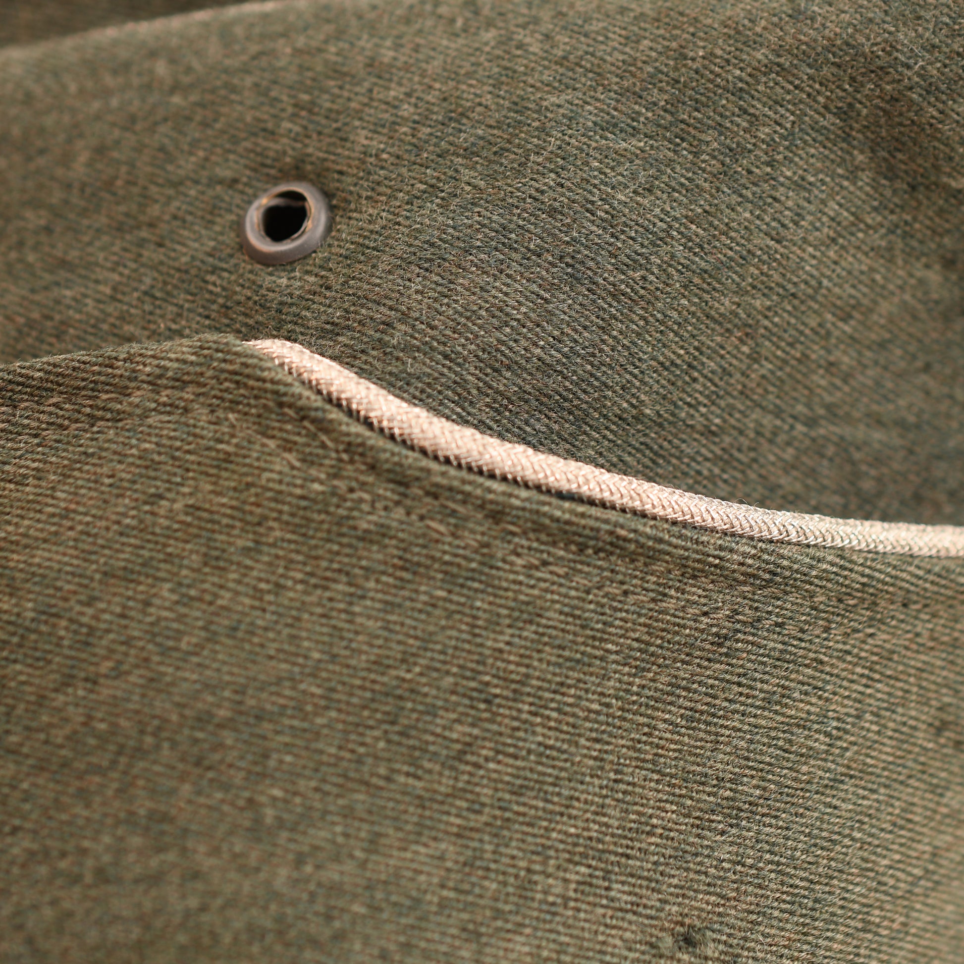The cap shows one minor snag to the material just to the right of the lower portion of the waffenfarbe. Interior lined in light green rayon with a matching light green half-moon leather sweatband.