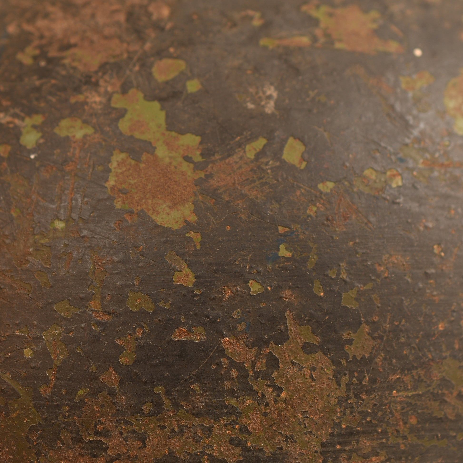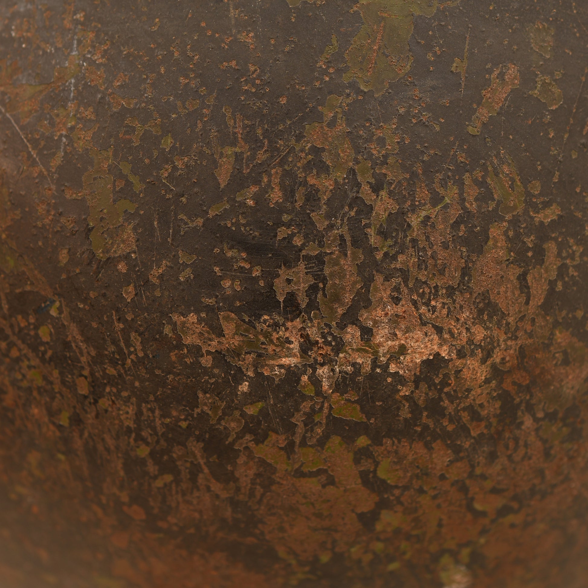An unusual and striking example of a Luftschutz helmet, being a captured Dutch Army helmet repurposed for German civil defence use. The helmet retains its original undamaged Luftschutz insignia. Light green rust shows through the dome, with the original Dutch green paint still visible beneath the German overpaint.