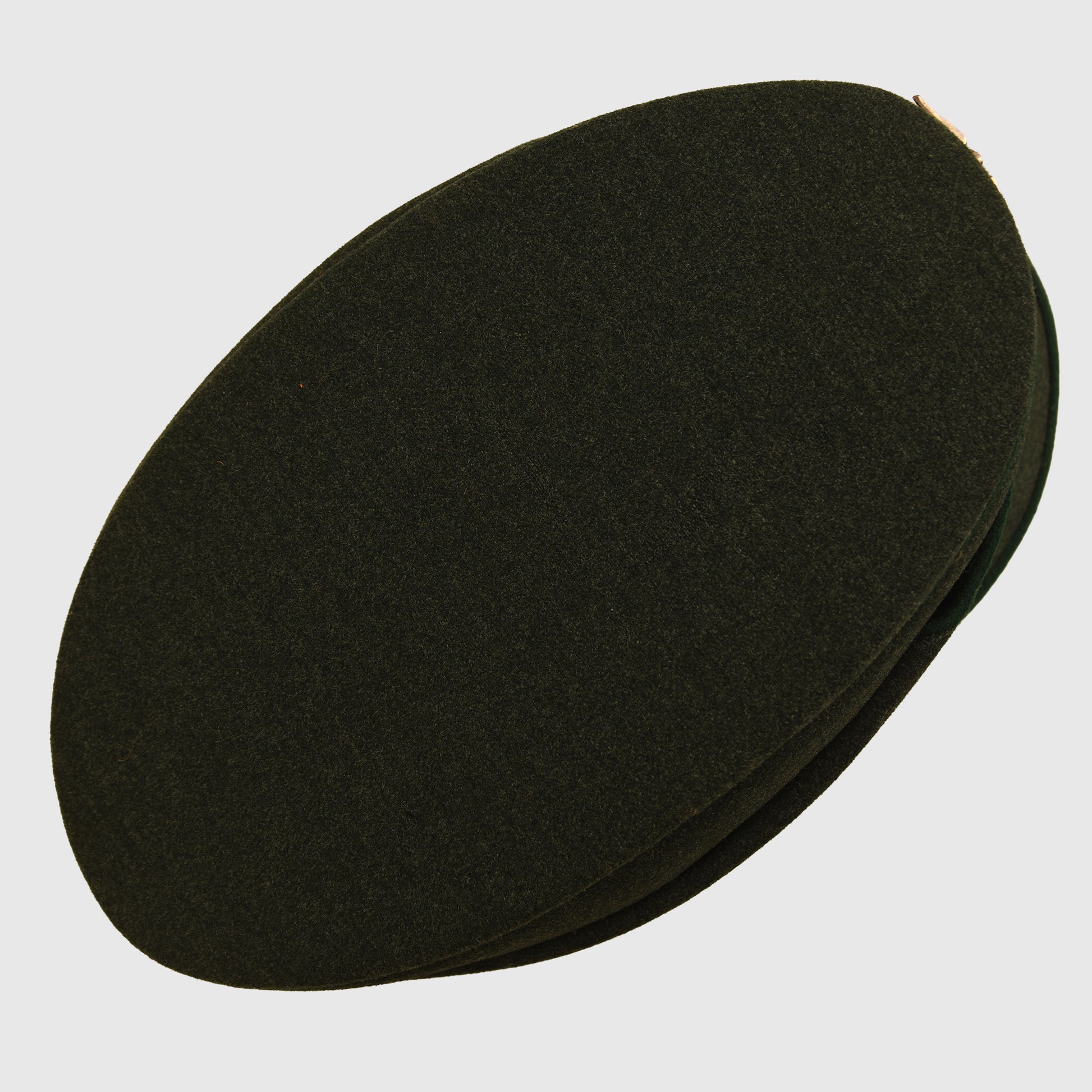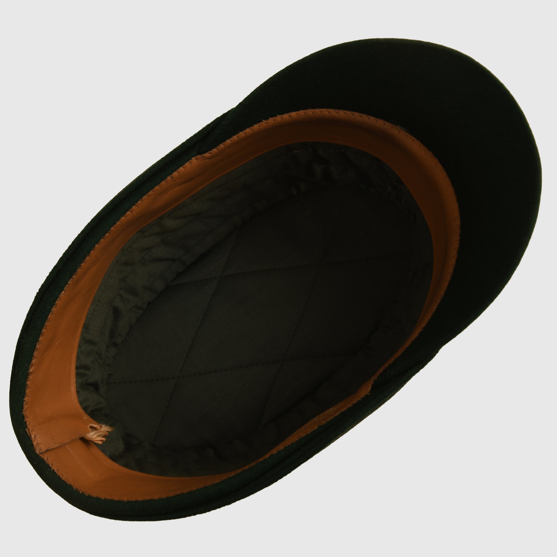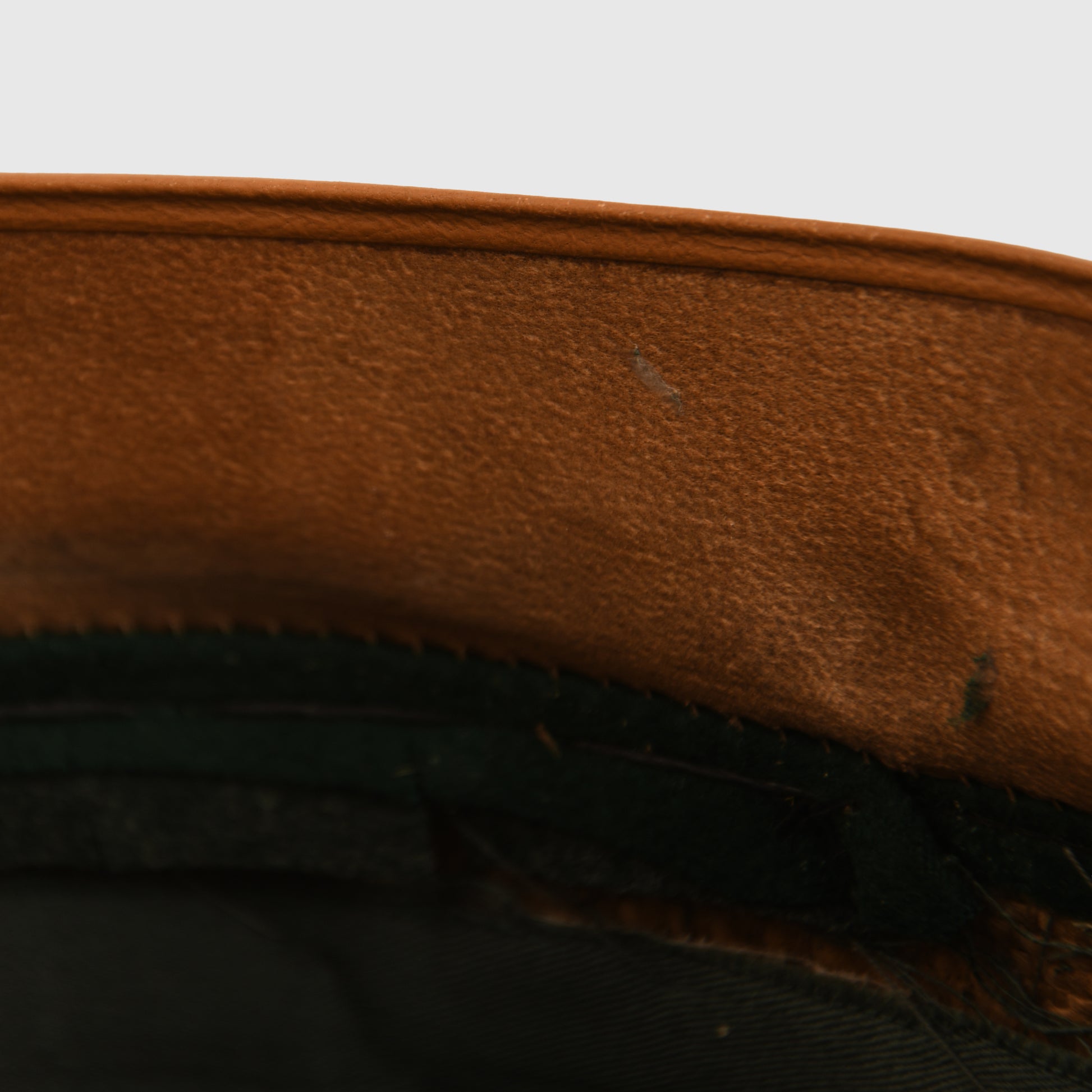 An extremely scarce example of the Prussian Forestry Baschlikmütze, dating from 1934–35. Constructed in forestry green with darker green piping, this large size cap (approx. 59–60) remains in superb condition with no moth damage. The front is fitted with two Prussian eagle buttons with swastika centres, the lower button showing some surface abrasion. Complete with Prussian cockade and the M.29 SA-style political eagle. The light tan leather sweatband is intact, accompanied by a quilted, multi-stitched winter lining. Maker’s name ‘Cottbus’ is silver-blocked to the sweatband. A highly desirable and rare forestry service cap.