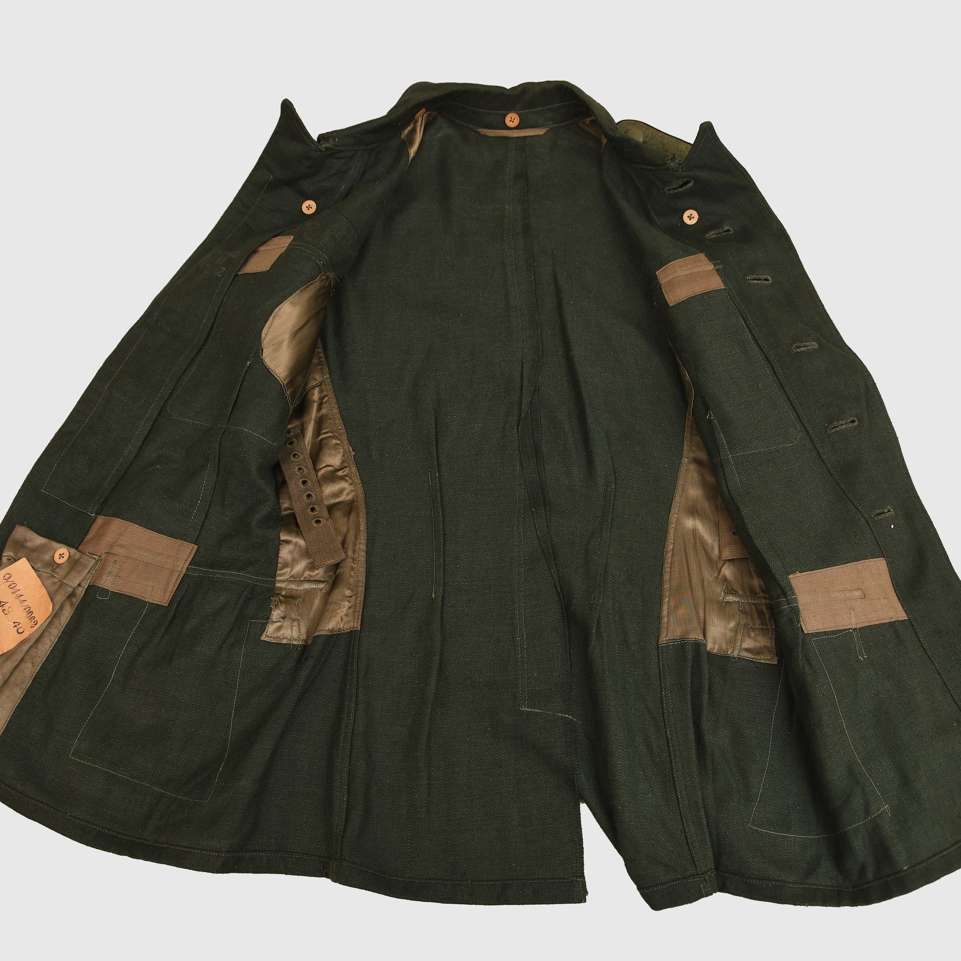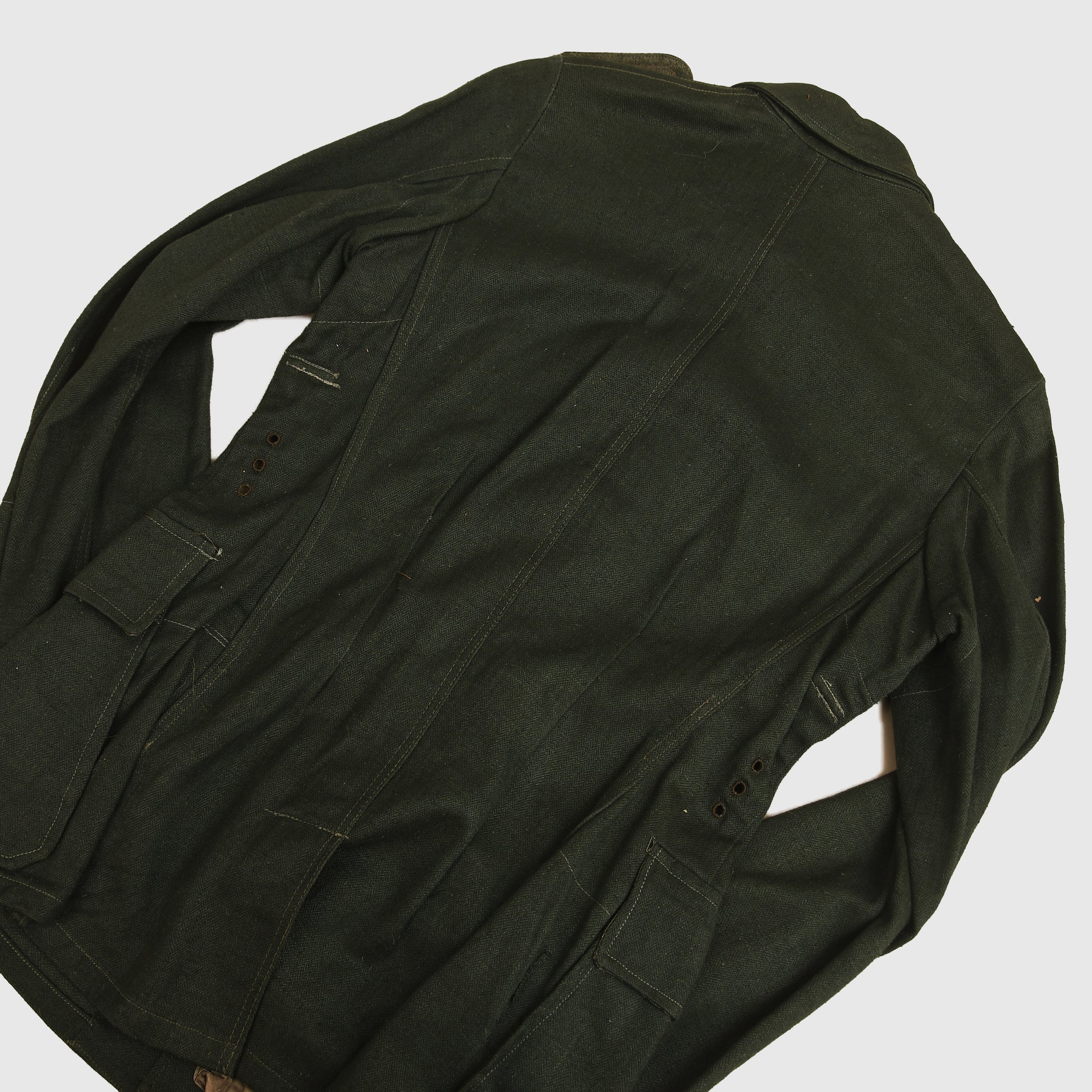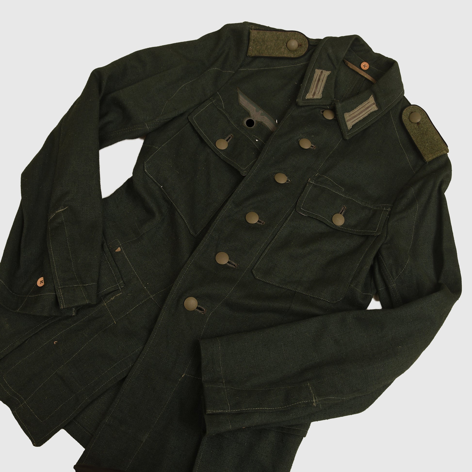 As World War II progressed and wool shortages became critical, Herringbone Twill (HBT) fabric was widely adopted in Germany for the manufacture of tunics and trousers across all armed services. This is a superb large-size example of an Army HBT combat tunic, featuring a good green colour throughout.