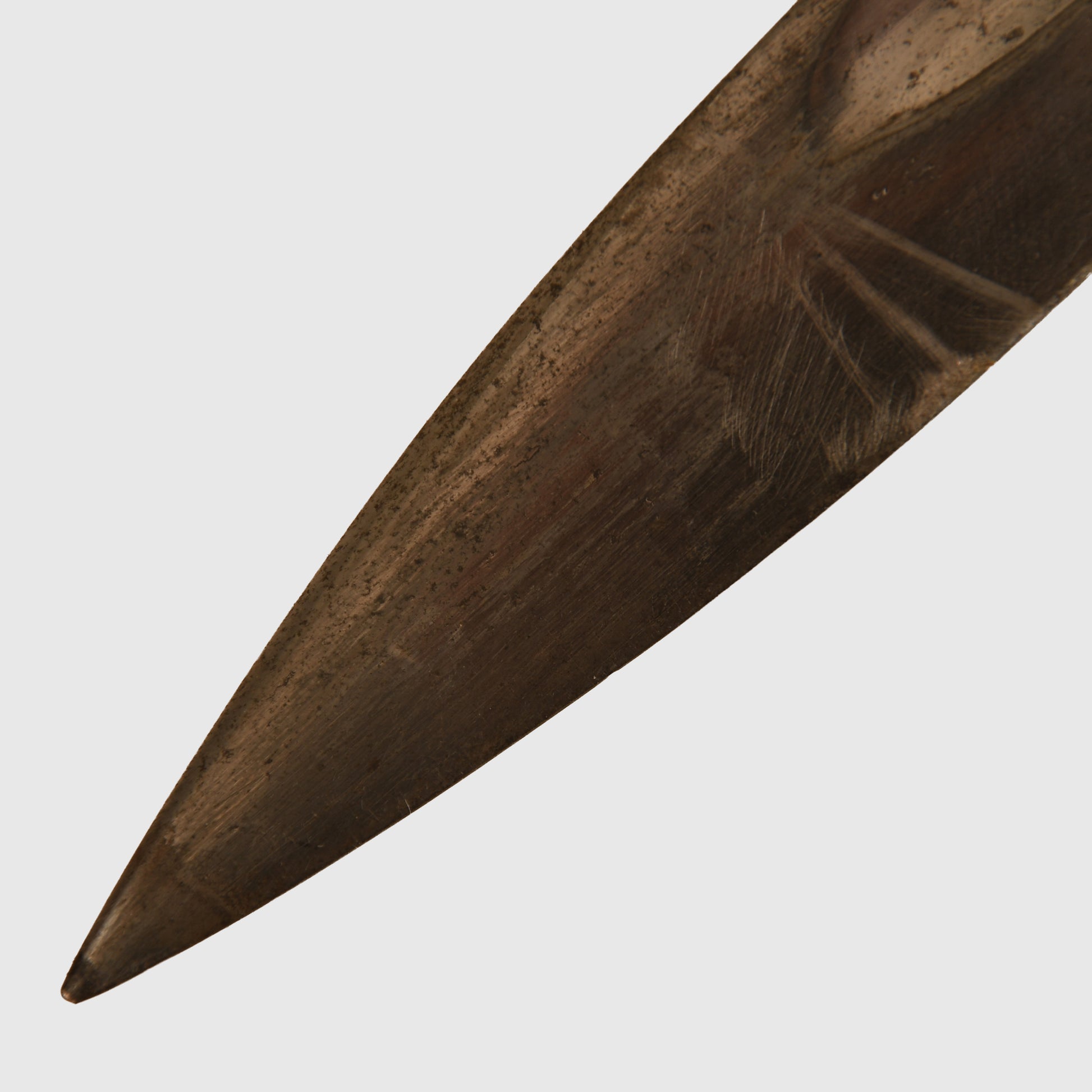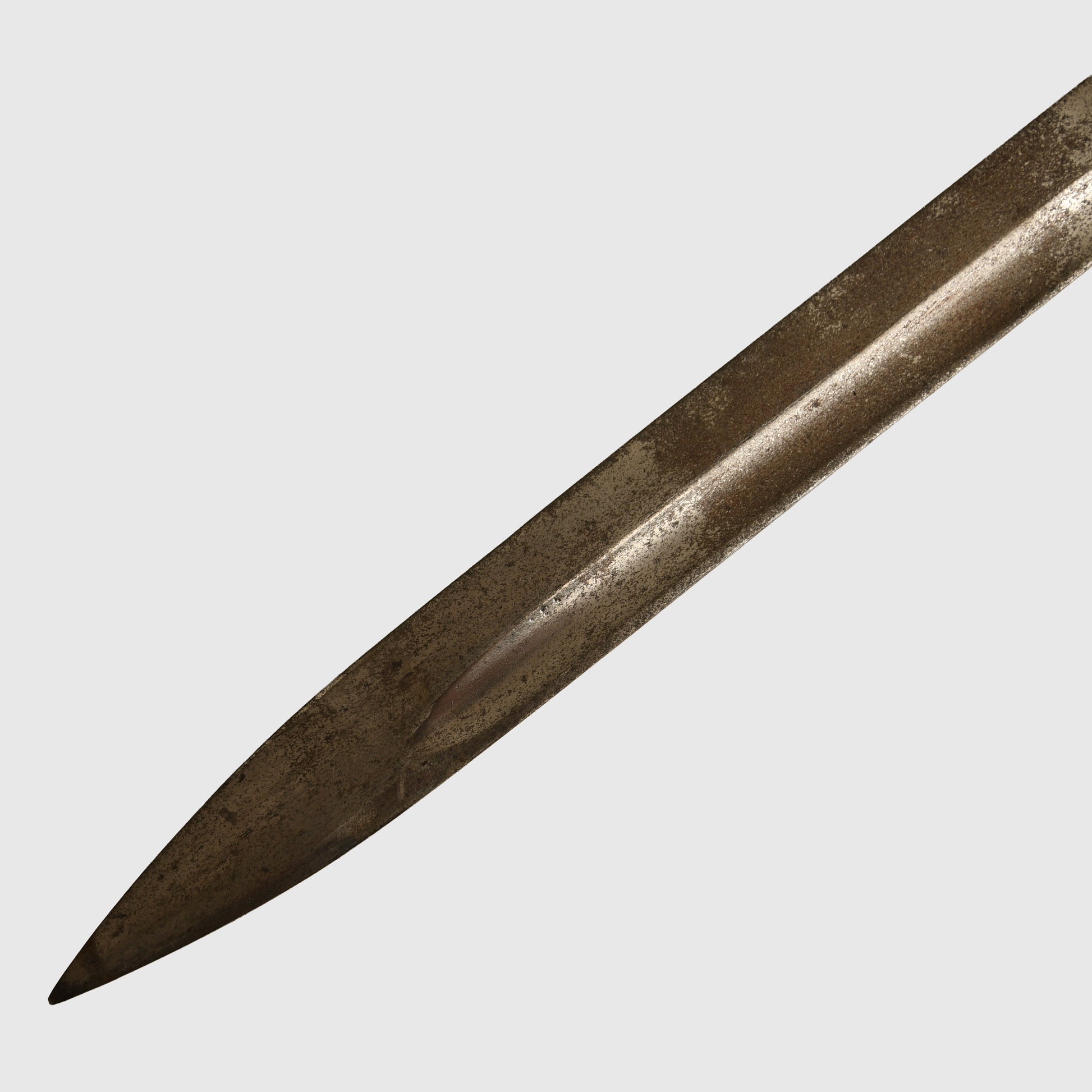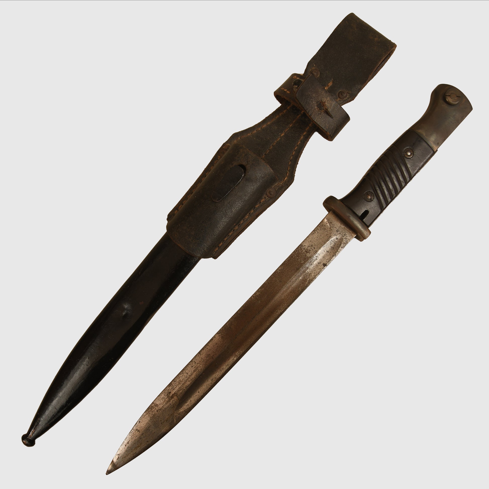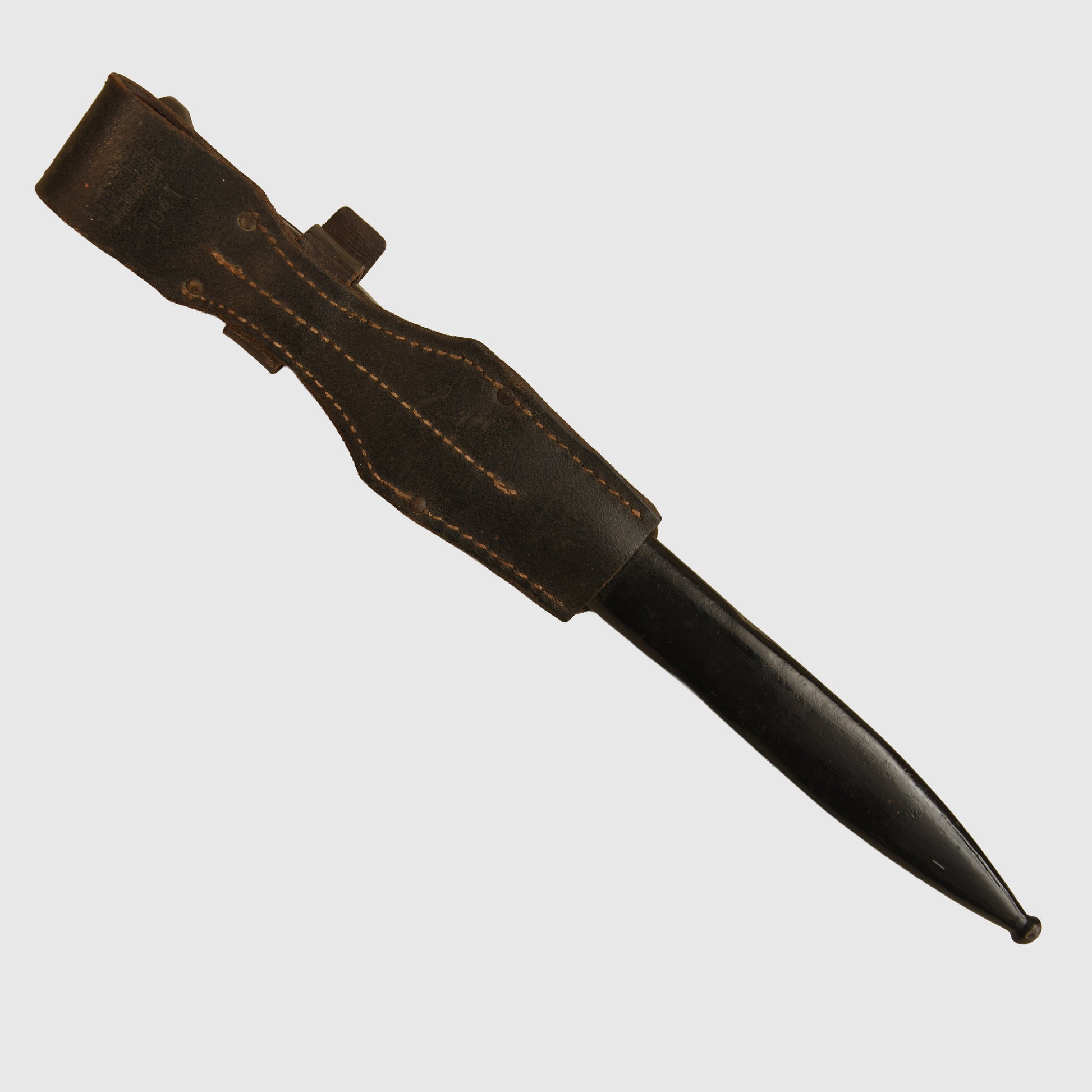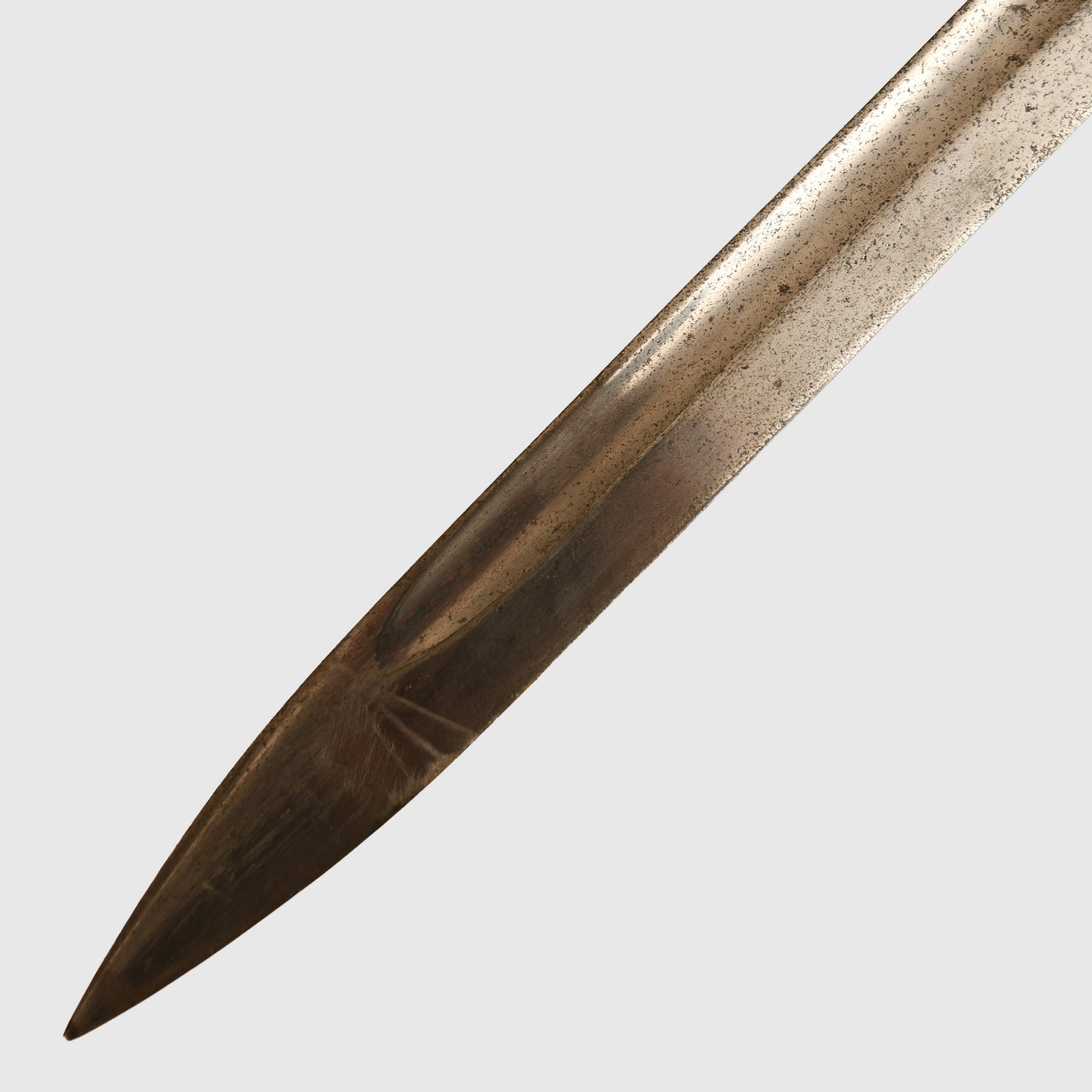 To the flat-backed upper edge is a Waffenamt stamp featuring a small eagle with short wings, correct for this police-associated pattern. Complete with its steel scabbard, which has been repainted, and retaining its original leather frog, maker marked and dated ‘1941’. A scarce and attractive variant associated with Postschutz and Bahnschutz police use.
