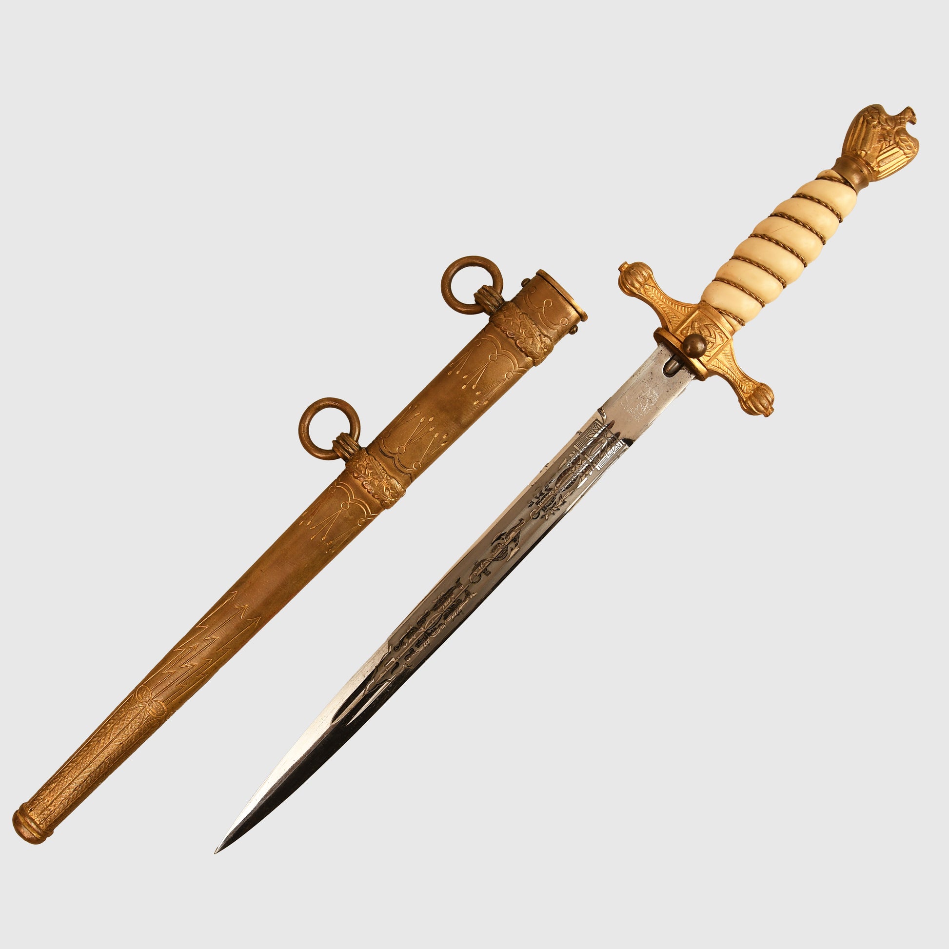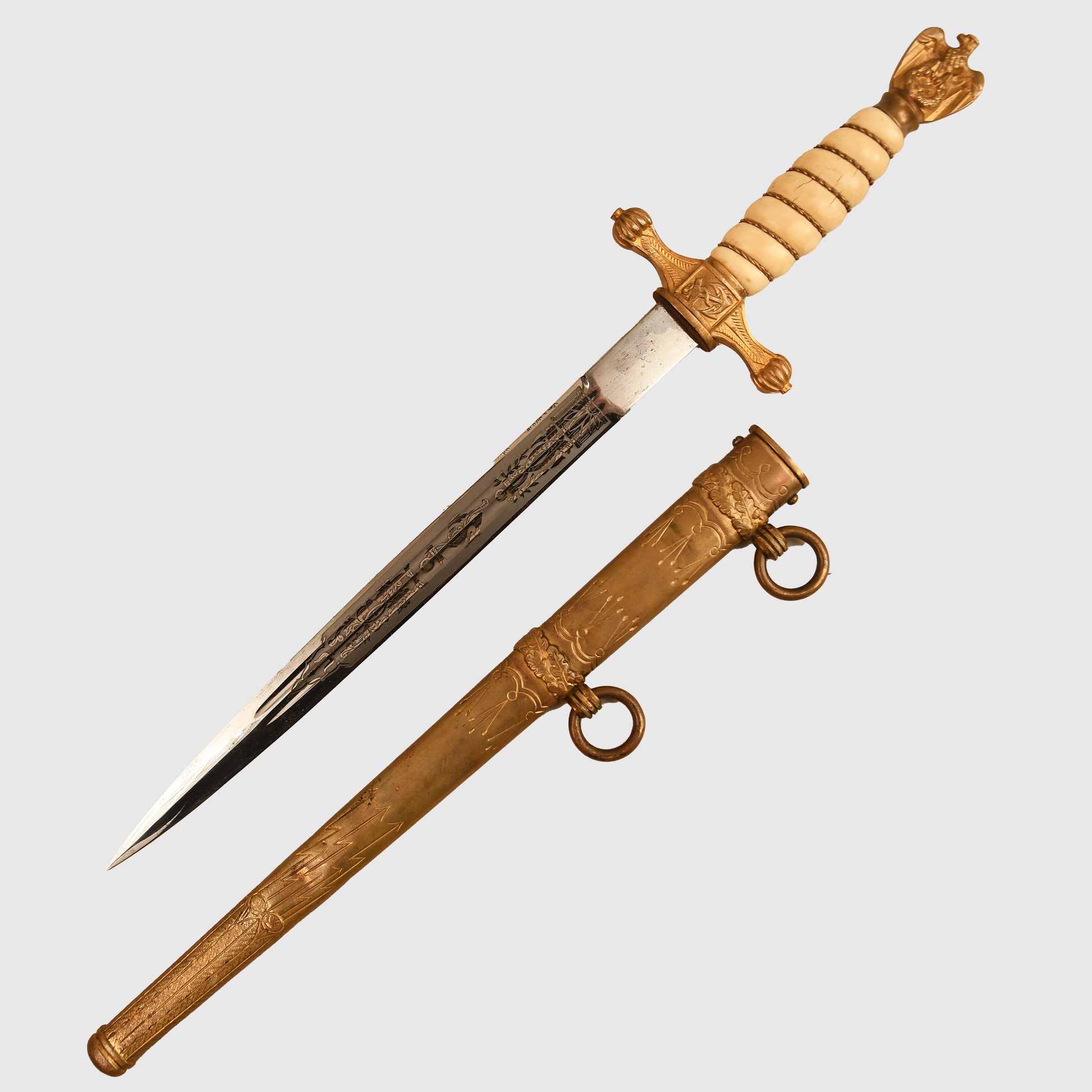 From a collection originally acquired in the Channel Islands of Great Britain during the 1970s, this is a very nice Kriegsmarine officers display piece by Eickhorn. The central panel features all the classic naval etching on the double fullered surface, remaining sharp and clear.