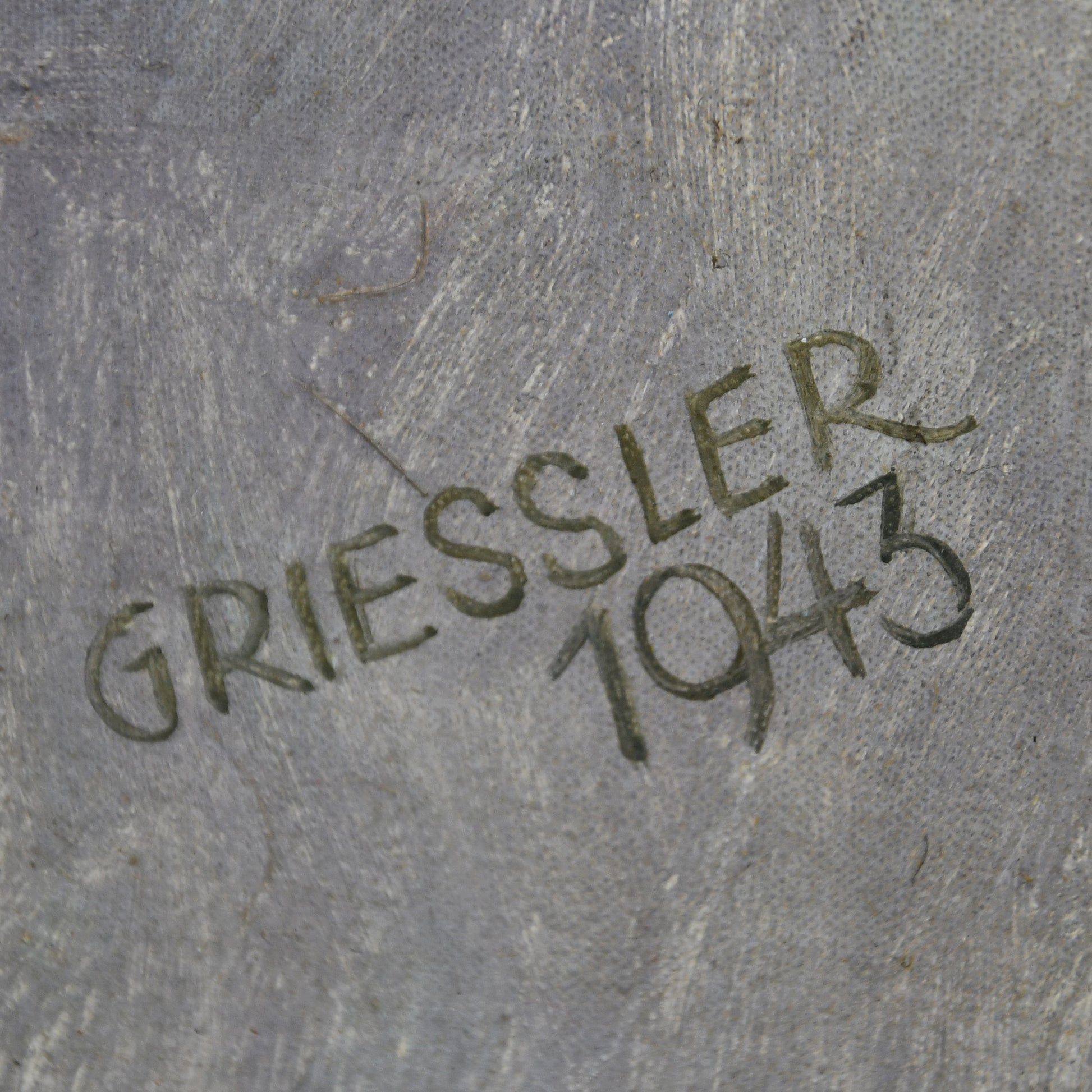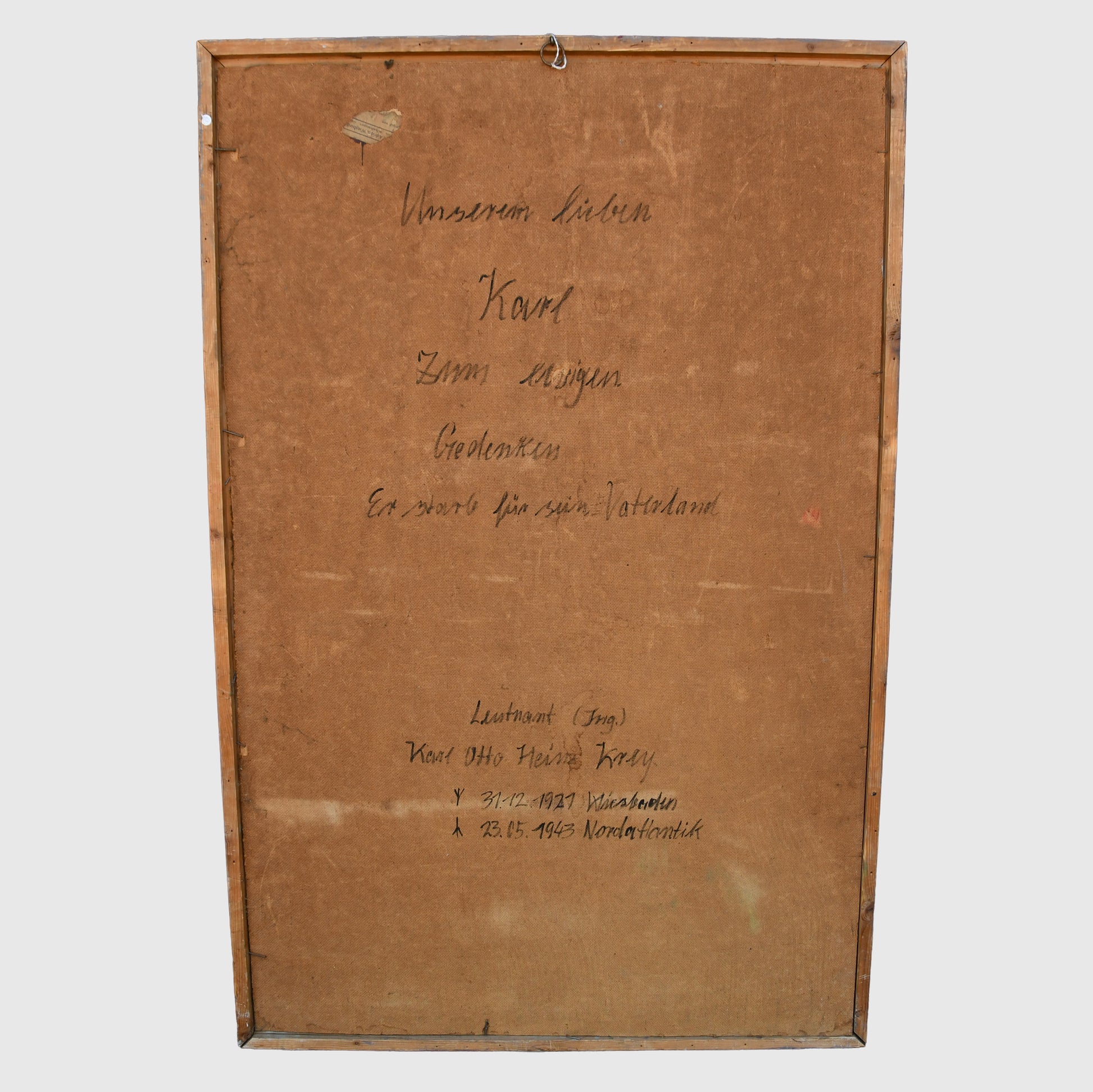 The painting, signed and dated ‘Griessler 1943’, was executed as a memorial on the instruction of his family, who have retained it since WWII. Presented in a plain battleship grey period frame, this rare piece is an outstanding example of Kriegsmarine portraiture.
