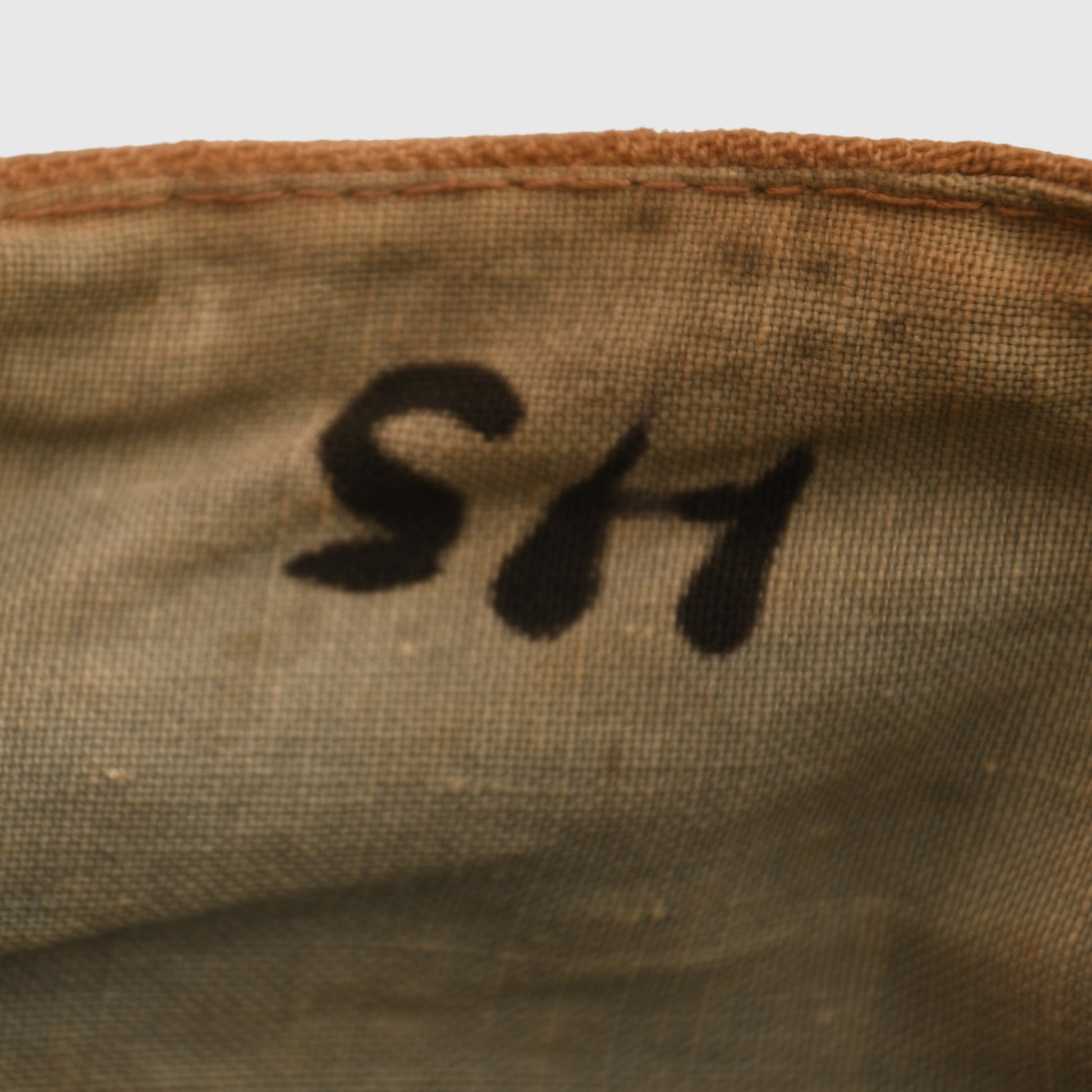 The interior light blue lining bears the hand-applied initials “HS” and the name “Schliewa” at the lower edge. Minor damage is present to the rear lining, and the exterior shows a few light nicks, but no significant staining or heavy wear. A genuine service-used Kriegsmarine tropical cap.