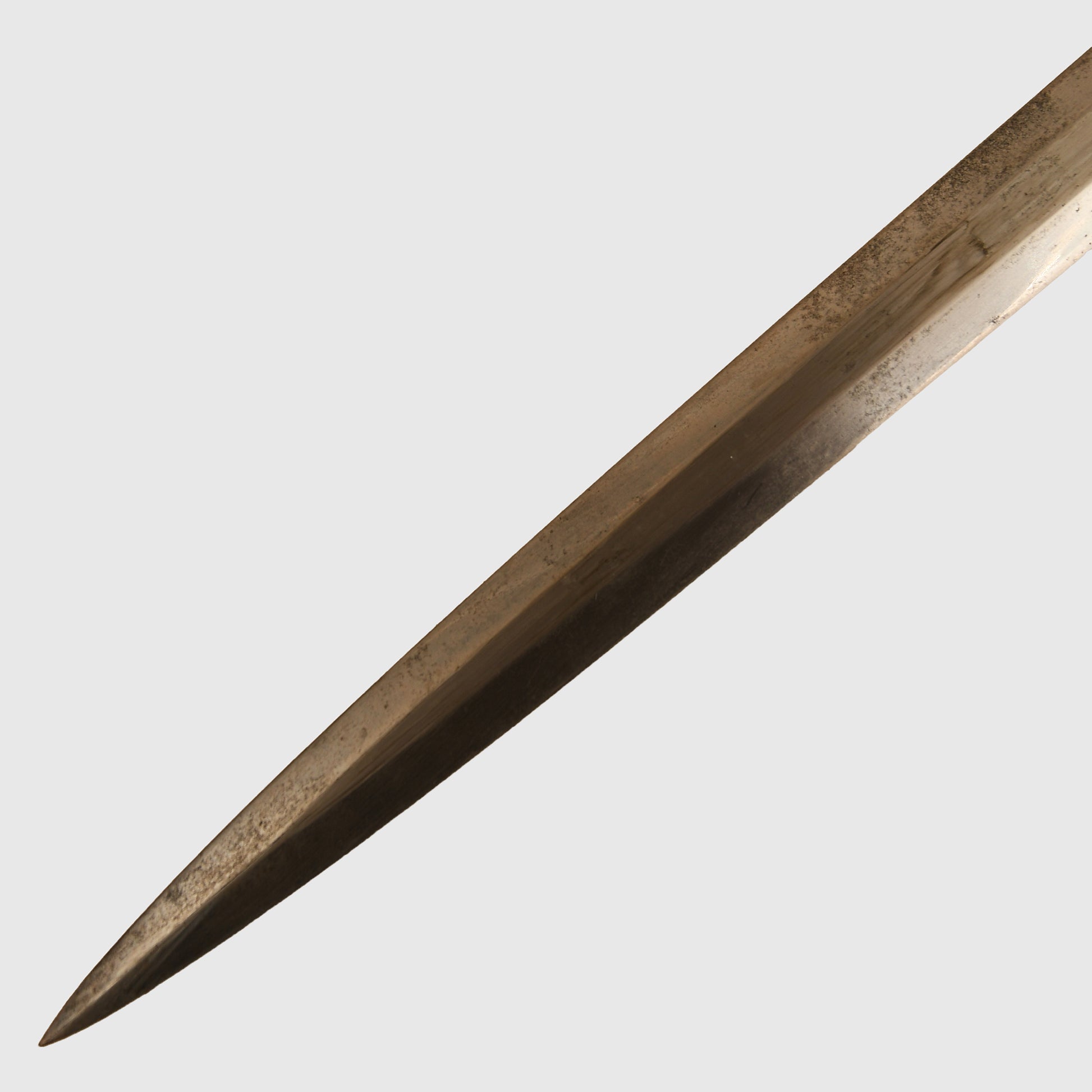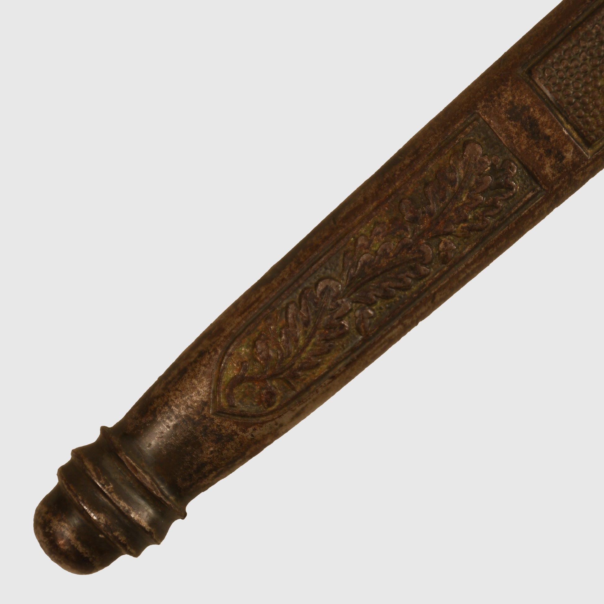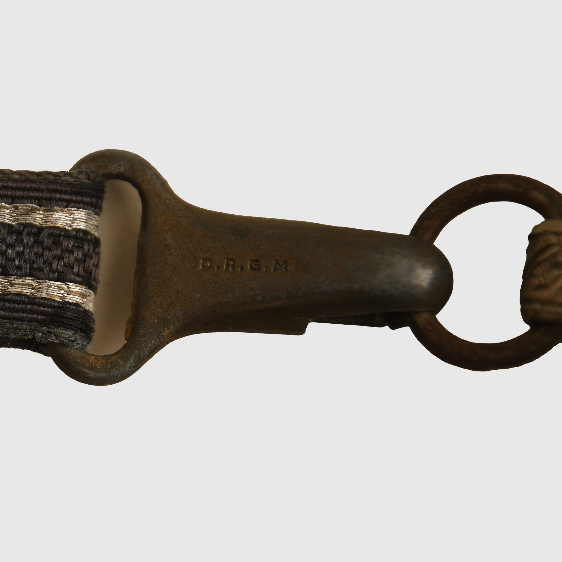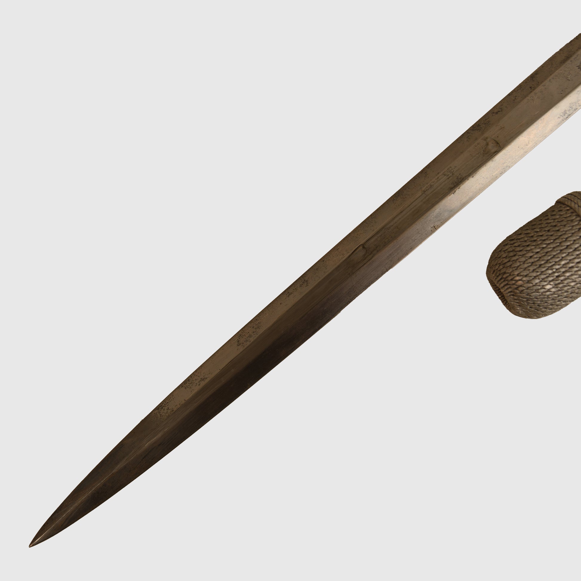 An excellent example of a Luftwaffe 2nd Pattern officers display piece by SMF. The main body features a well-preserved finish with matching grey tone to the upper pommel, cross guard, and scabbard rings. The scabbard’s body, made from a different material, retains a more steel-like finish. The deep orange grip shows two small chips but retains all grip wire intact. It includes a short pattern portapee knot and the late pattern unlined brocade straps, which show slight fraying. The blade is in good condition with clear SMF and Luftwaffe acceptance stamps, showing no abuse but with a slightly dulled finish.