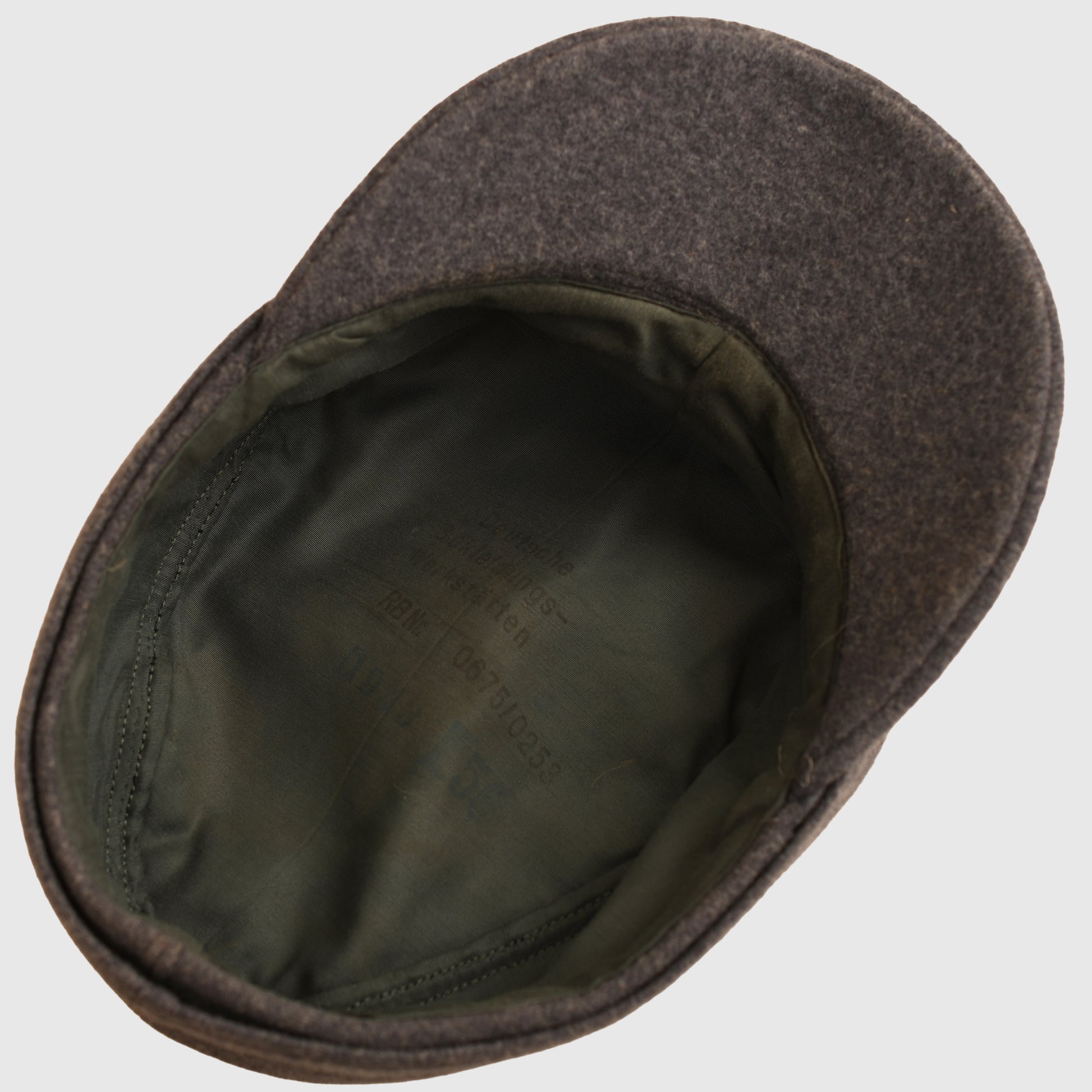 The interior is lined in blue-grey-brown cotton and is profusely stamped ‘Deutsche Sekleidungs-Werkstätten’ with an RB number, a faint date ‘1943’, and size marking ‘56’. Fitted with the standard short peak typical of the Bergmütze. A fine, well-preserved wartime example showing only light service use.