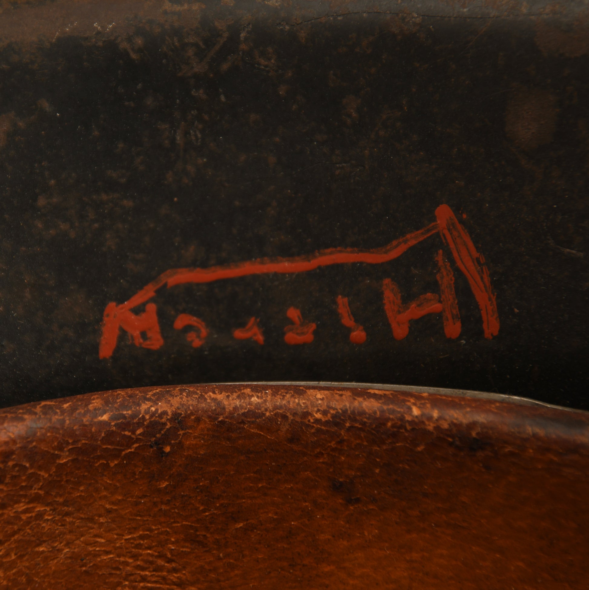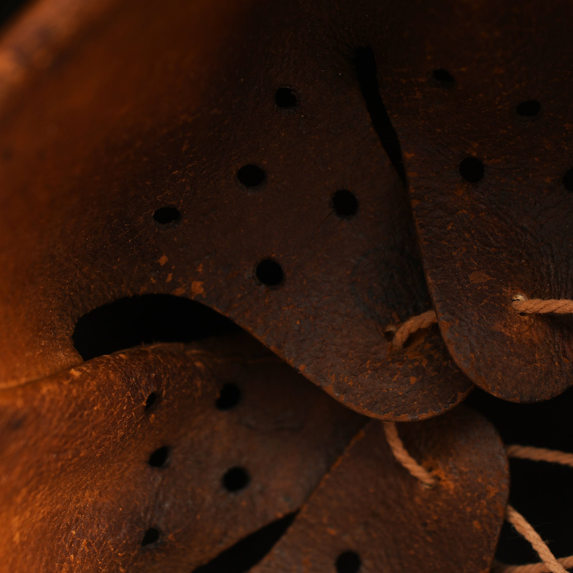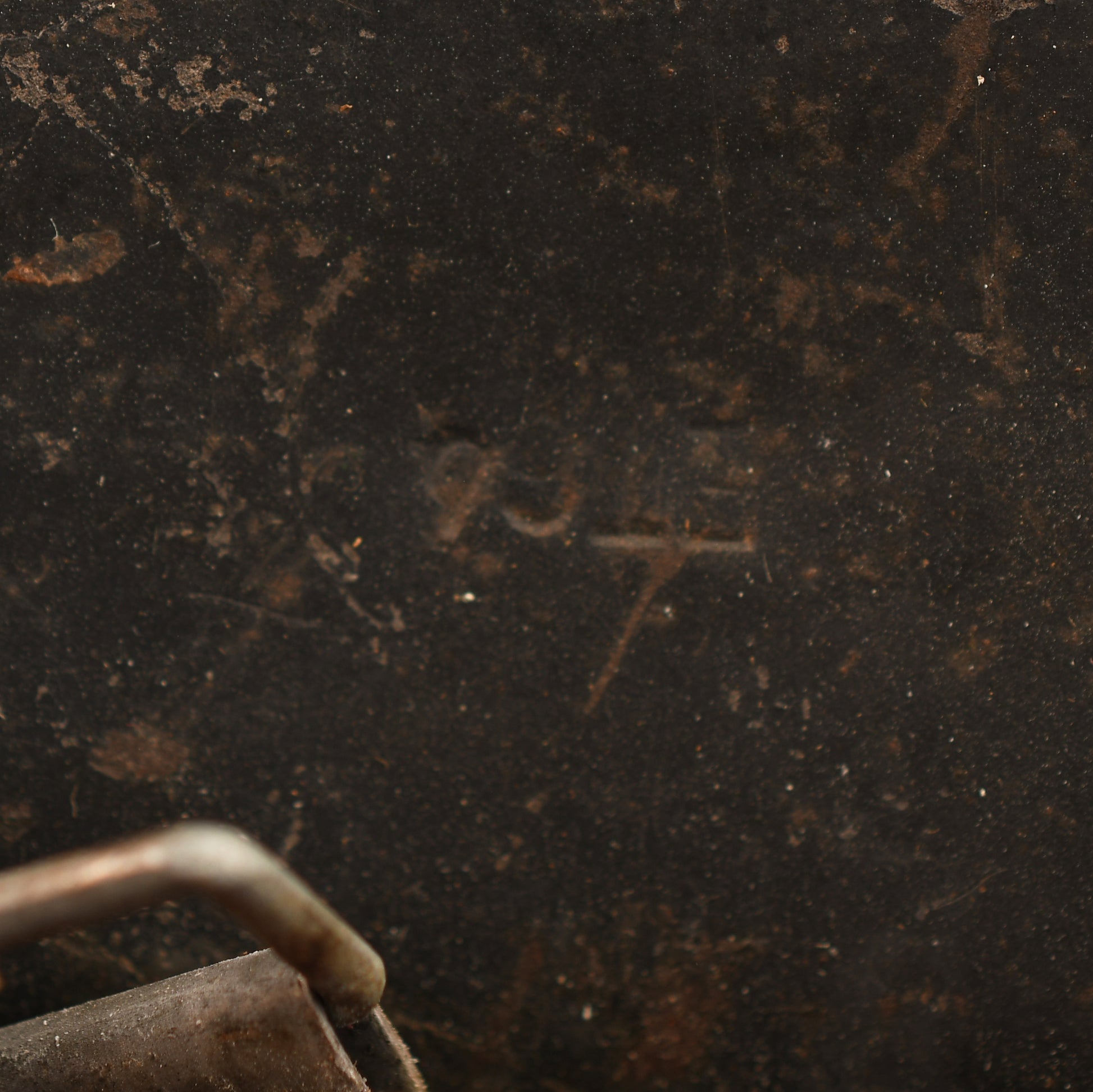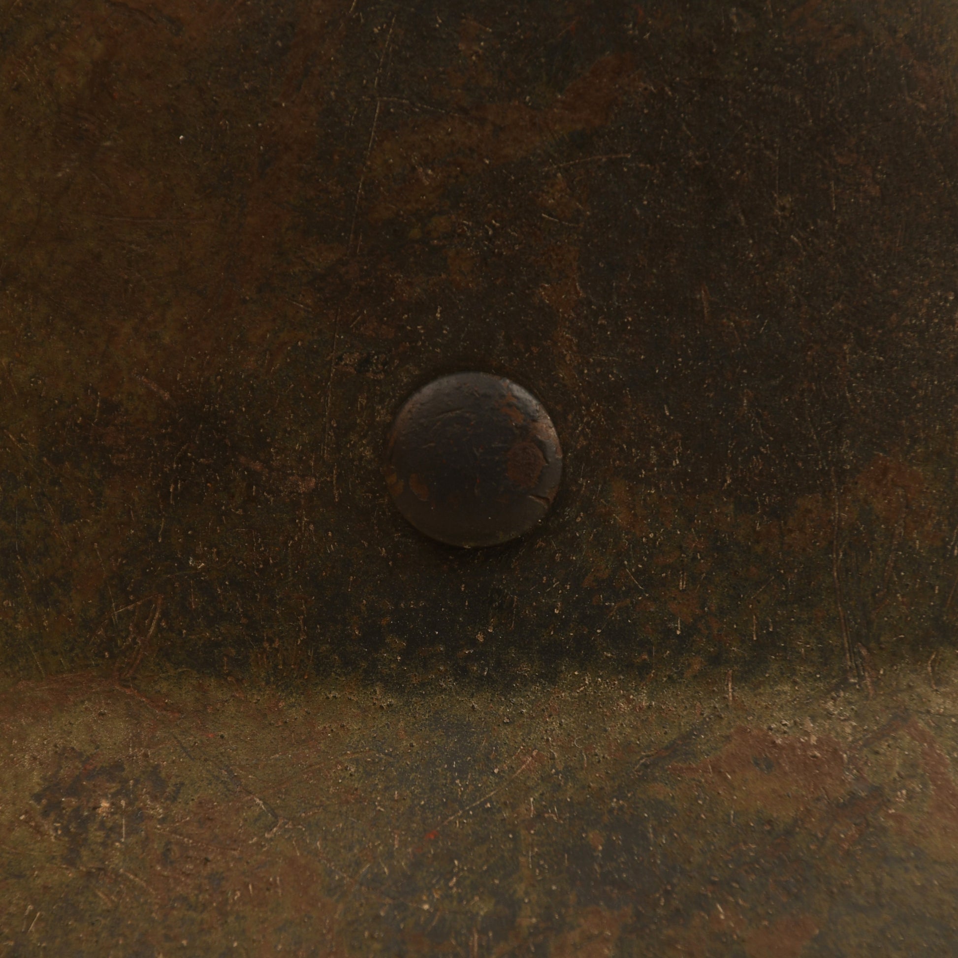 A semi-camouflaged large size Luftwaffe M42 helmet with single decal. The shell is stamped ET64, batch number 1610. The eagle decal shows some abrasions, and the camouflage paint is faint and subdued, consistent with the overall condition of the helmet. Fitted with an original undated, unmarked mid-to-late war chinstrap, likely a period addition. The interior lining is pigskin, 8-tongued and supple, with its original drawstring. The soldier’s name is painted in red on the inner skirt. A nice original helmet.