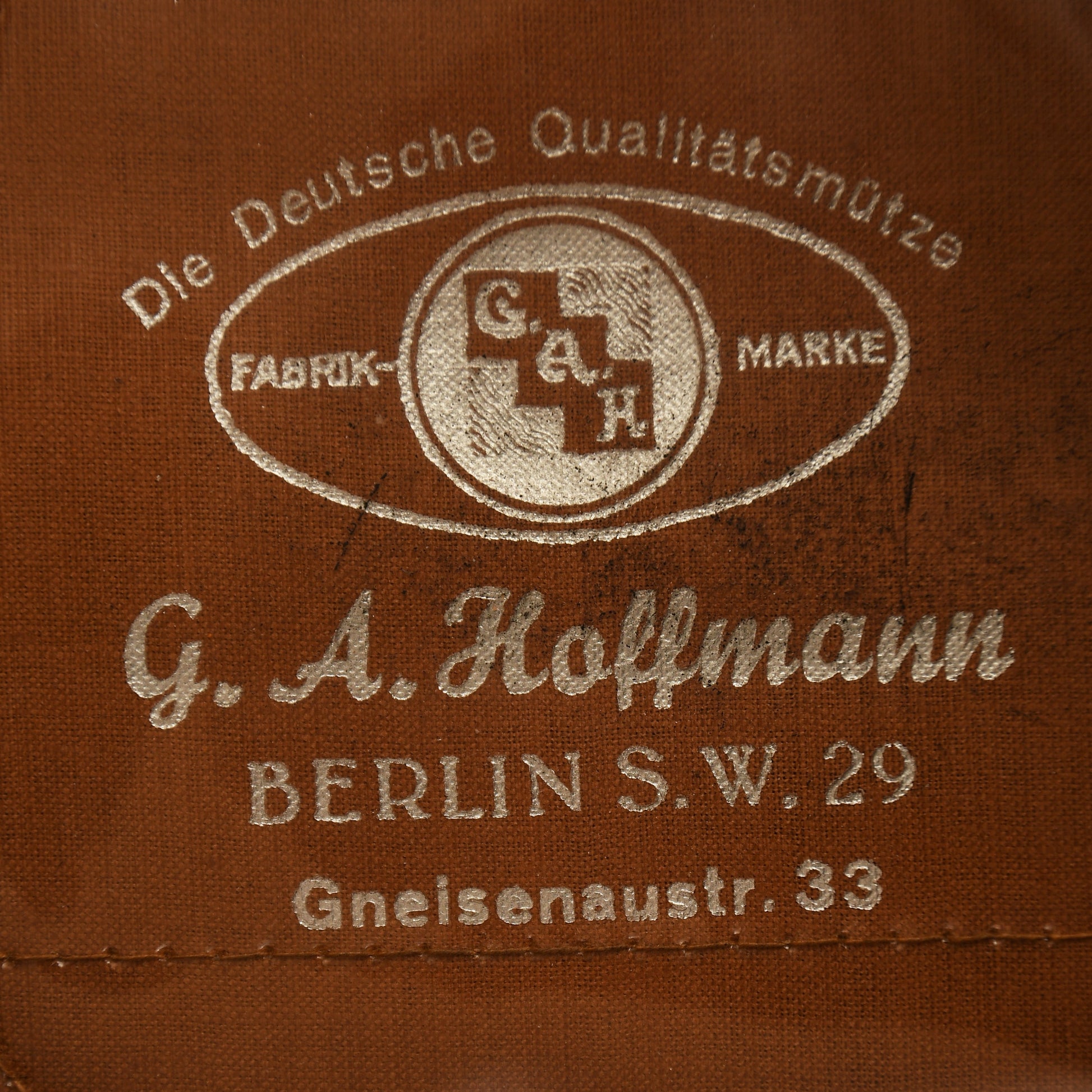 Below the lozenge, the silver-blocked maker’s mark of G.A. Hoffmann, Berlin is bright and fully legible. The orange forehead cushion behind the sweatband has solidified and broken away over time, with faint remnants still visible. A scarce and desirable example linked to one of the most recognizable units of the Luftwaffe.