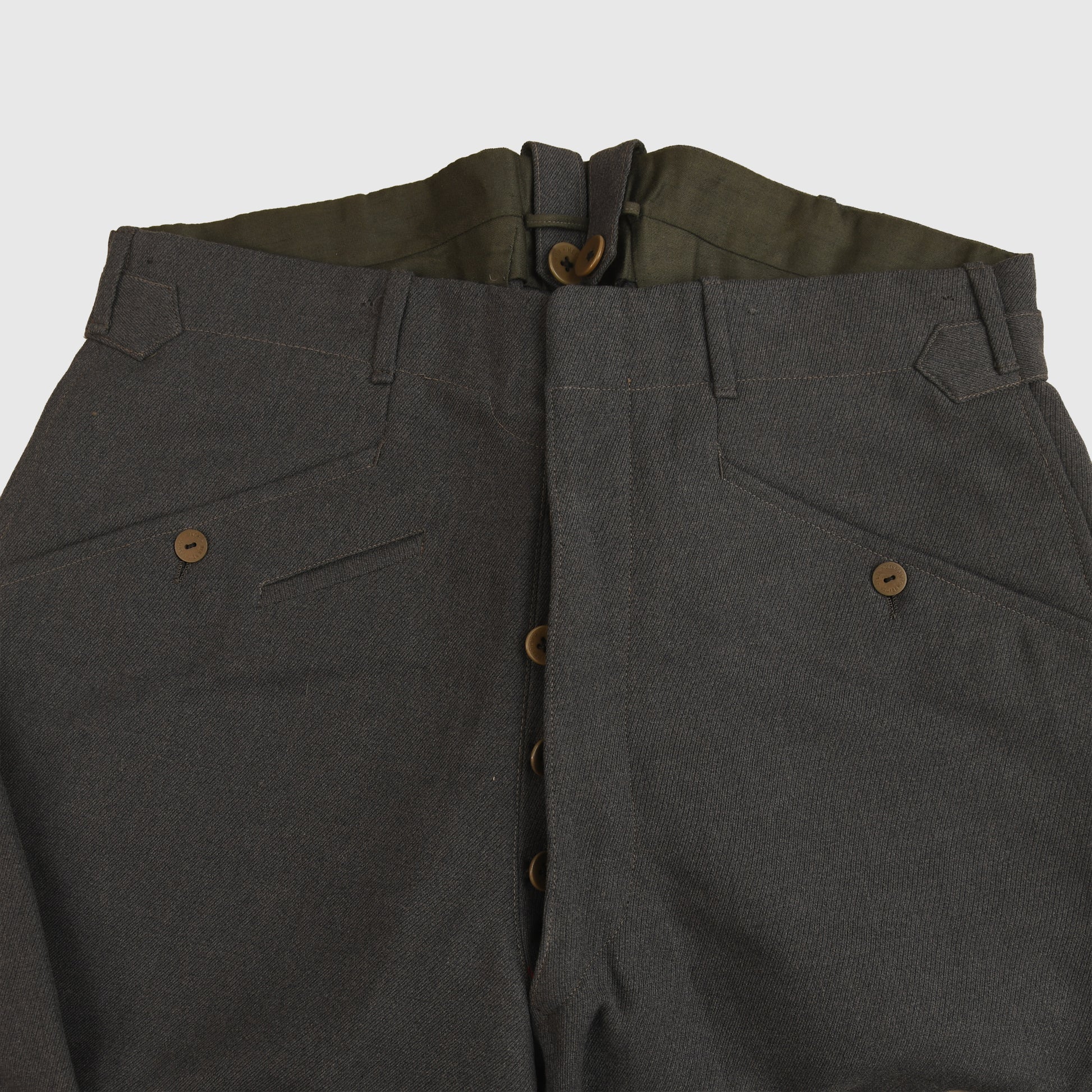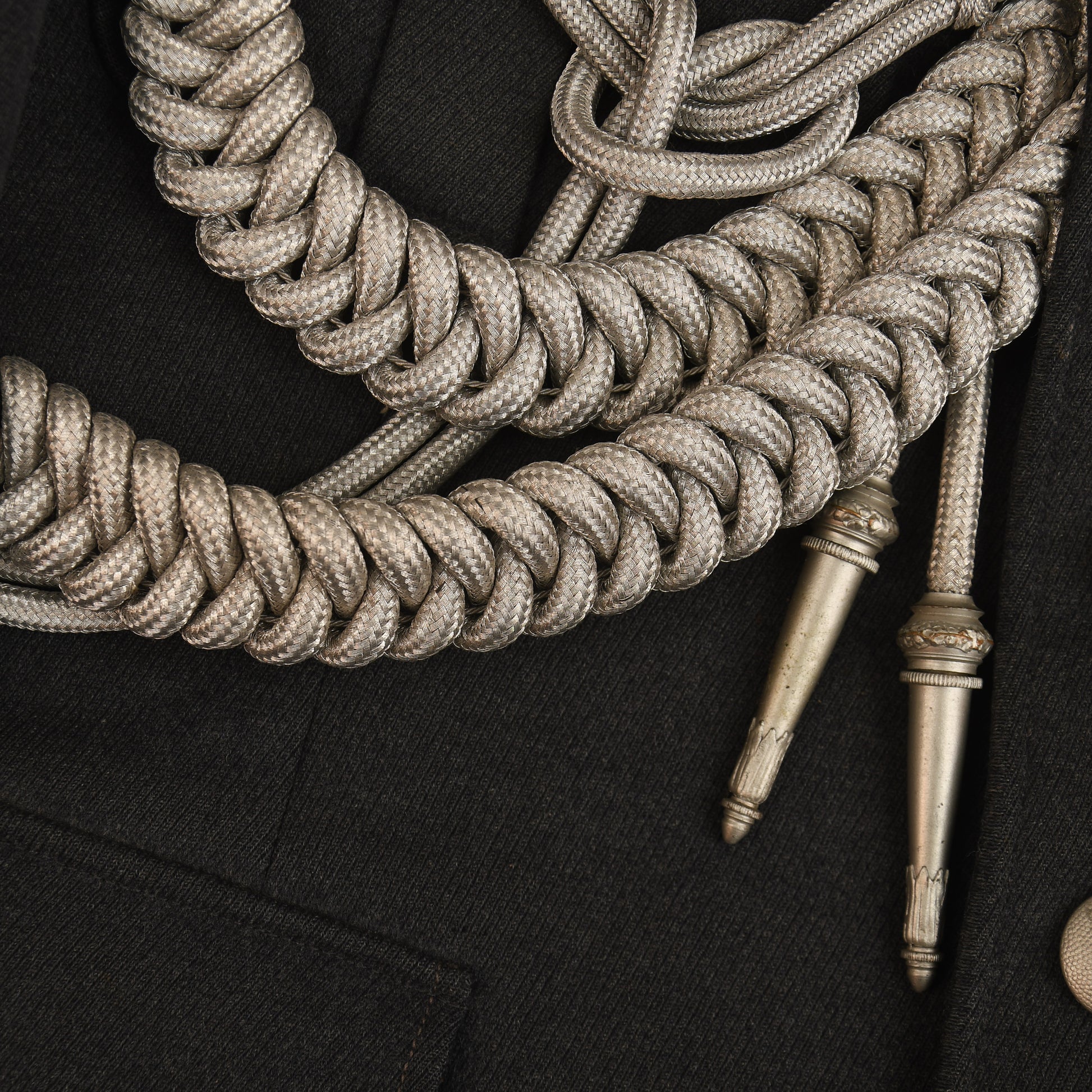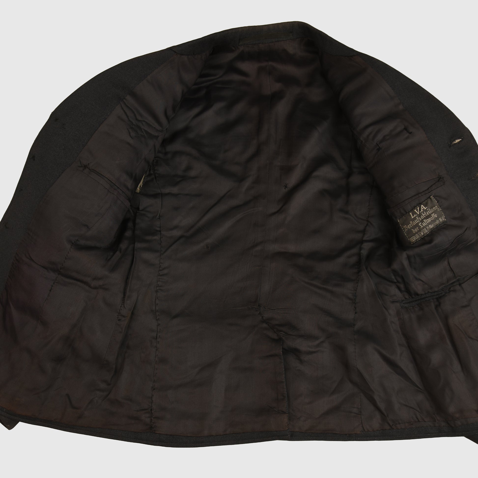 A very nice condition official Luftwaffe issue tunic to a flying leutnant, yellow based insignia. The tunic is absolutely free of any moth damage, stains or repairs. The Luftwaffe grey blue lining is complete with its original ‘LDA VERKAUFS ABTEILUNG DER LUFTWAFFE BERLIN 68’ label placed just below the inner pocket with an interior name label with the name of ‘JAFT HEIL’ dated ‘1941’. The tunic eagle is of the most magnificent quality, complete with a set of silver parade aiguillettes. The tunic comes complete with a slightly lighter shade of Luftwaffe blue grey breeches with a separate tailor’s label, and a separate owner’s name, the owner’s name of the breeches is ‘Leutnant Sickenberger’ dated ‘10th January 1940’. The Luftwaffe eagle has been stitched through the lining material of the tunic. Two loops to the tunic for a short medal ribbon bar. A beautiful quality set overall.