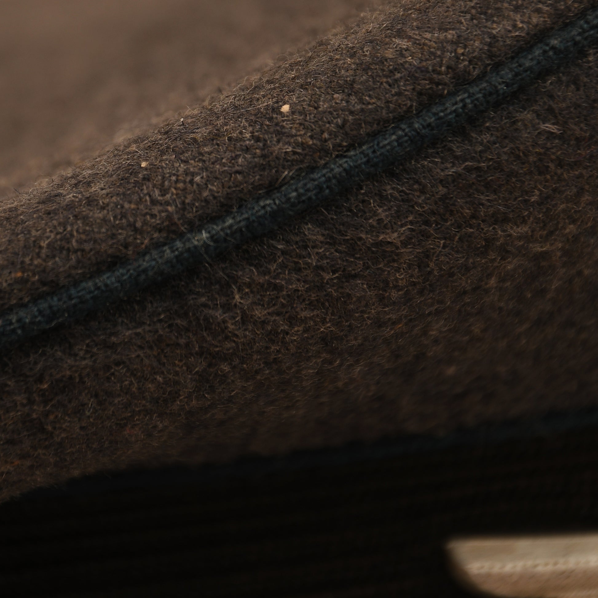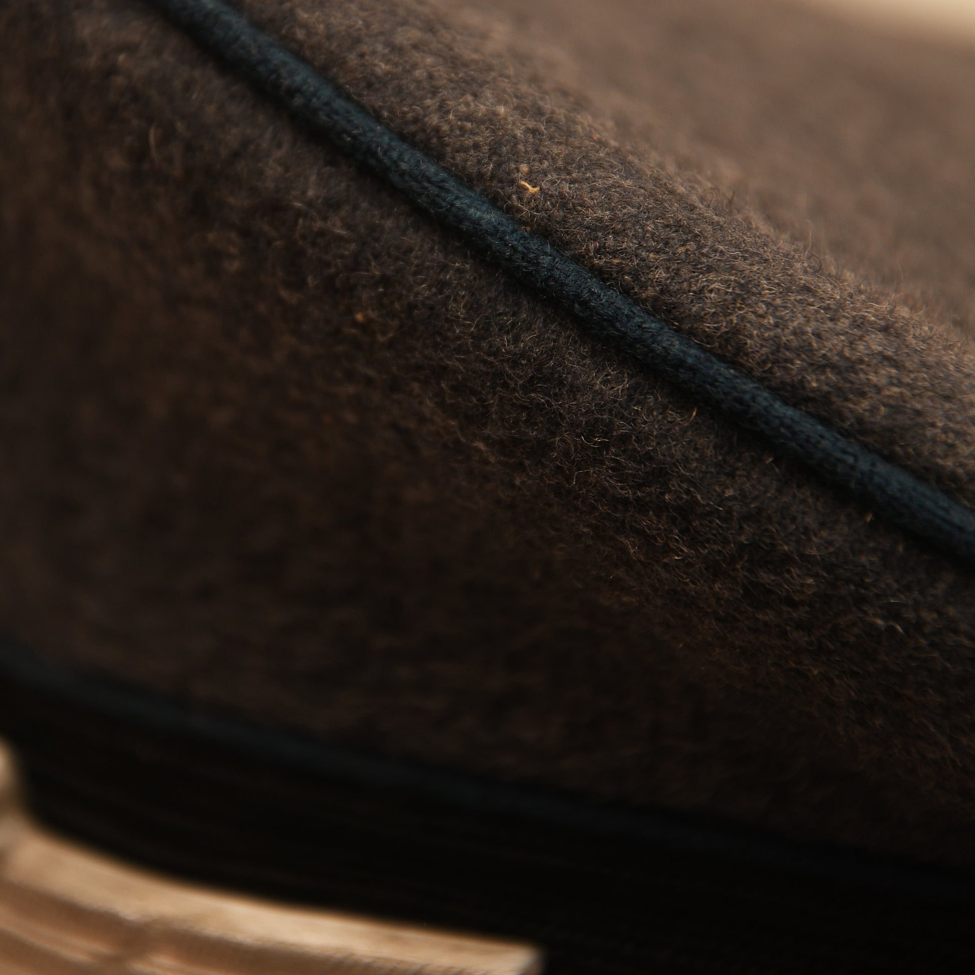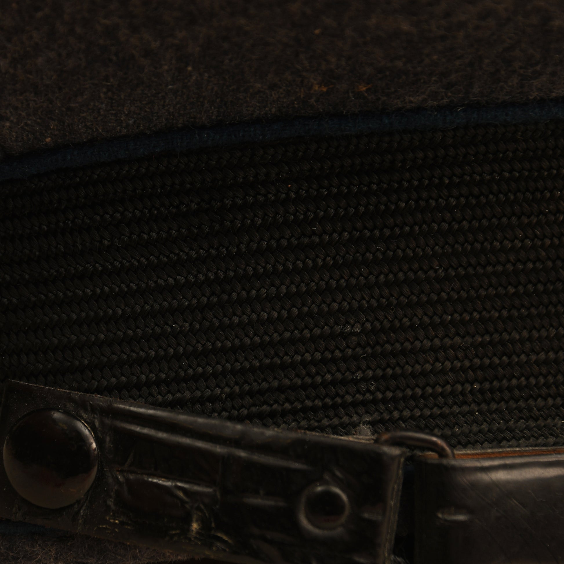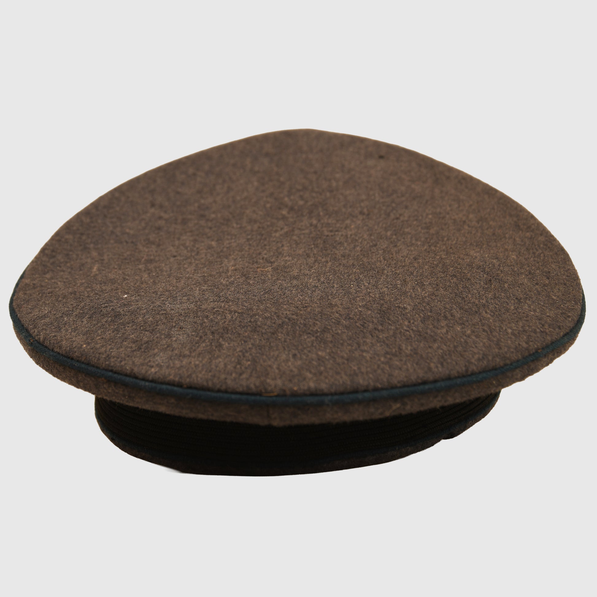 A fine example of a rare Luftwaffe medical section enlisted ranks or NCO’s visor cap. Constructed in Luftwaffe blue-grey enlisted issue cloth, showing only two small moth nips—one to the crown and another to the lower edge. Blue piping is featured on the crown as well as on the upper and lower sections of the mohair centre band. Fitted with a matched set of the early droop-tailed eagle and standard cockade, with a double buckle chinstrap and the double-edged front visor style typical of Luftwaffe caps. The interior has a light tan ersatz sweatband, green satin crown and side lining, and a complete unbroken celluloid lozenge bearing the Pekuro maker’s logo. Estimated size 55.
