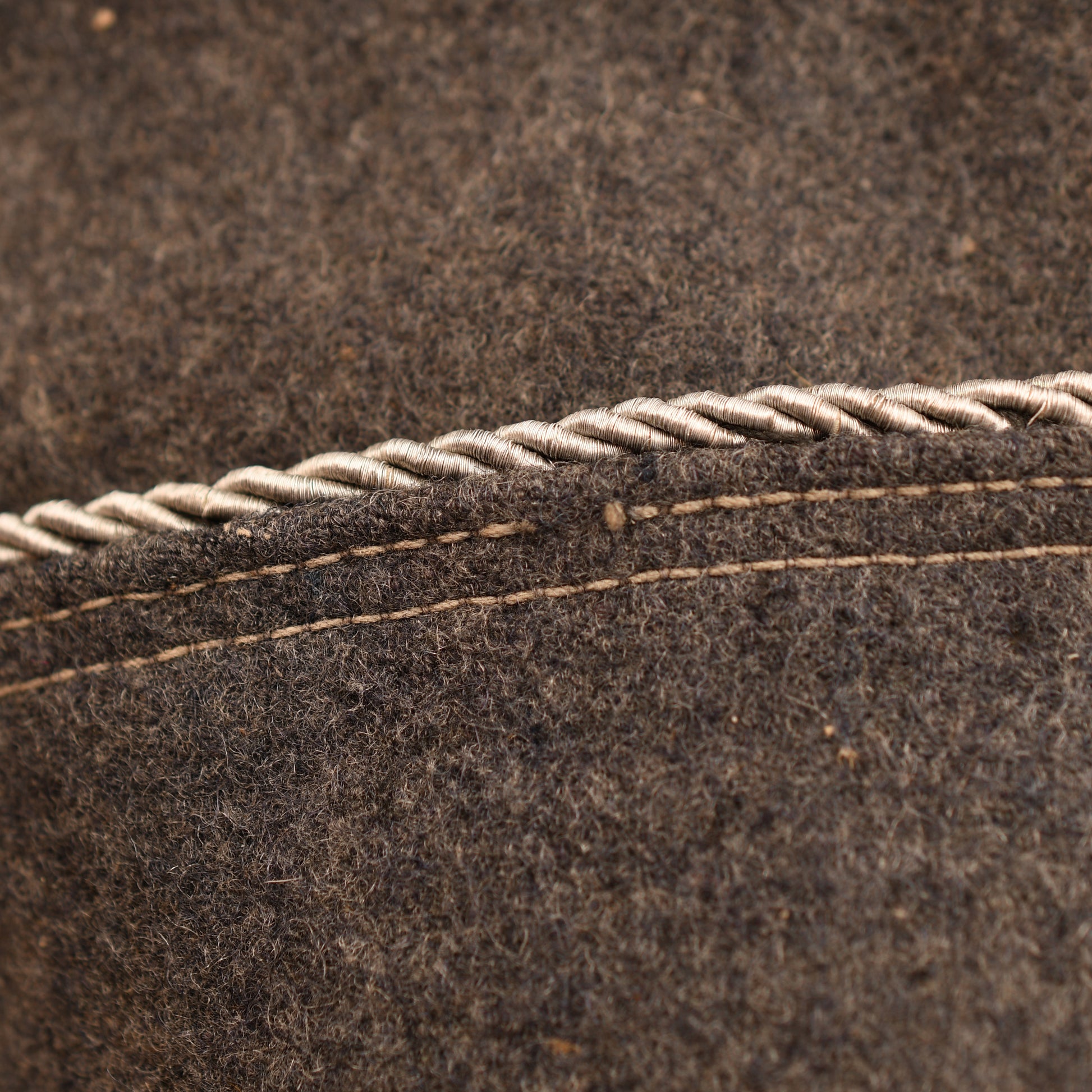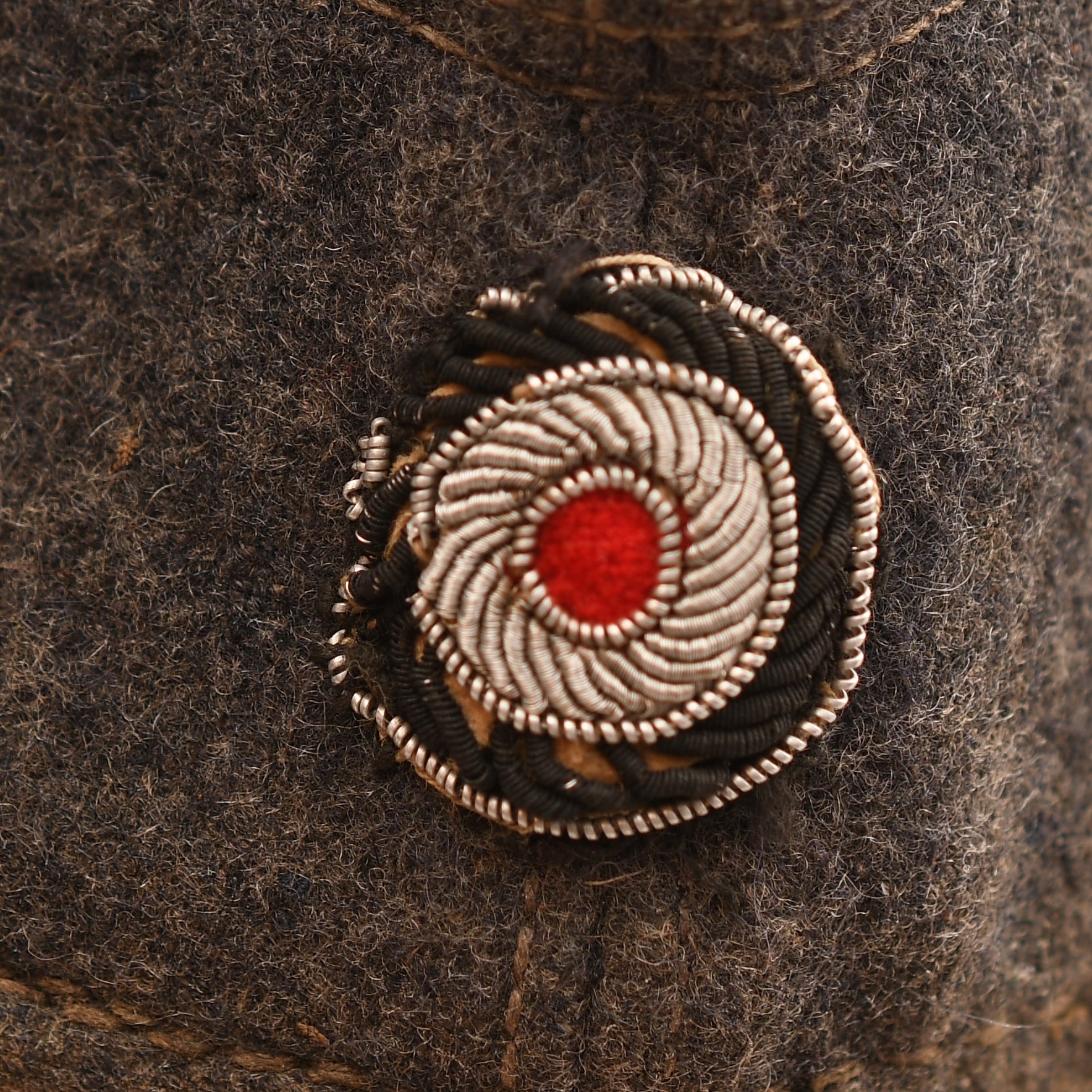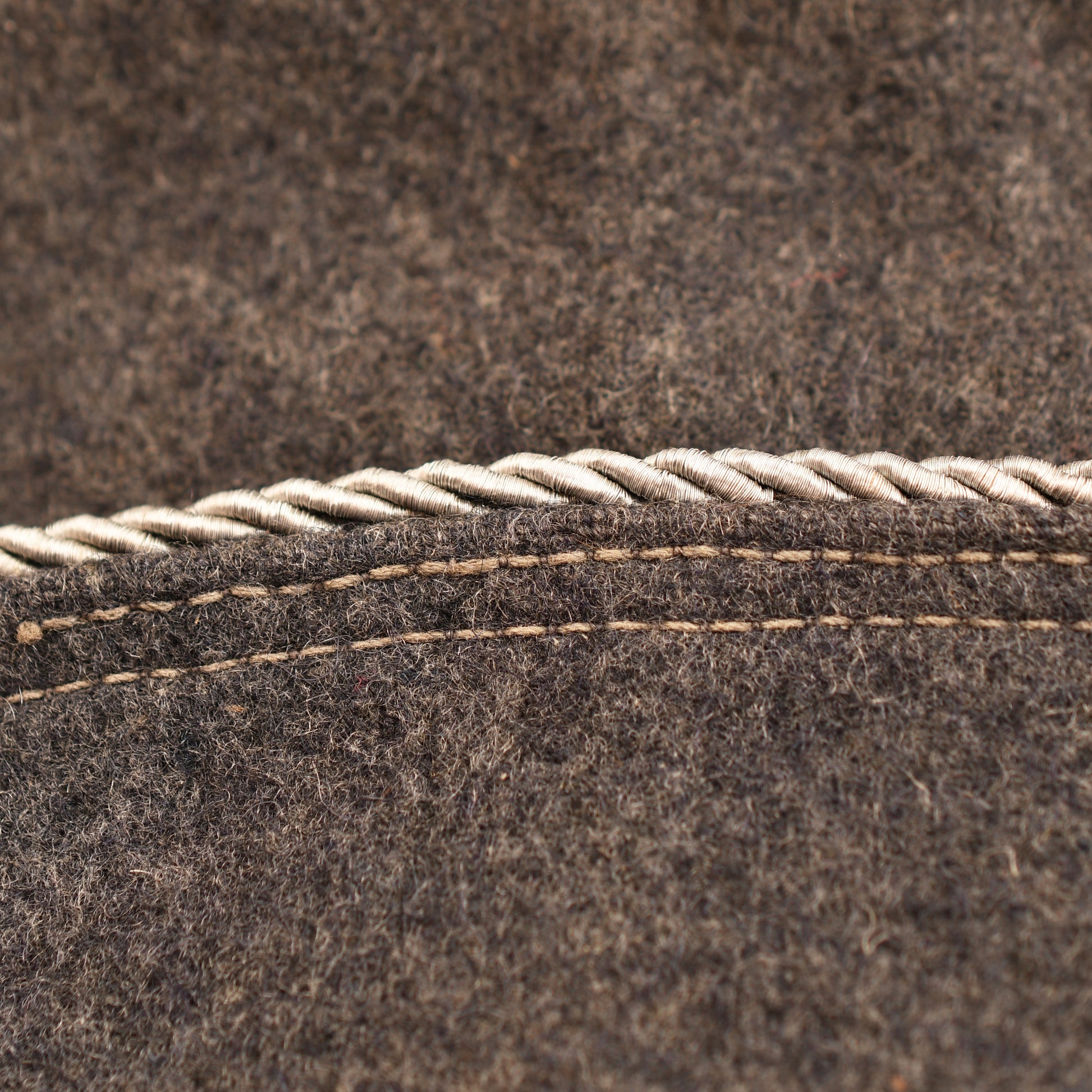 A large size example, likely size 59, crafted in the standard enlisted ranks material. The nap remains good, with only minor moth tracking to the left front side curtain, no actual holes present. Features the rare officers wire-woven eagle and matching national cockade, with slight thread losses to the black portion of the cockade. Officers silver twisted cord edging remains intact along the side curtains. The interior retains its standard blue-grey enlisted-style lining, with faint traces of the manufacturer’s stamp. The top envelope has been sewn closed, a common period practice on Third Reich overseas caps. Despite some wear from use, the cap remains clean, displayable, and in excellent overall condition.