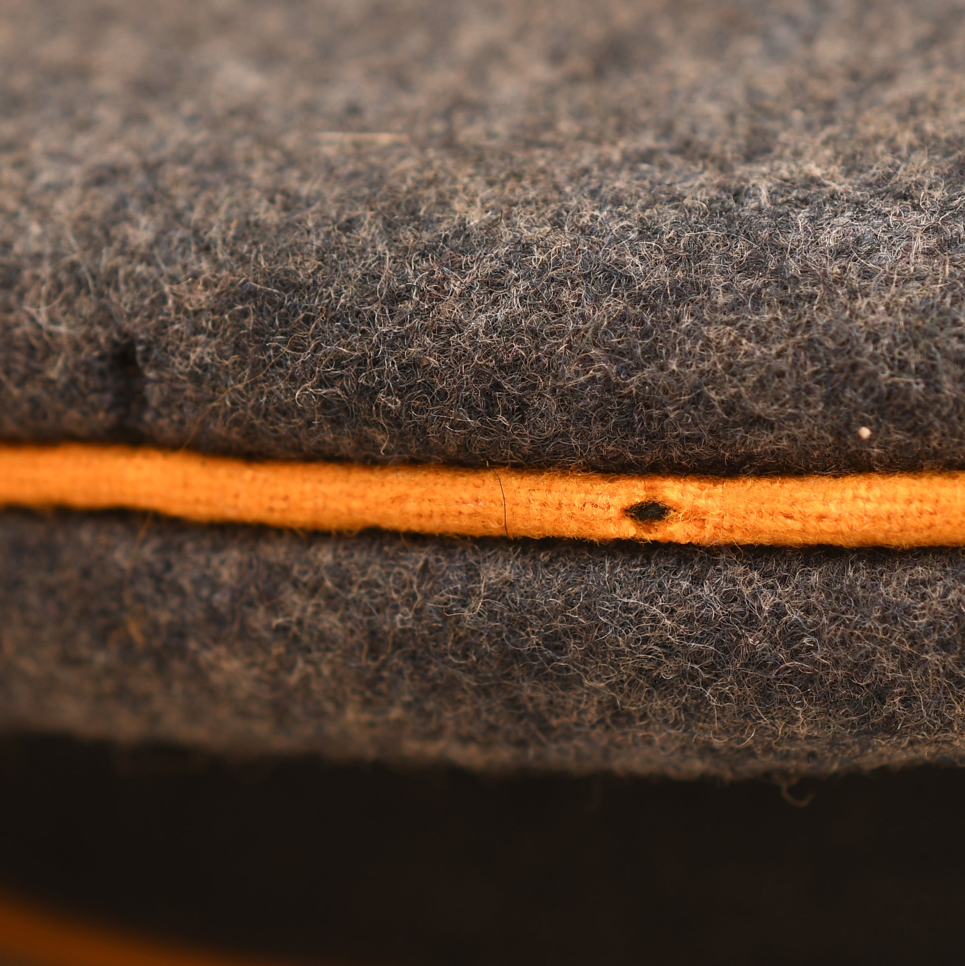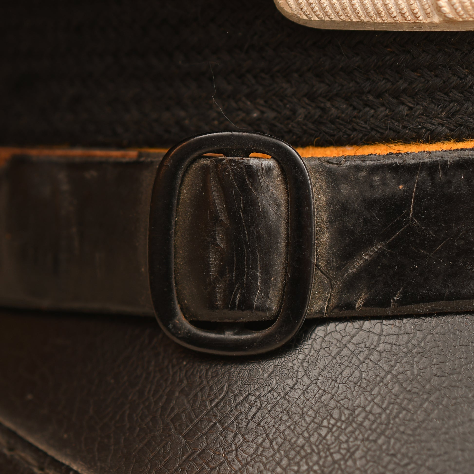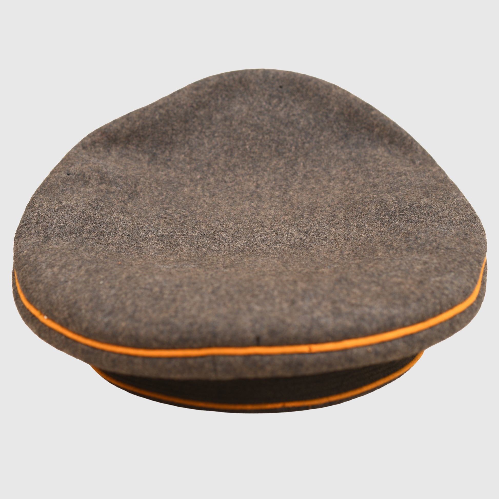 This is a very clean and historically significant visor cap for a non-commissioned officer or enlisted man serving with the Luftwaffe. The cap is size 57 1/2 and is constructed from issue-quality wool. The nap of the cloth remains thick, with only a single moth nip noted on the rear overhang.
