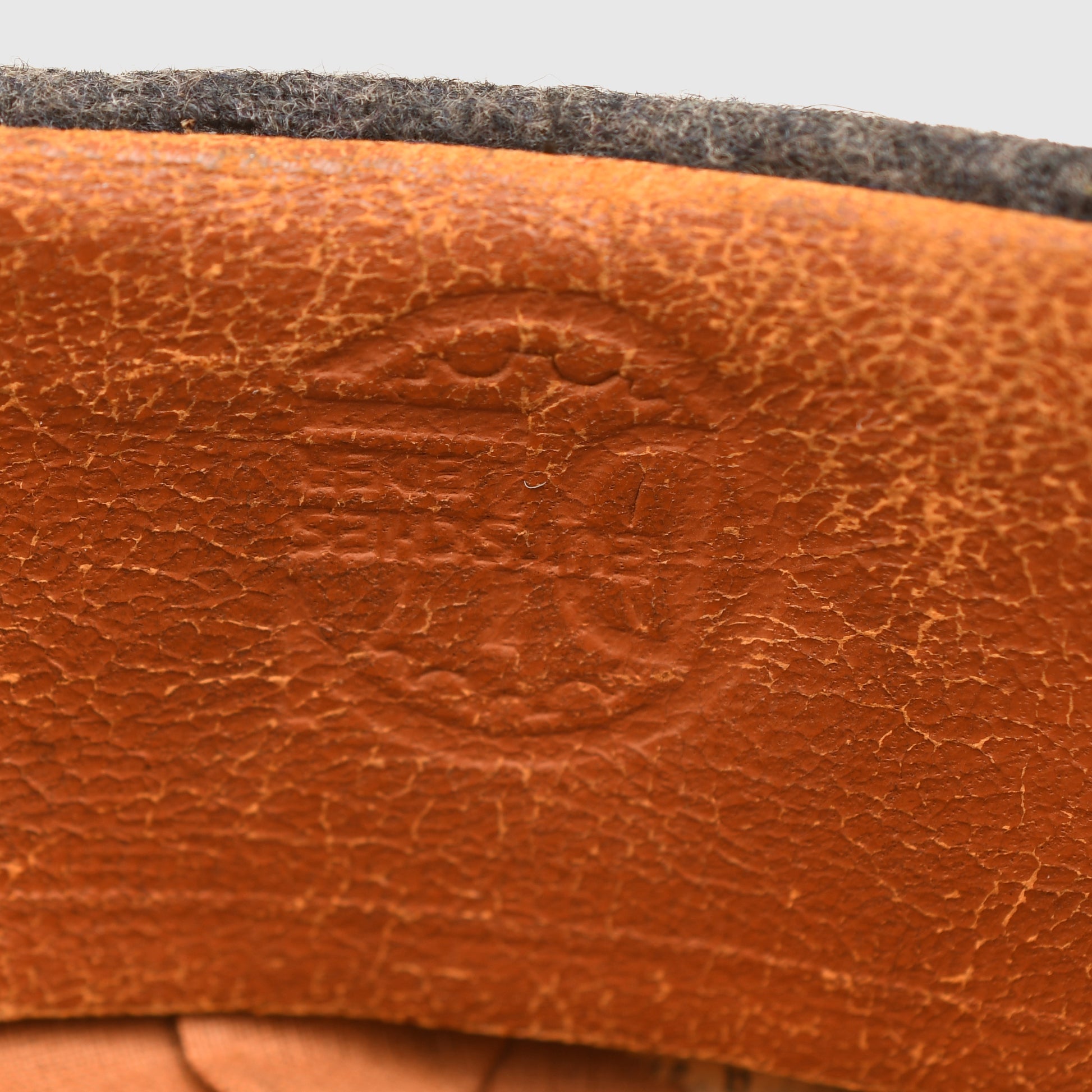 The interior is particularly noteworthy for its unit markings. Stamped into the leather sweatband is the designation for the Luftwaffe parachute training school at Stendal (Fallschirmschule Stendal), which was the primary training facility for German paratroopers. The sweatband also bears a German quality leather stamp. While the celluloid lozenge is missing, the internal markings remain reasonably clear, showing a Berlin-based maker, a 1937 date, and the size 57 1/2. This is a rare example of a unit-marked cap from the foundational era of the German paratrooper forces.