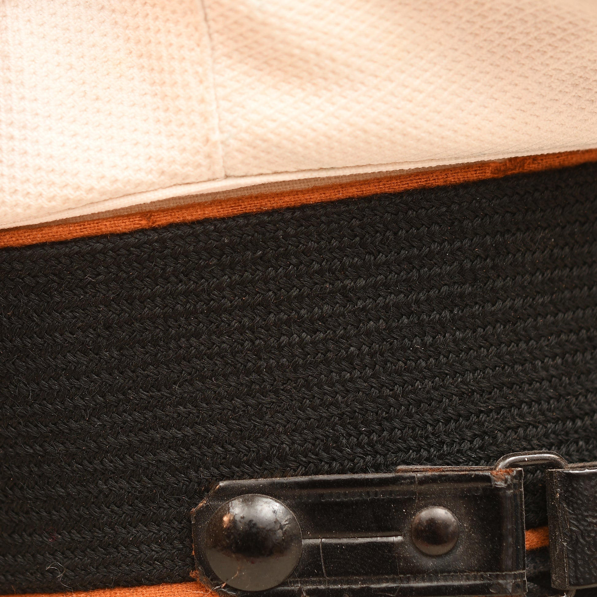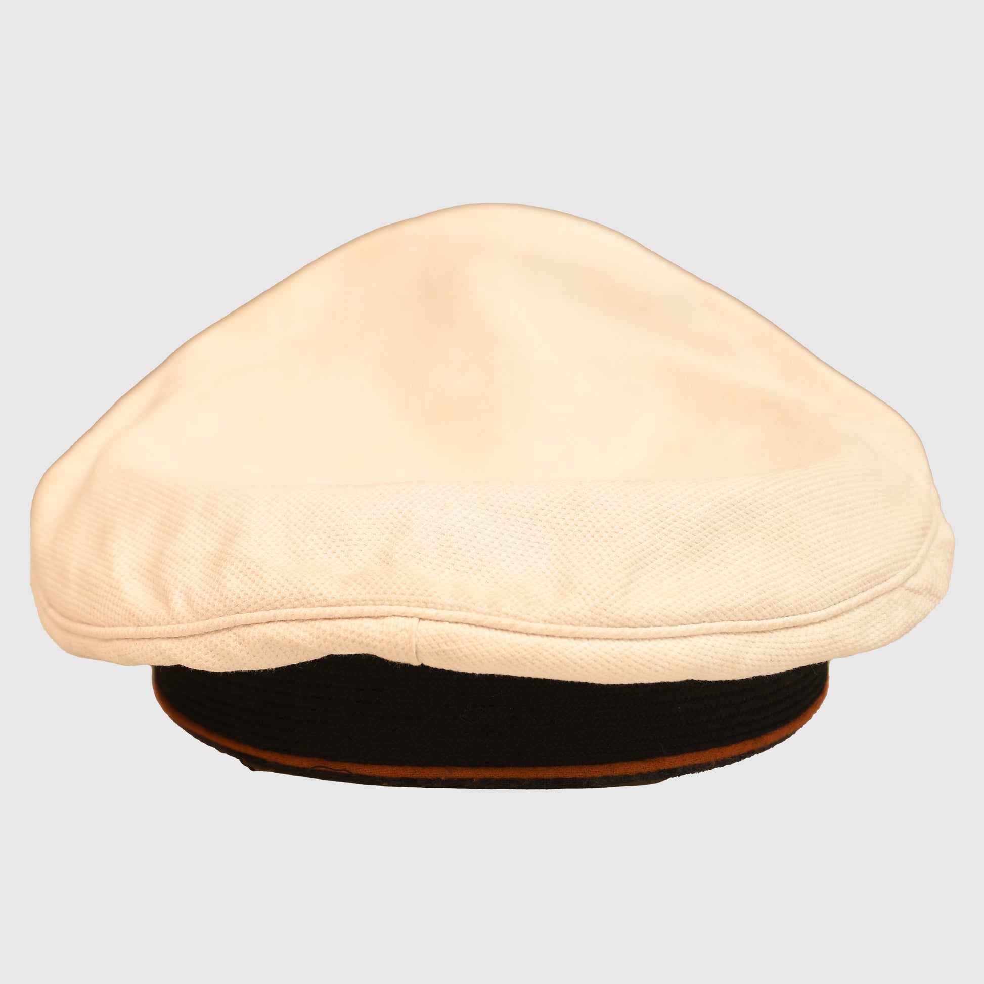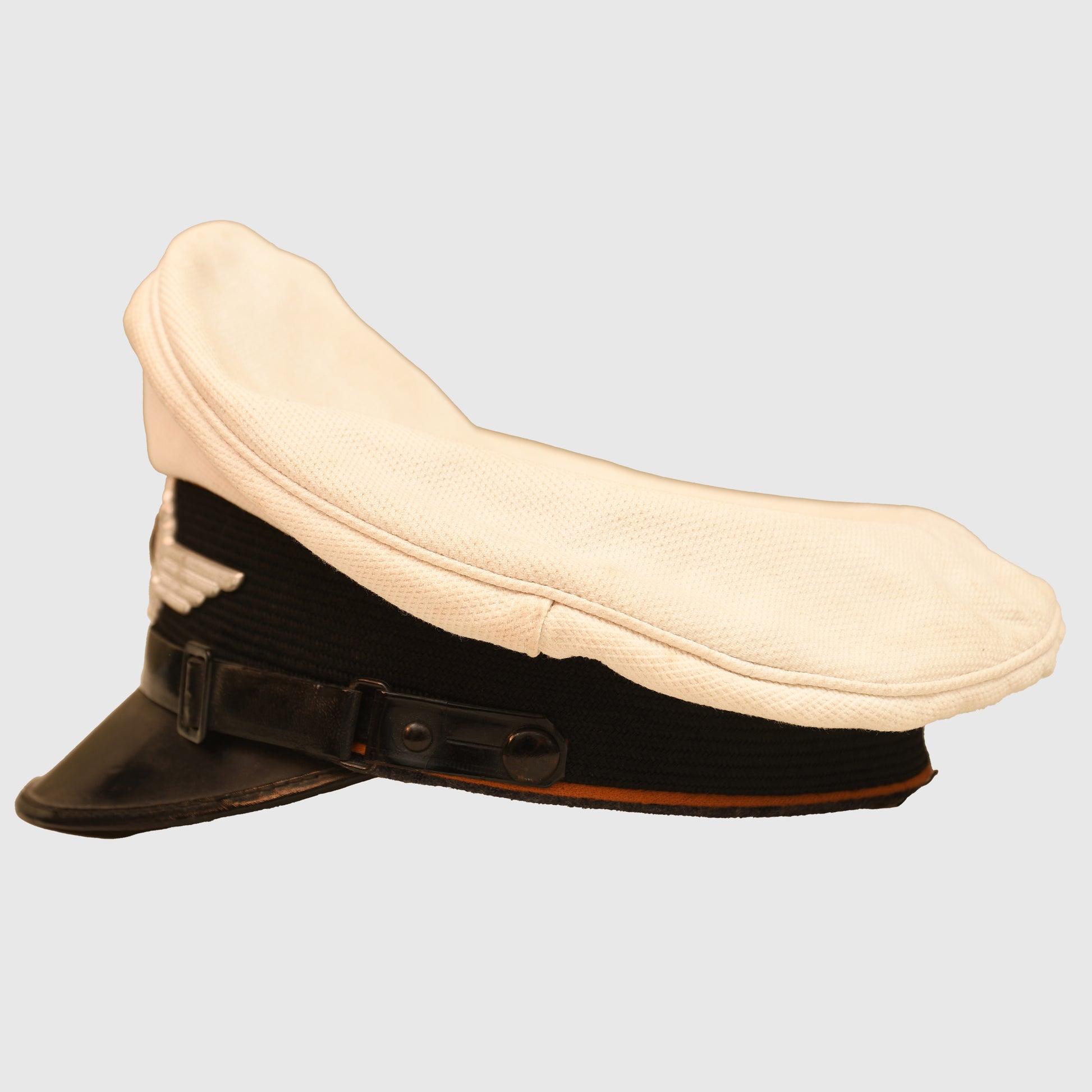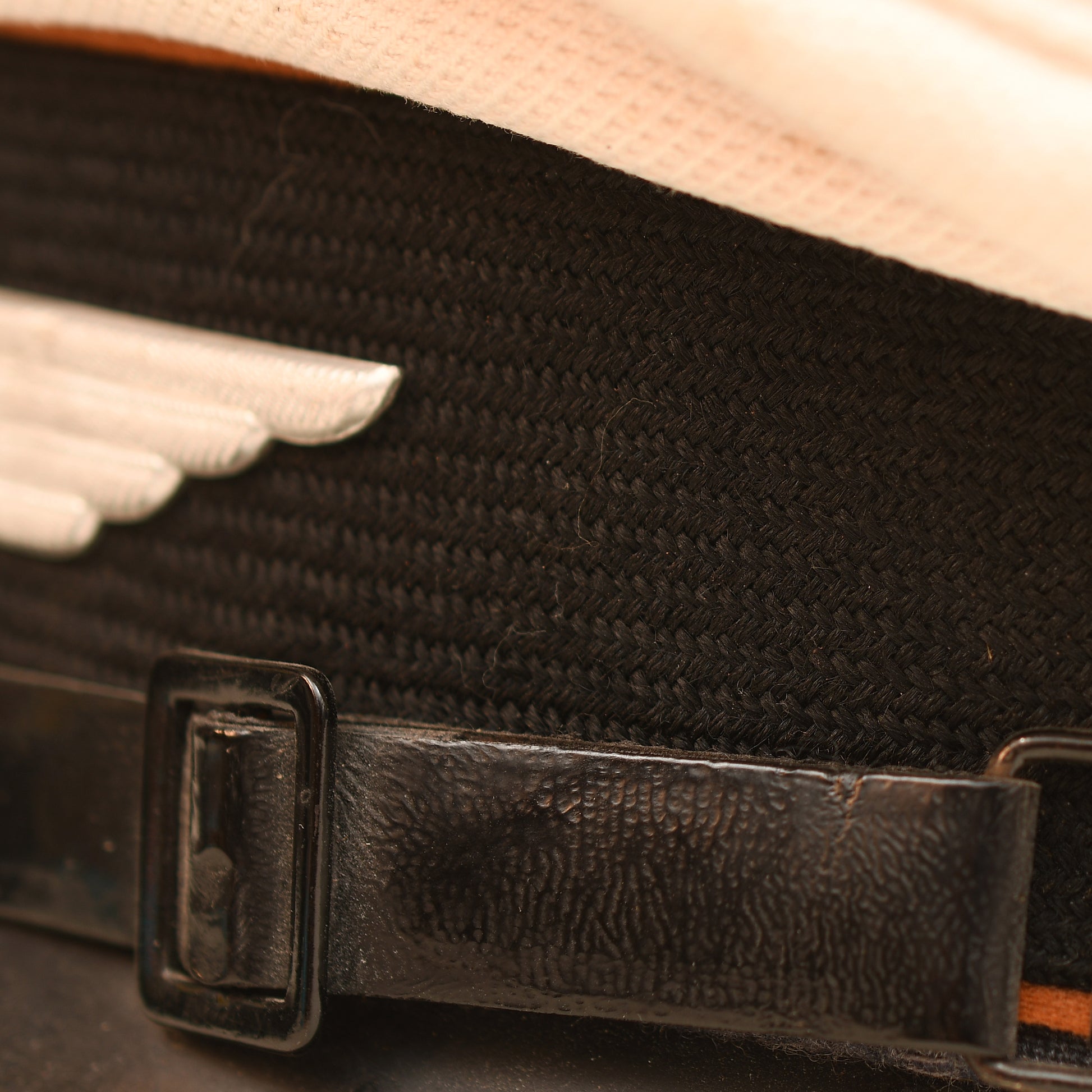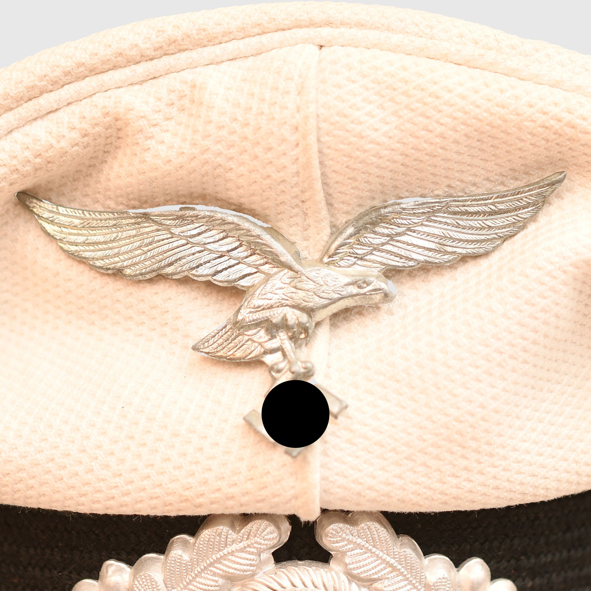 A very good example of a Luftwaffe enlisted man’s or NCO’s white top visor cap for a member of a signals unit; featuring the correct brown piping to both upper and lower edges of the standard mohair centre band. The removable white cotton top shows light service staining consistent with field use; overall appearance remains sharp and well-presented.