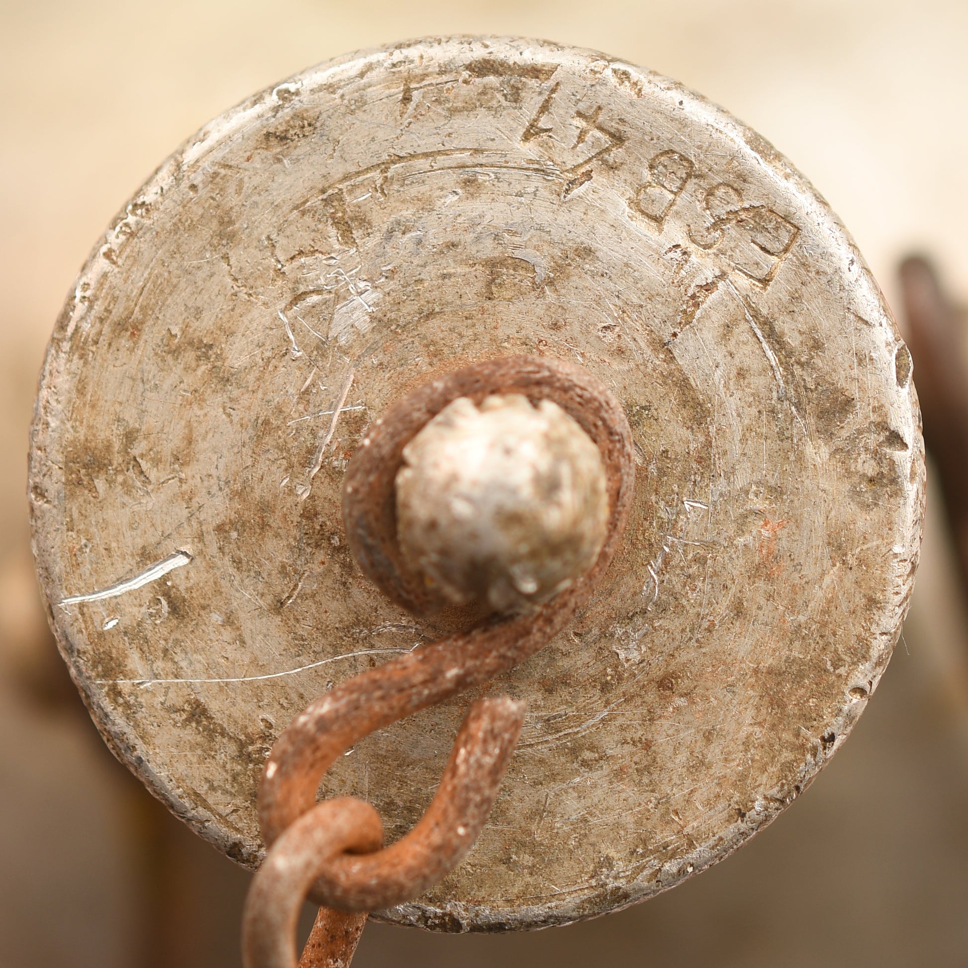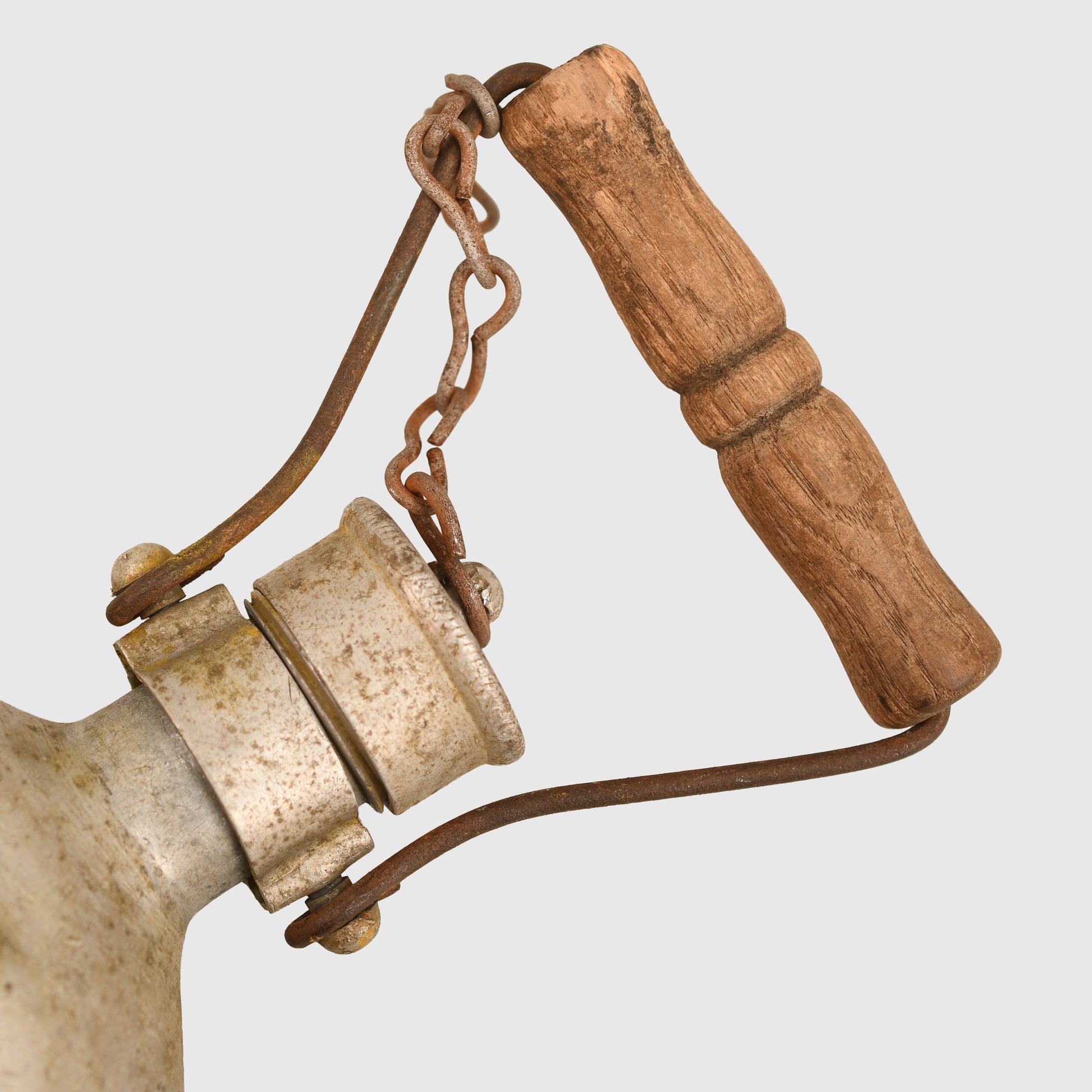 A large capacity aluminium water bottle, unpainted, with the non-screwable cap marked ‘ESB 41’. Complete with its wooden and metal carrying handle and securing chain. This bottle is part of the Luftwaffe survival equipment.