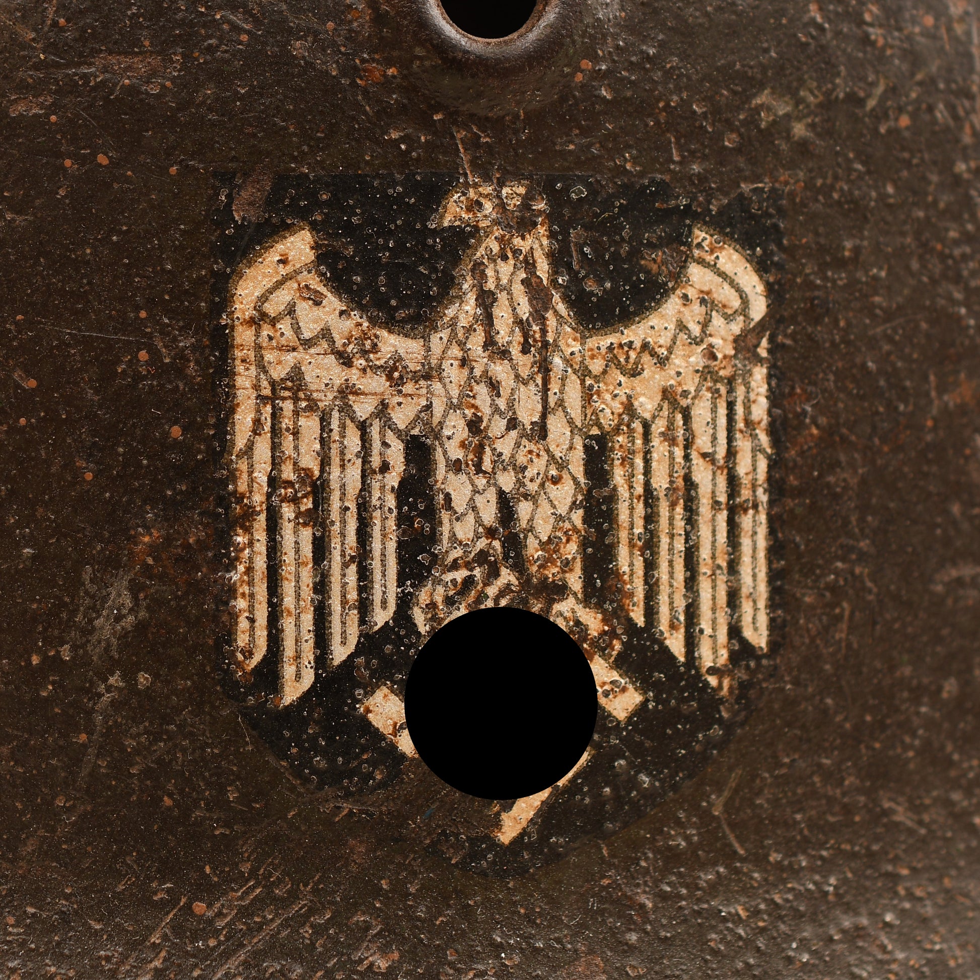 A well-preserved example of a German M.42 Army combat helmet, marked ‘EF64’ to the interior shell. The crown shows some losses, though much of the original paint remains. The decal is clear with minor abrasions consistent with service wear, visible in our web images.