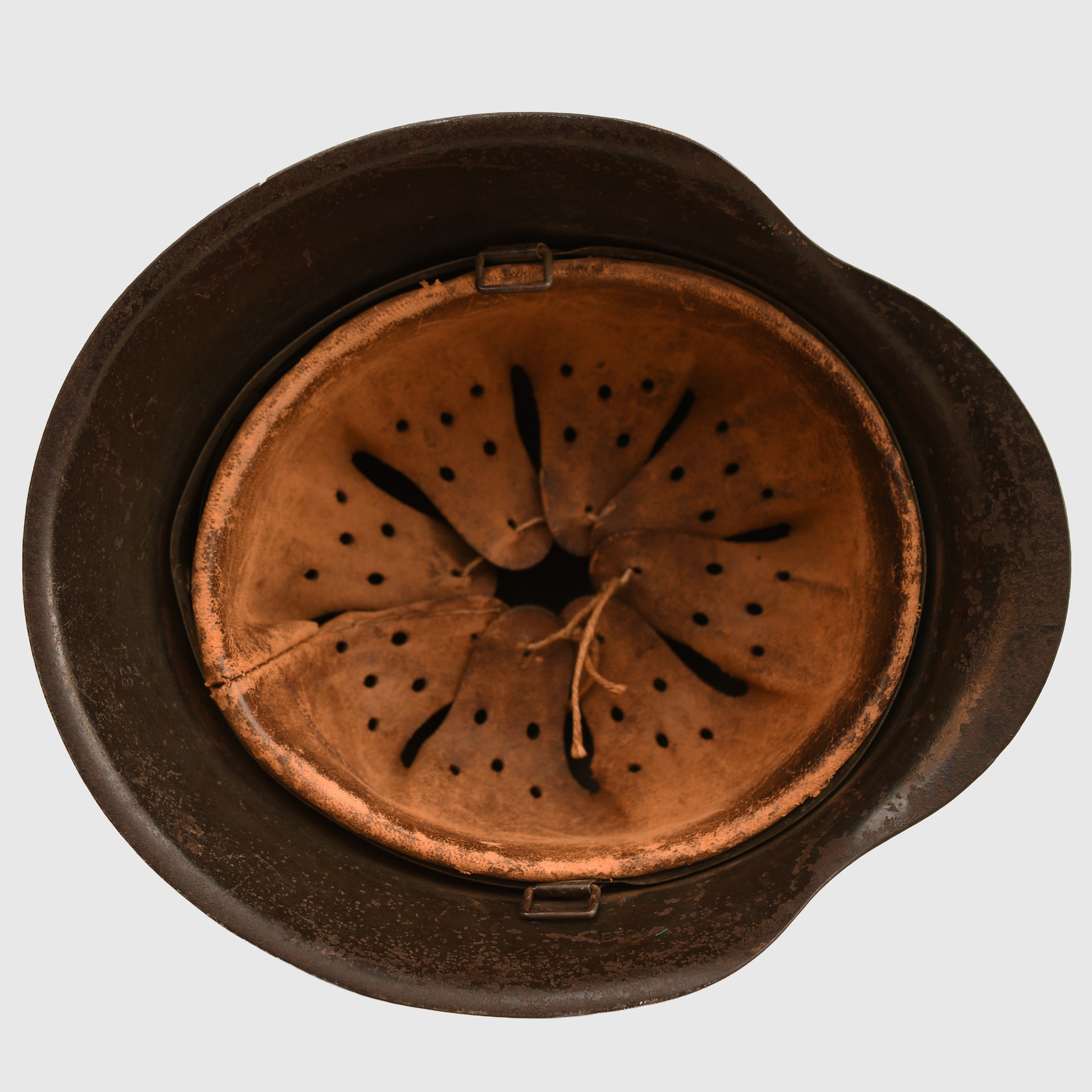 The liner is complete with all tongues intact, retaining its original drawstring and displaying good service-worn character. A solid example for collectors or display.