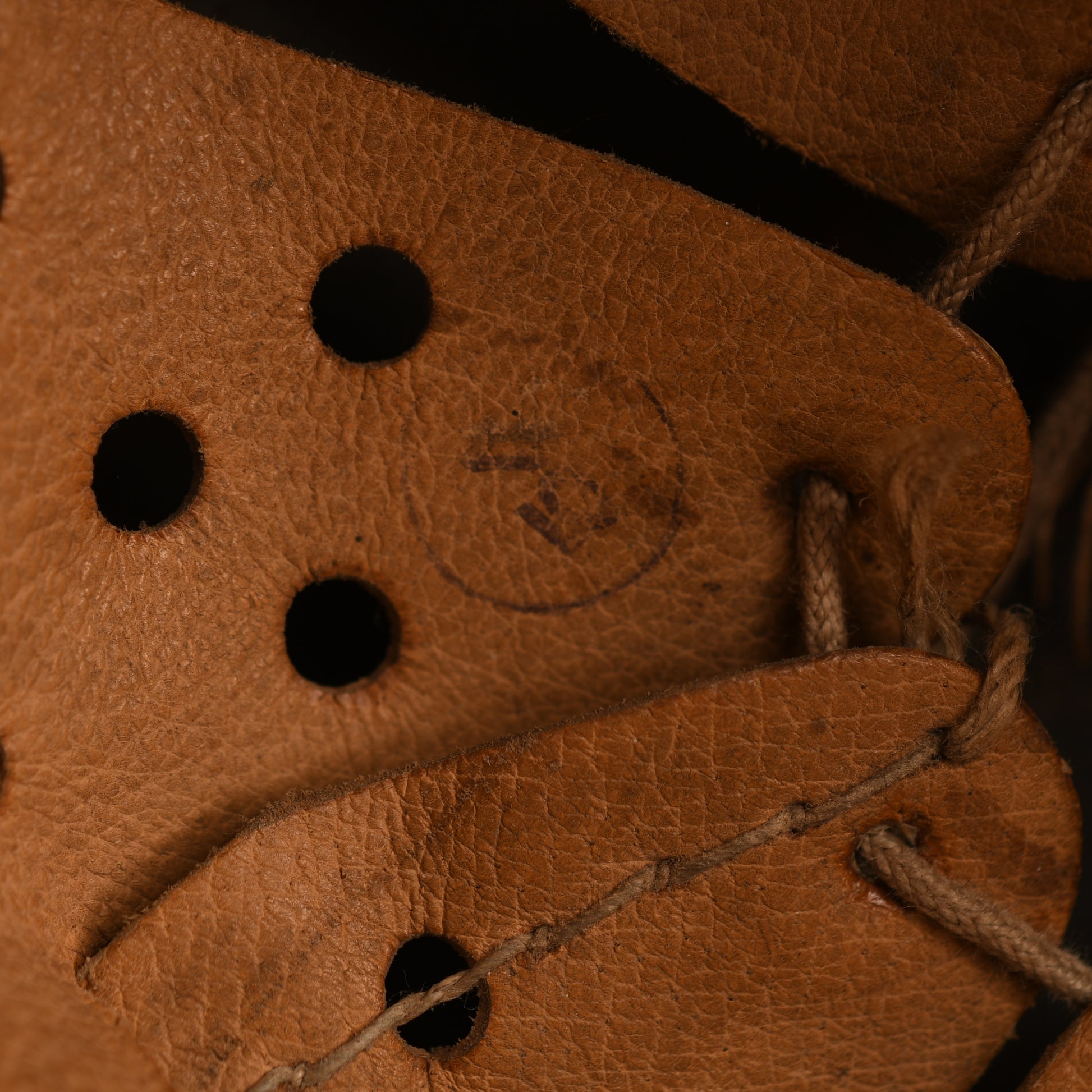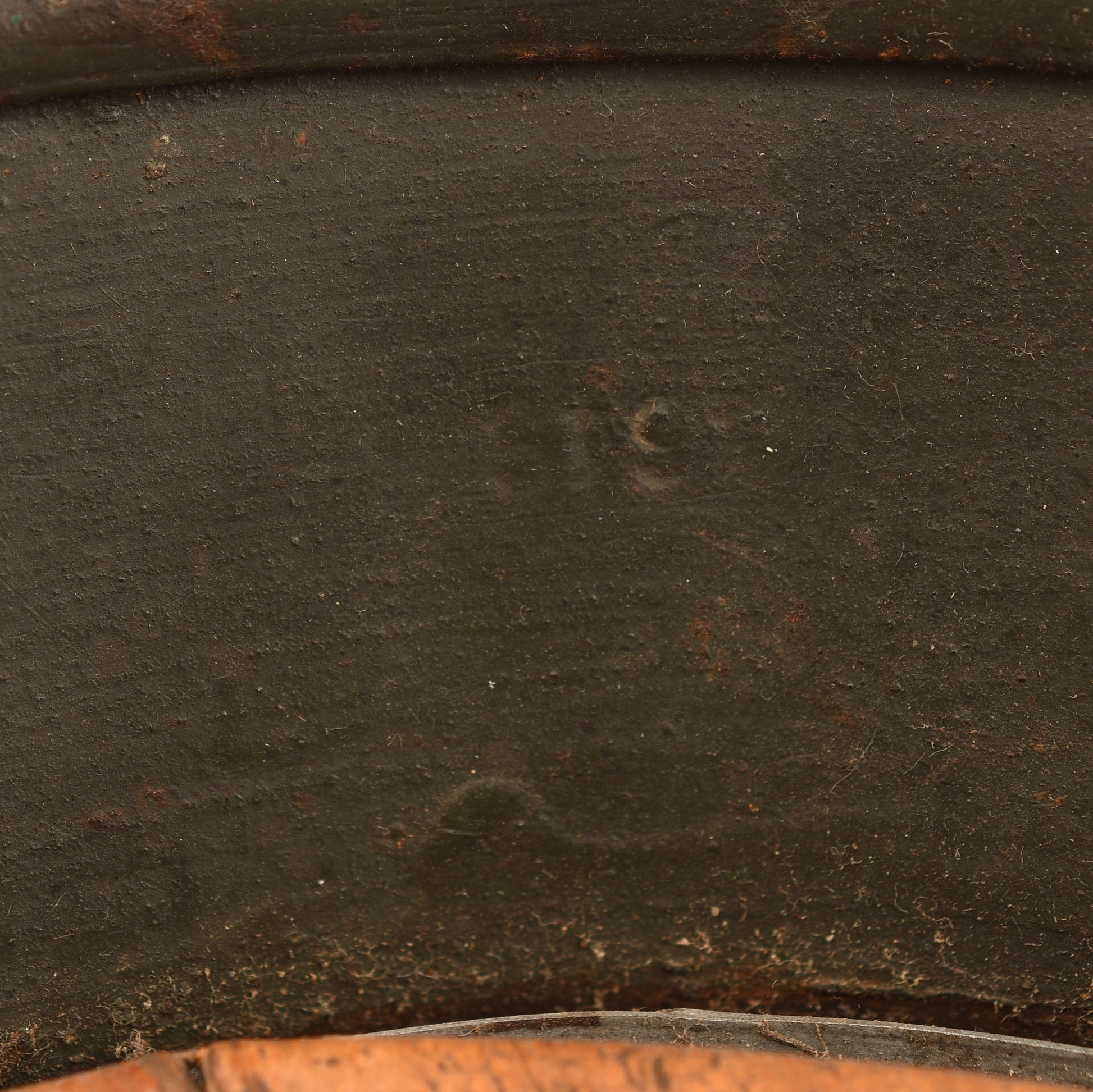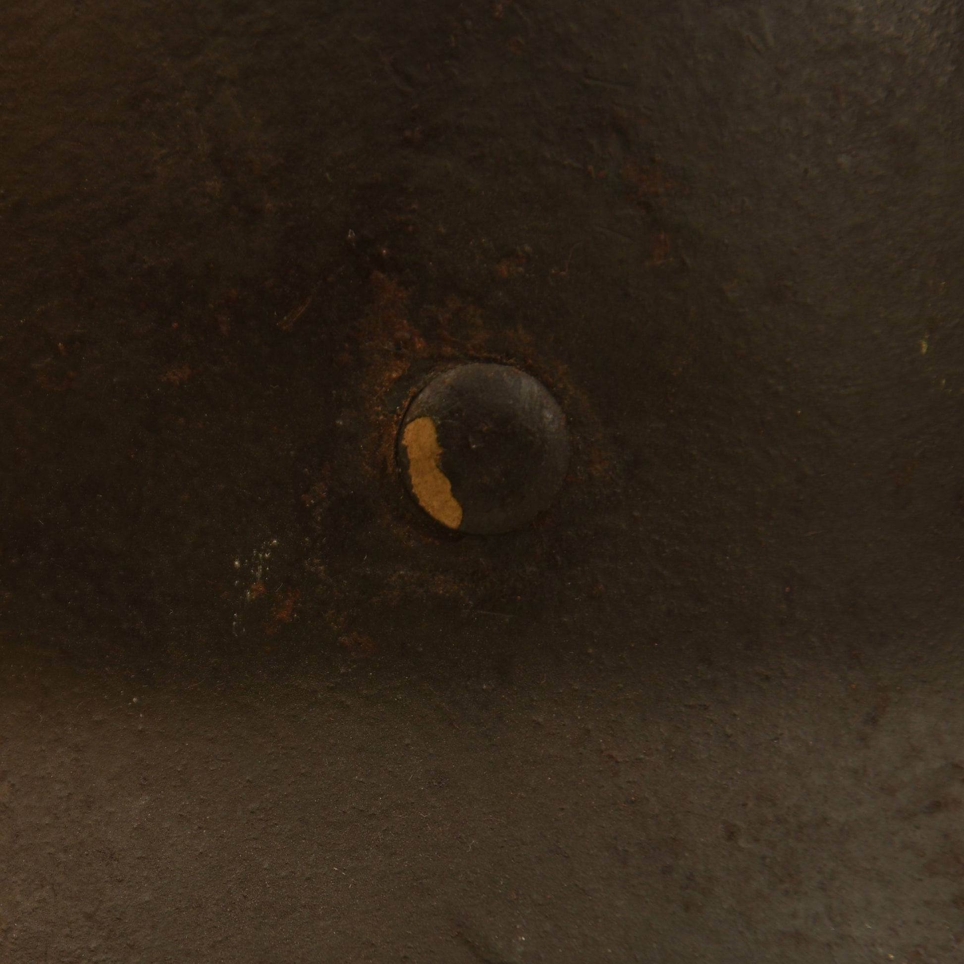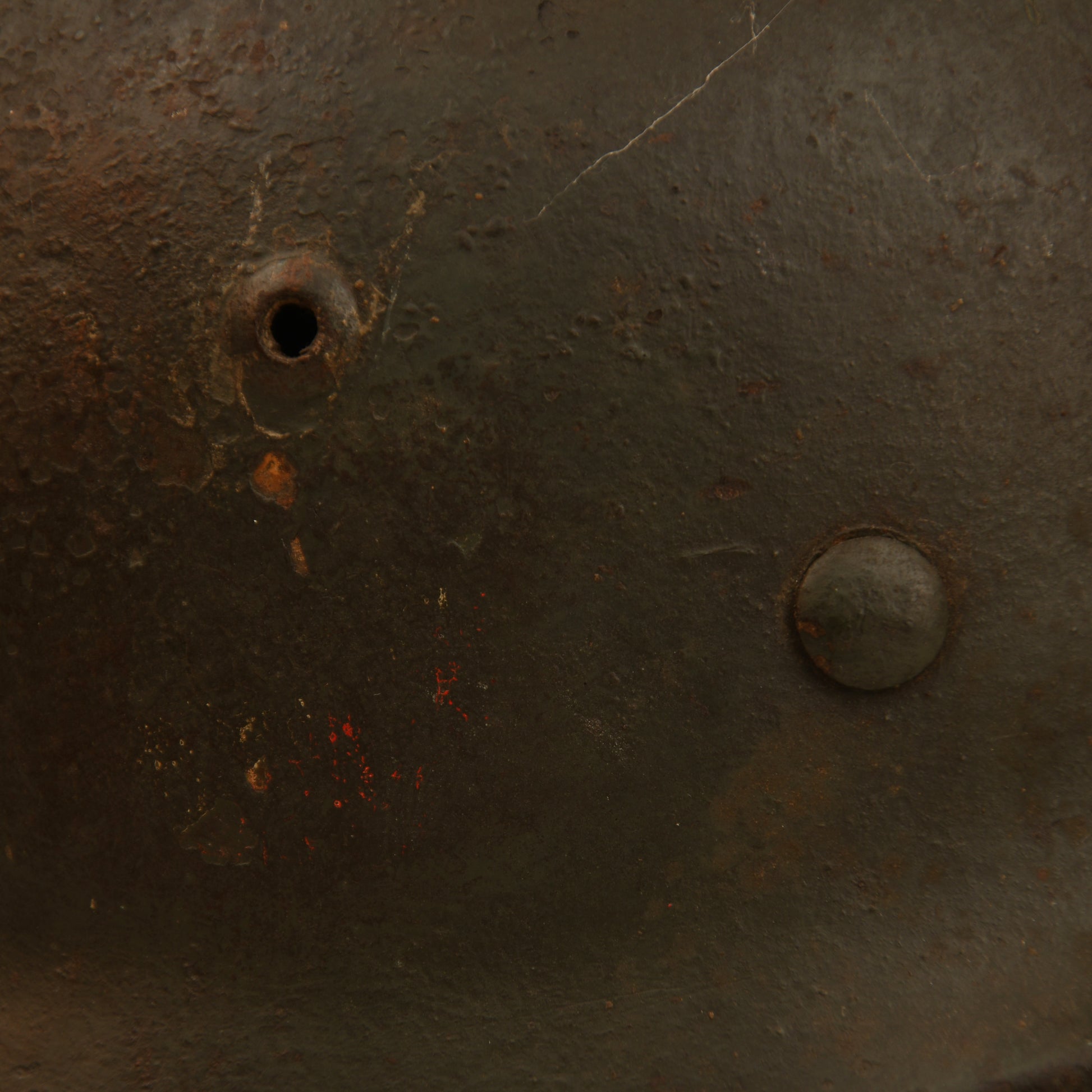The interior features an M40 zinc-banded liner, the leather stamped 54, showing excellent colour and complete with its original drawstring. The original chinstrap is present but has unfortunately split. Traces of a red three-digit number are visible on the inner skirt.