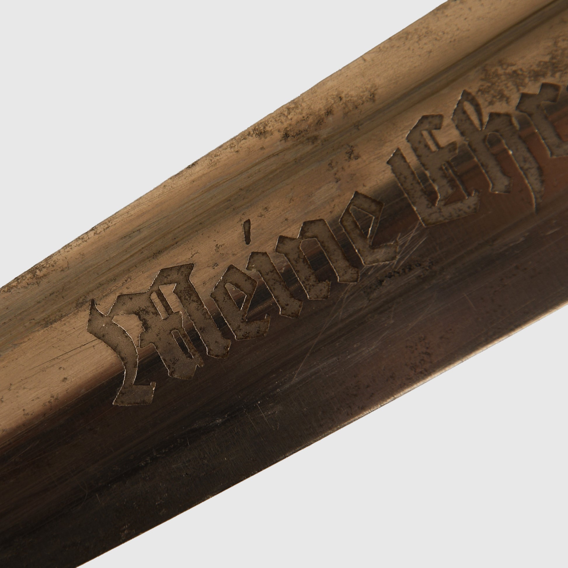 An excellent display piece by Boker, retaining a good degree of its original cross-grain finish, with only minor surface scratches and light markings from the scabbard’s inner brass retaining bands. The piece maintains its full original profile.