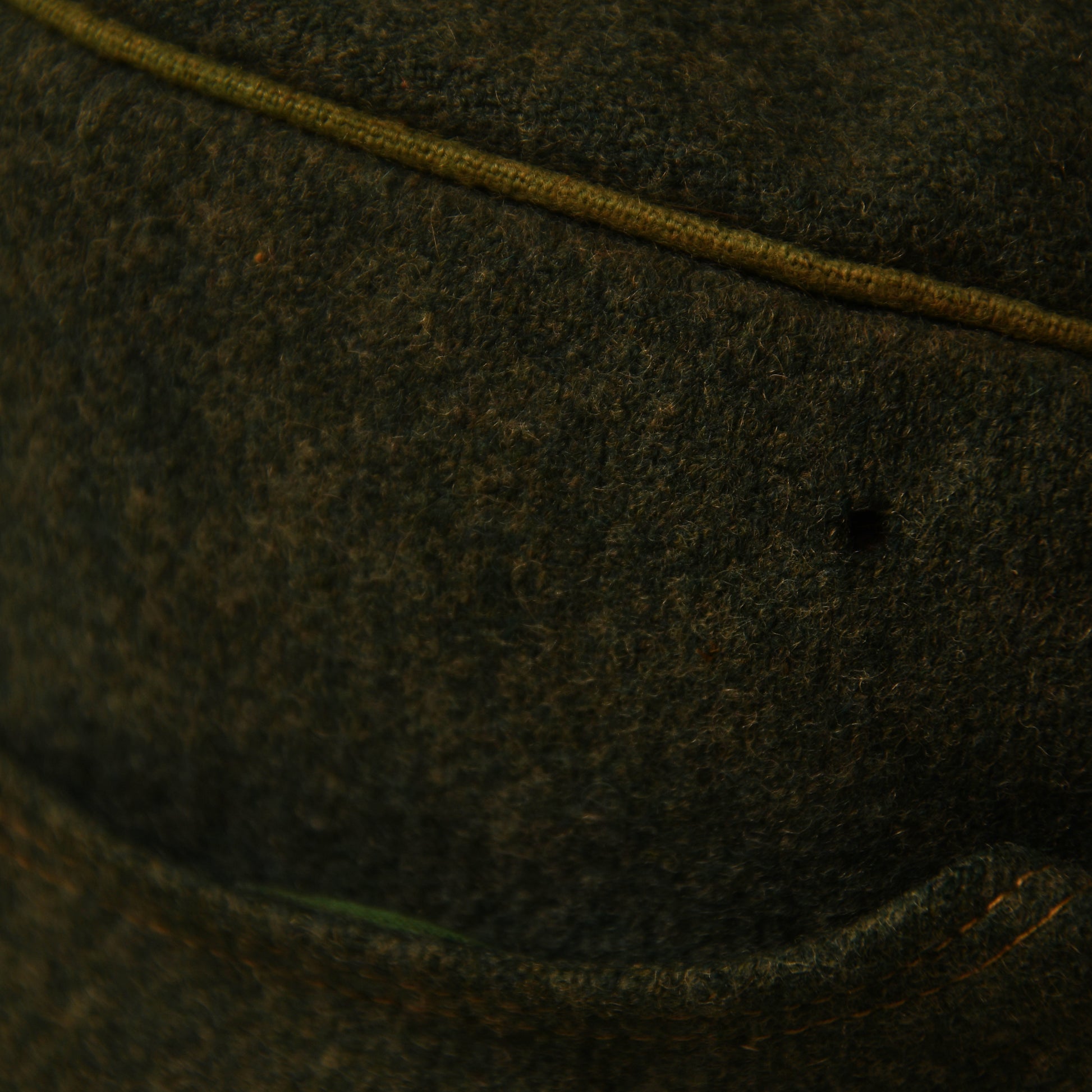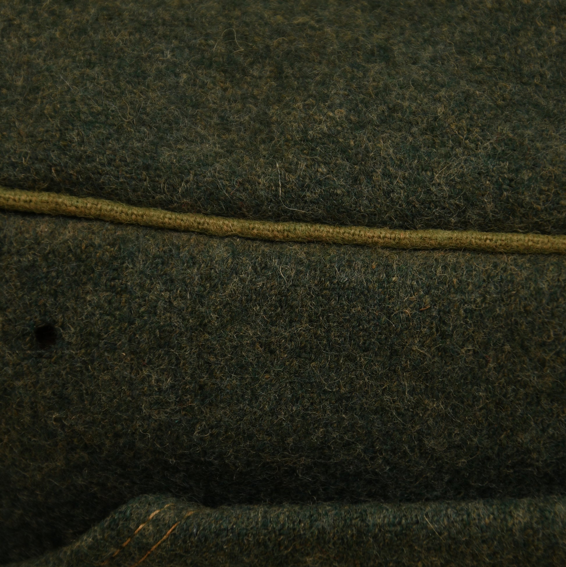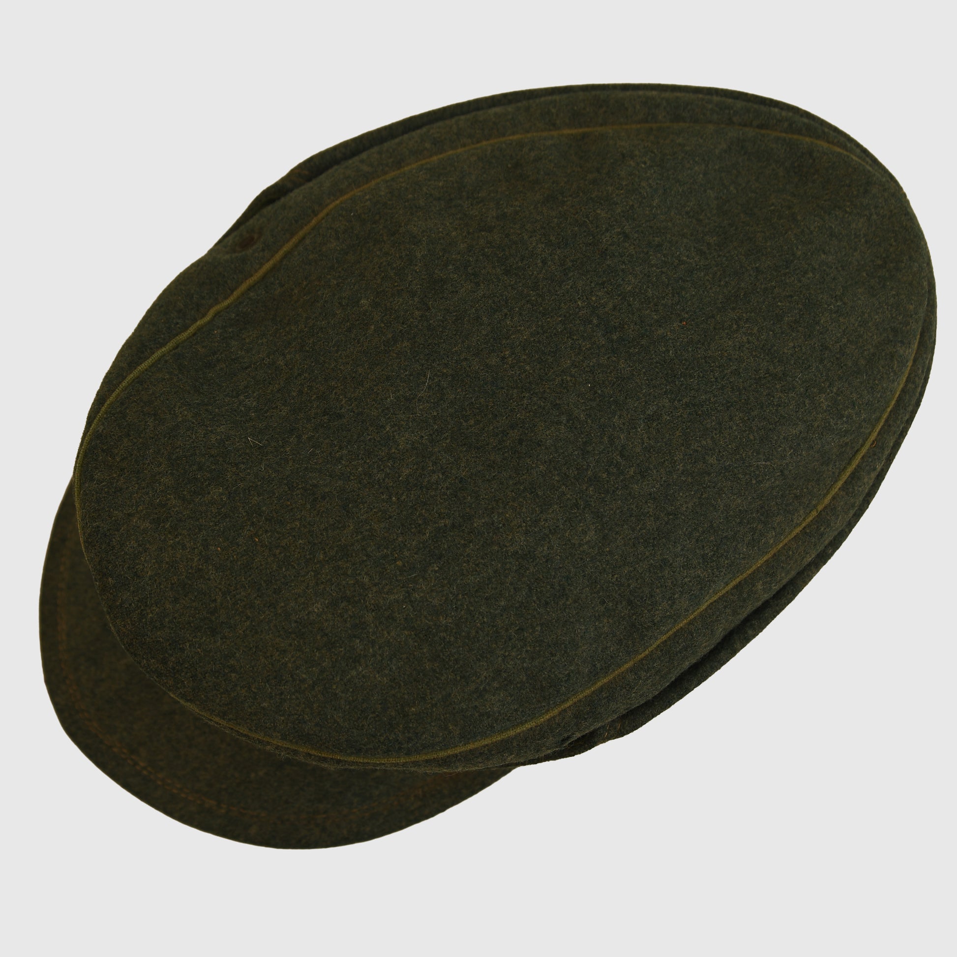 A scarce and very attractive example of the Polizei Bergmütze, the only M43-style field cap worn by Police Mountain Units. This non–size-stamped cap measures approximately size 55 by fit. Constructed in standard police green cloth with lighter green piping encircling the crown. Single ventilation hole to each side.