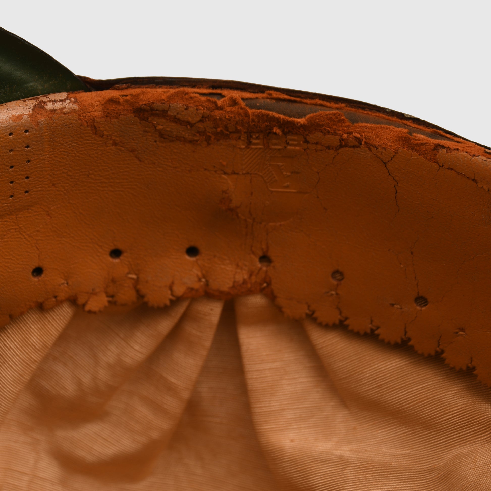 This is an exceptionally well-preserved Municipal Police (Schutzmannschaft) officer's shako, manufactured by the renowned firm Erel. The size, 57 1/2, is clearly stamped into the inner liner. The green felt sides are in excellent condition and remain entirely free of moth damage.